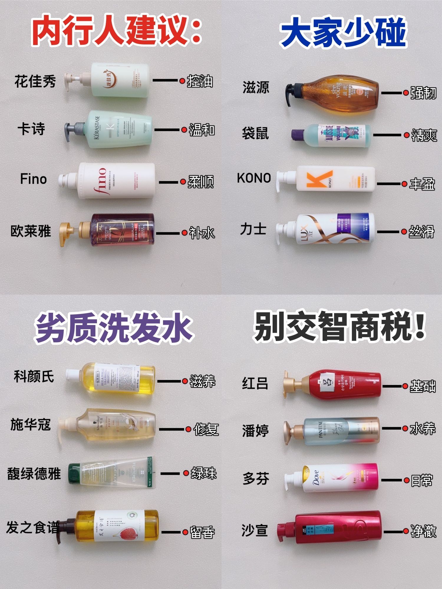 现在市面上洗发水这么多,稍不注意就容易踩雷,所以好好做功课会是谁很有必要的 宝子们可以根据自己需求入手,这样才能事半功倍!