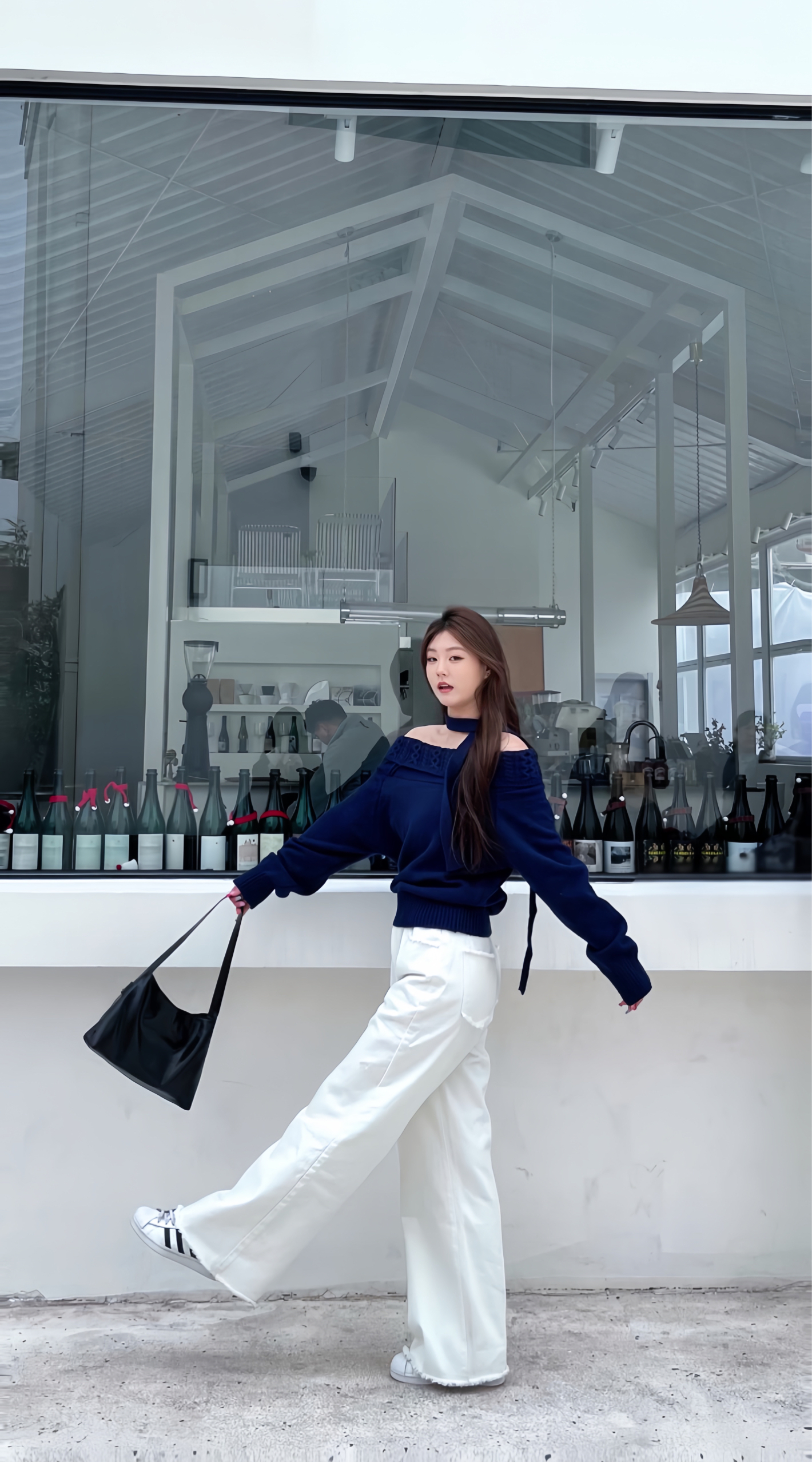 女大学生今日出图,绝美一字肩➕牛仔裤,初春这样绝对穿美美出片