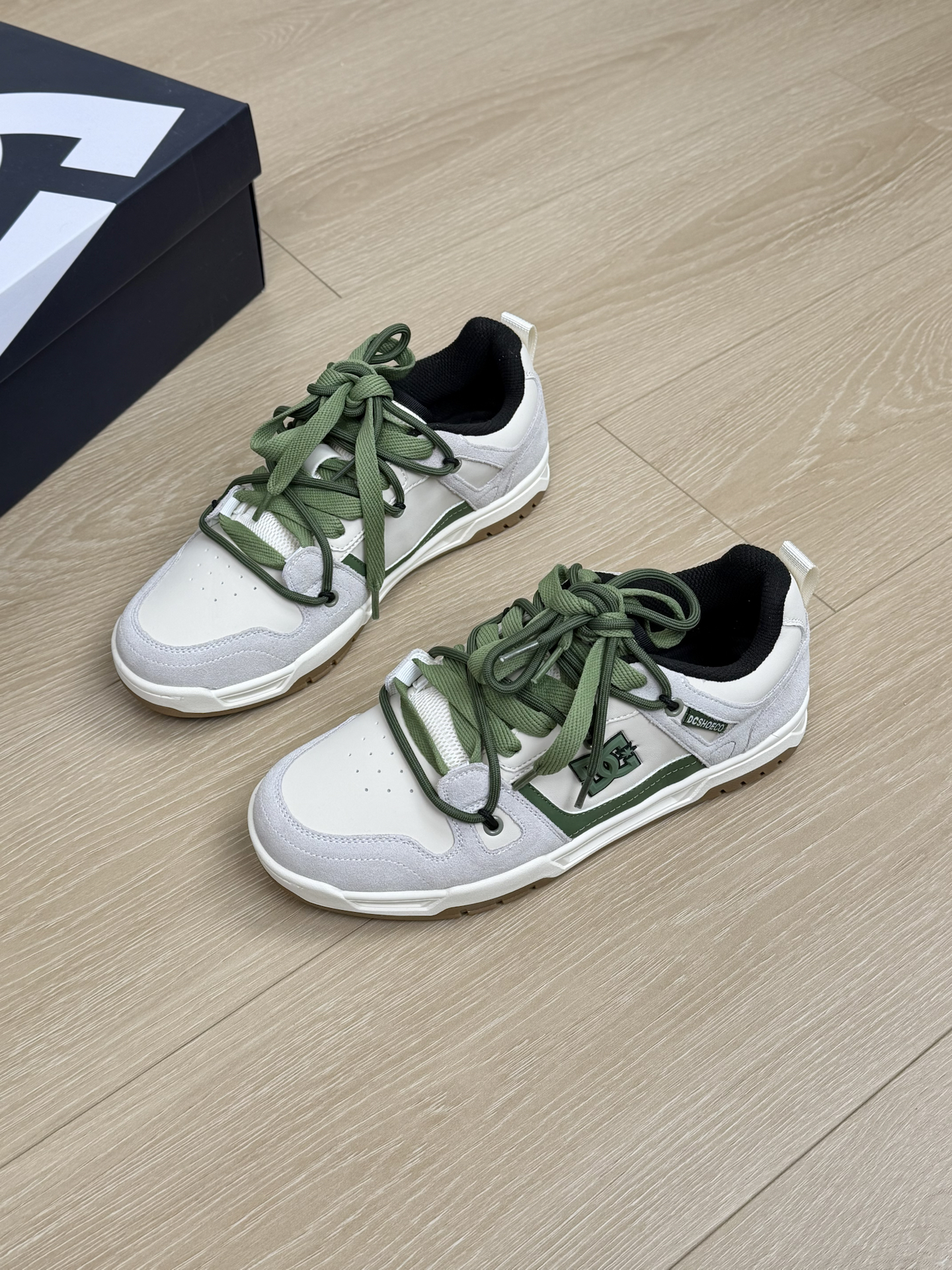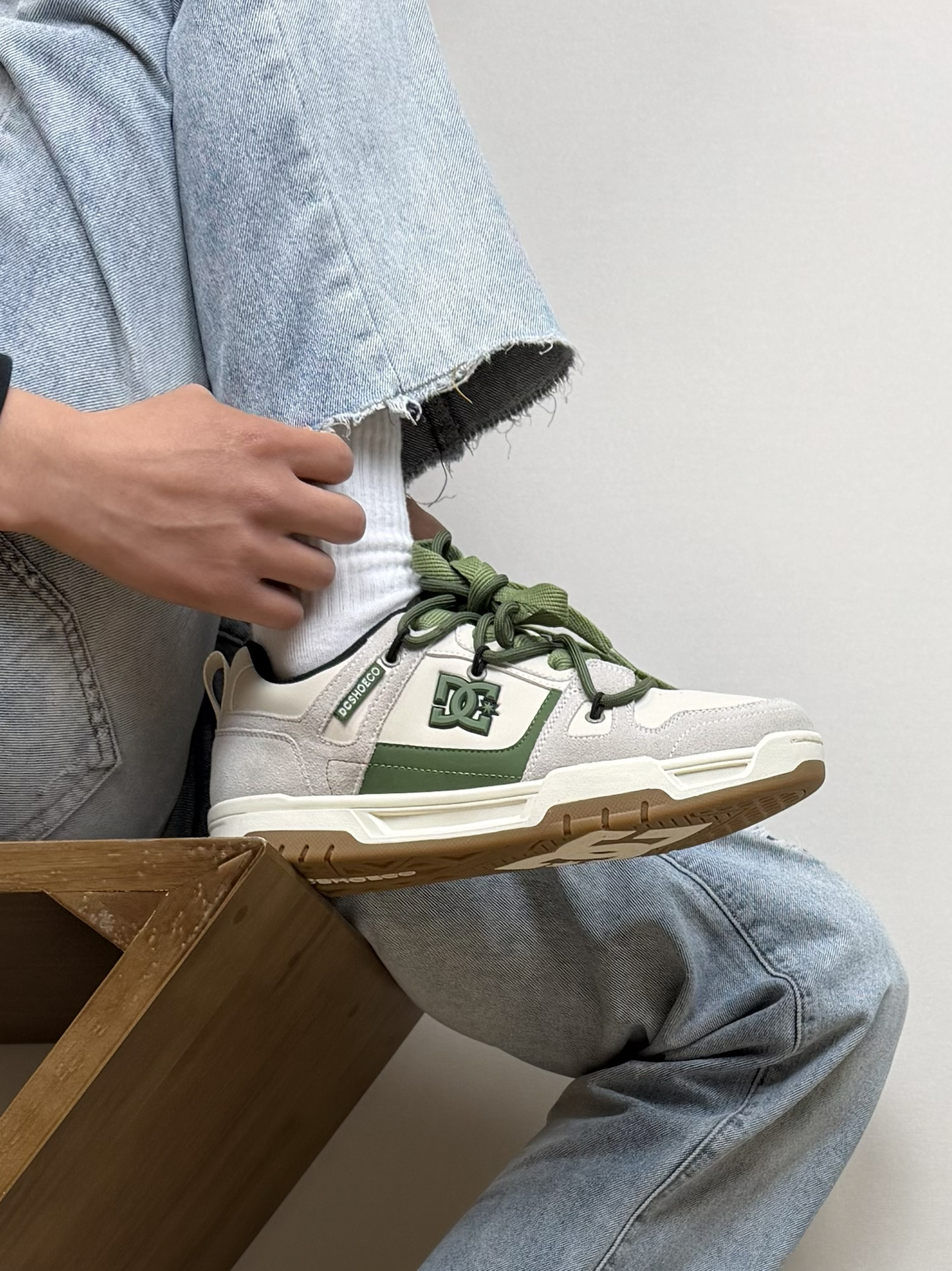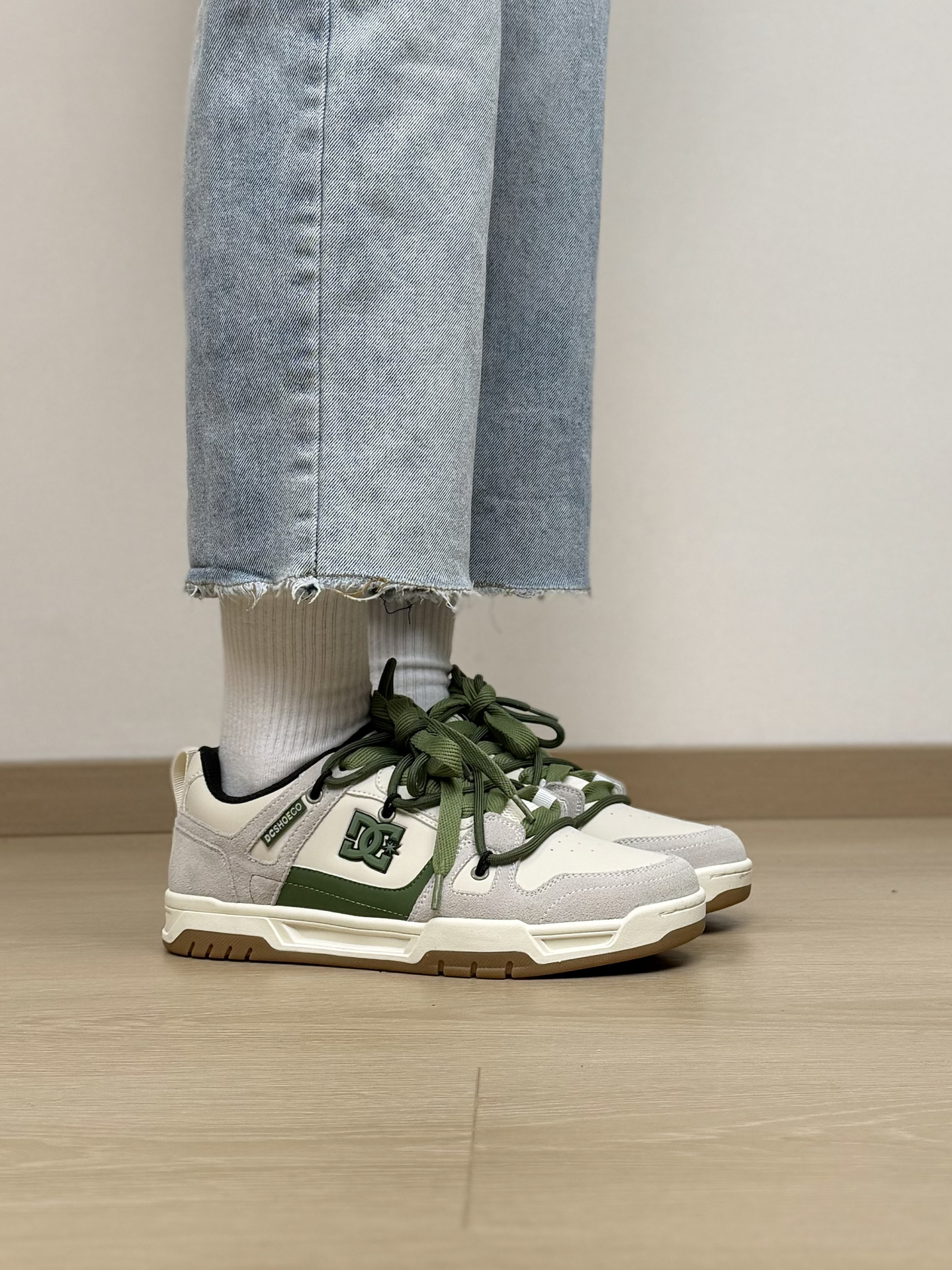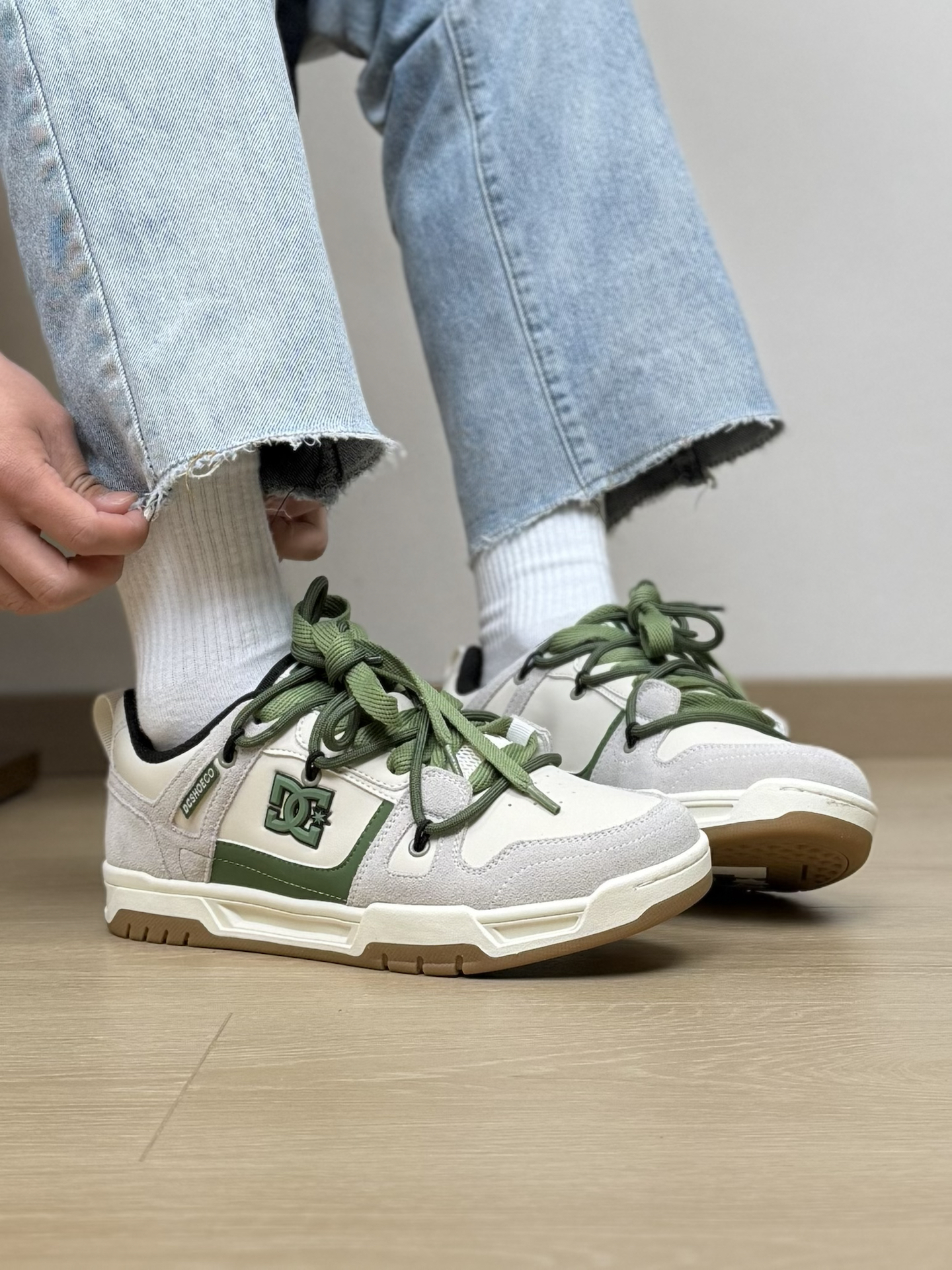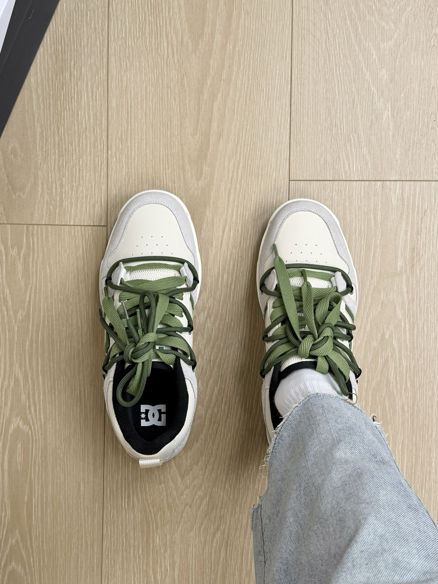 你真的可以永远相信DCSHOES板鞋的颜值 最近又发现一双很适合开春穿的新款~ 鞋身白绿的配色 加上牛剖层革的材质 还有双鞋带点缀 层次感特别饱满 上脚穿起来不挤脚 也不掉跟 尺码我觉得刚刚好 日常搭配我很喜欢的 就是搭街头感的牛仔裤 不知道你们觉得怎么样!? #单鞋拿捏春日氛围感 #春日鞋柜c位 #就是个板鞋脑袋 #板鞋春日氛围感ootd #DCshoes