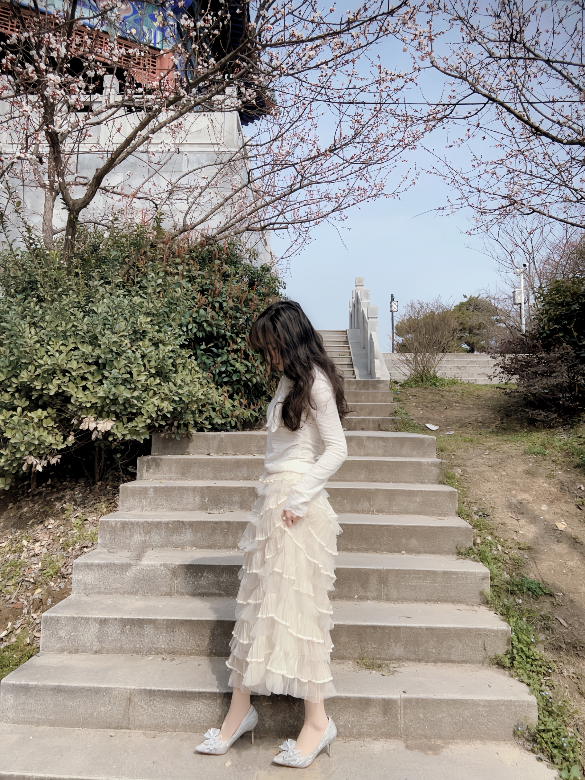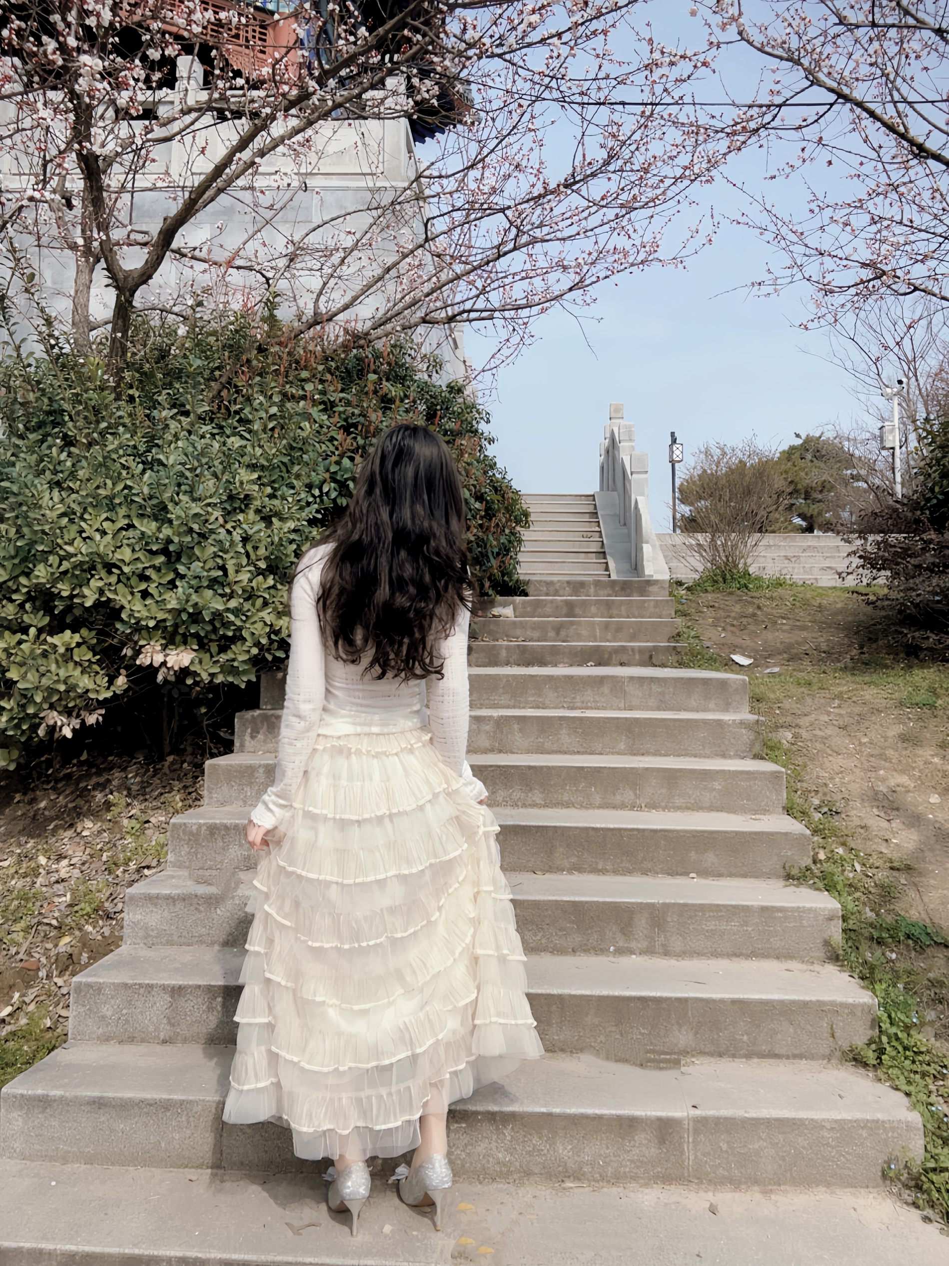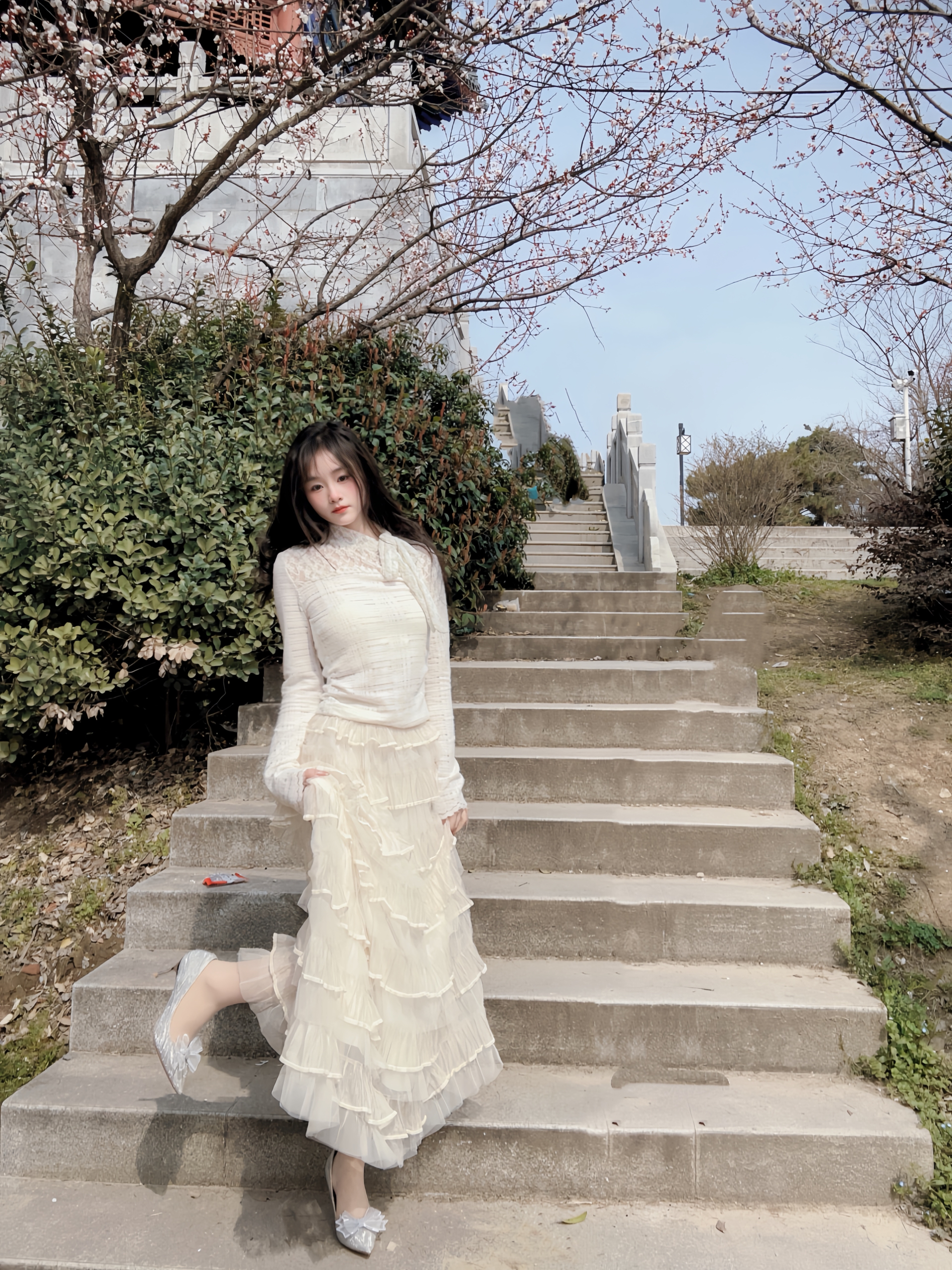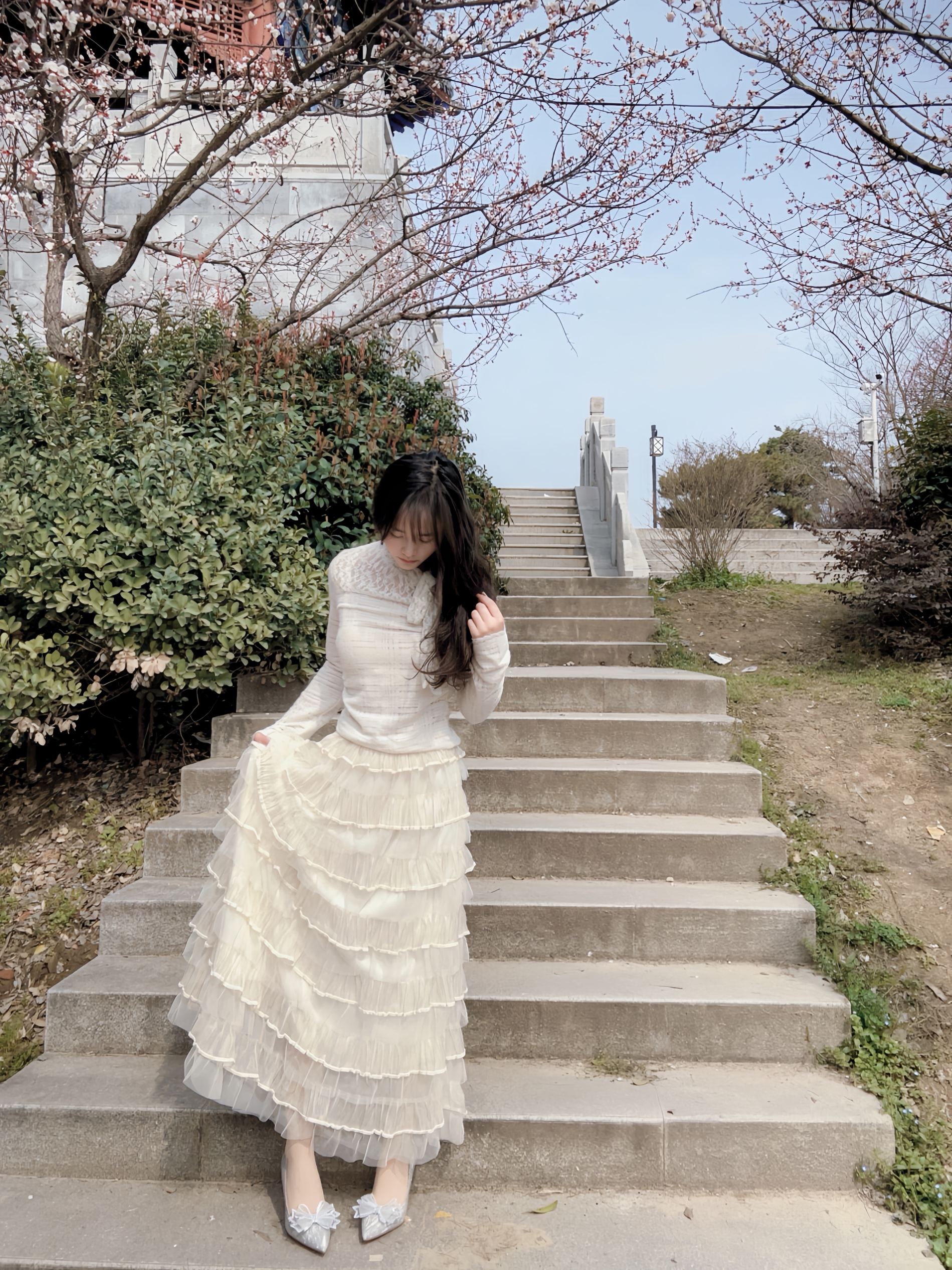 万物复苏 正是拍照好时节 高跟鞋是必不可少的氛围之一 搭配今天的半身蛋糕裙 想不出片都有点难哇🎊 银色在太阳下闪闪发光 鞋头蝴蝶结🎀搭配 温柔感满满 走楼梯也是稳稳当当滴 有这么一双很难不爱😻