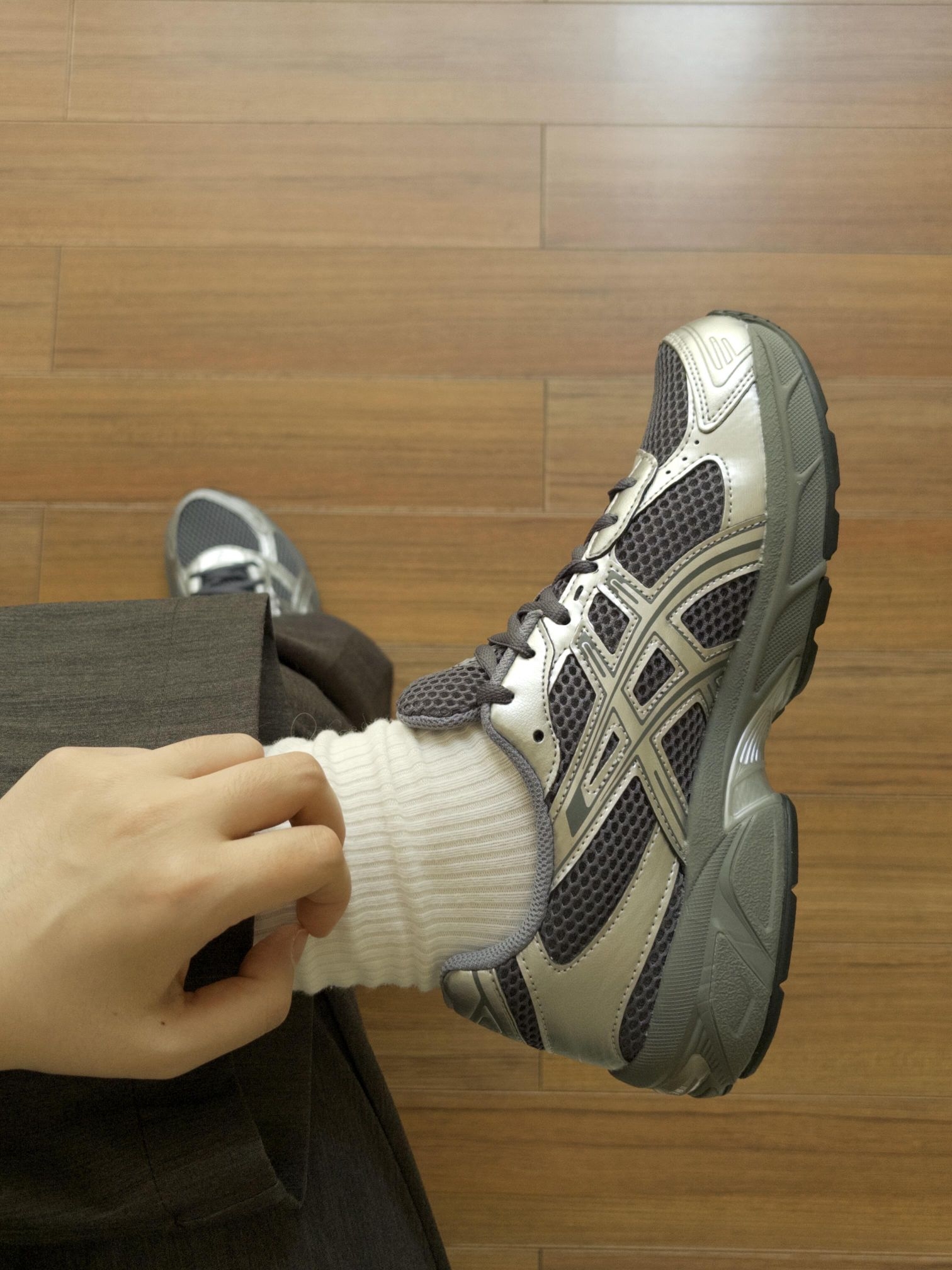 asics gel-1130 尺码📏 常规asics尺码 我一般比平时选大半码 脚感🦶 轻便扎实的舒服,不会过分软弹,如果现在暴走,我会选择这种脚感。无论是运动还是日常都可以兼顾。 颜值💅 这双是灰蓝,实物是会多看两眼的配色,融合的挺好。银色有点复古感觉,正好最近Y3K潮流。时尚又百搭。 价格💵 是asics中比较有性价比的一款~