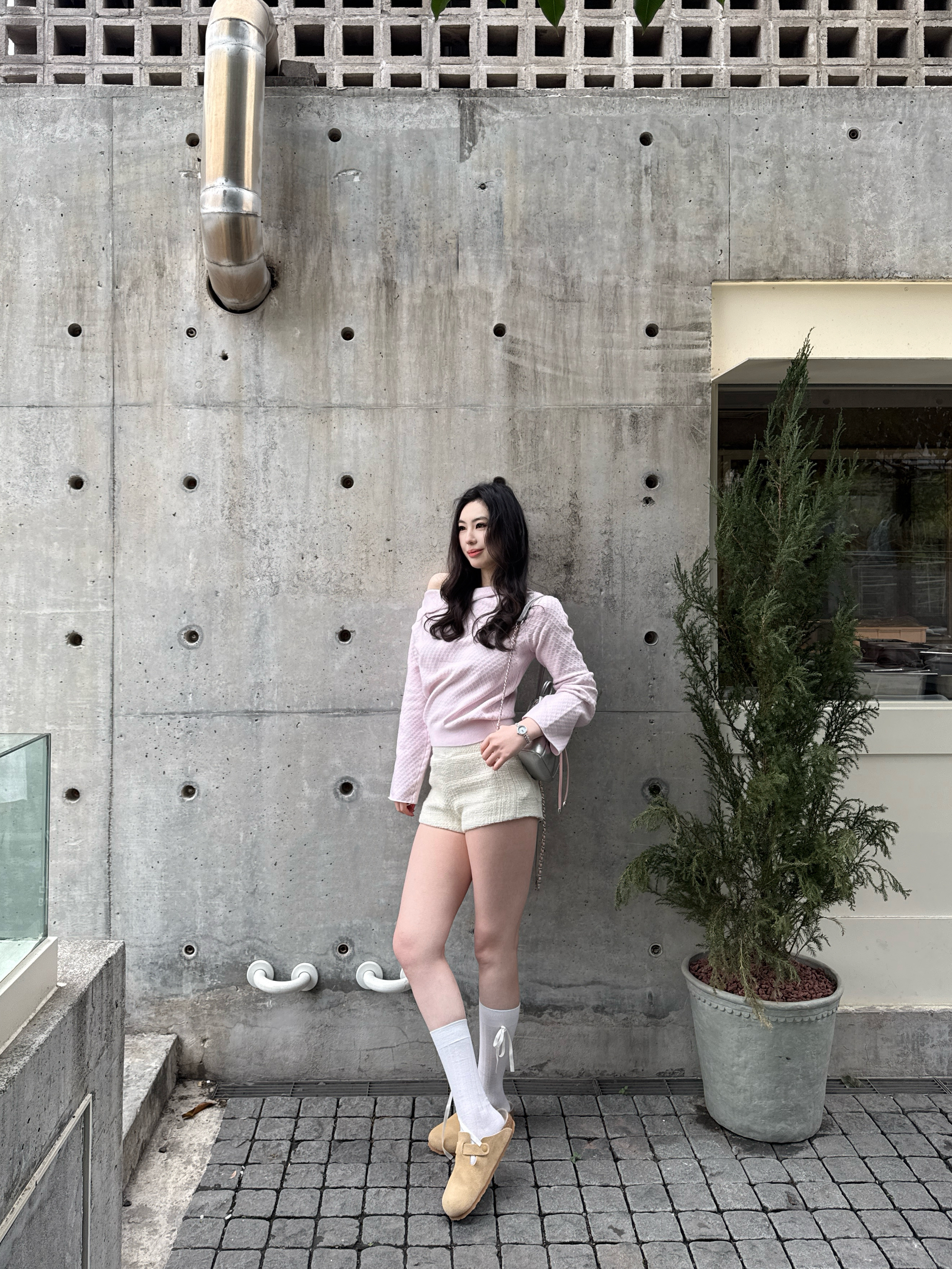 Hello宝子们 你们那里天气回暖了吗? 今天是开春ootd 💭 粉色斜肩毛衣+白色短裤 再套上白色小腿袜 出门前蹬上这双浅米黄勃肯鞋 🟠⚪️🟤 这双软木底真的太舒服了 软软的有回弹 踩着走了一下午也不累脚 反毛绒的质感很软糯 浅米黄比想象中更好搭 面包头圆圆钝钝的 有点笨笨的可爱 这两天出门基本都穿它 不用特意搭配 随便套上就很顺眼 整个人的节奏都慢下来