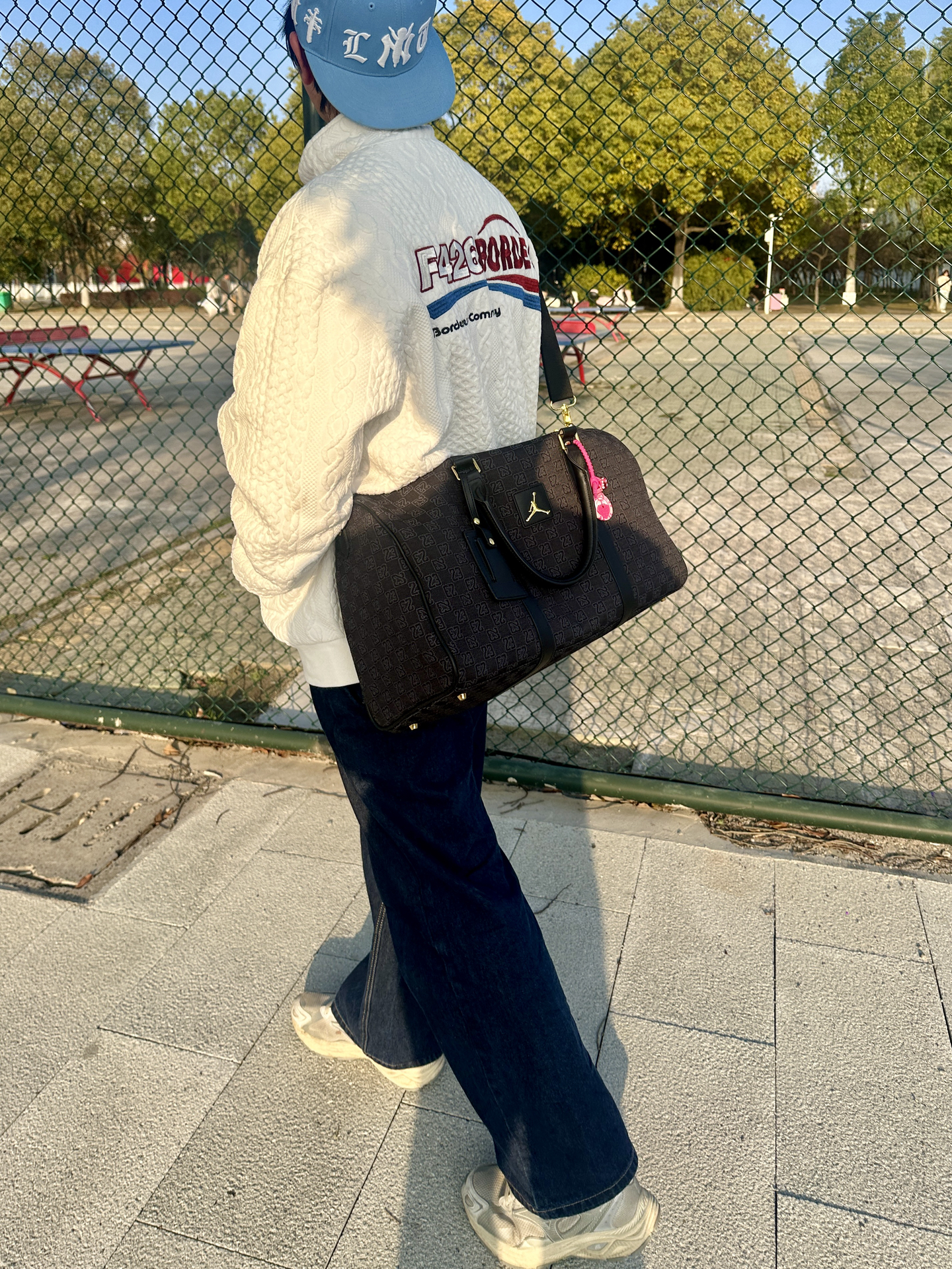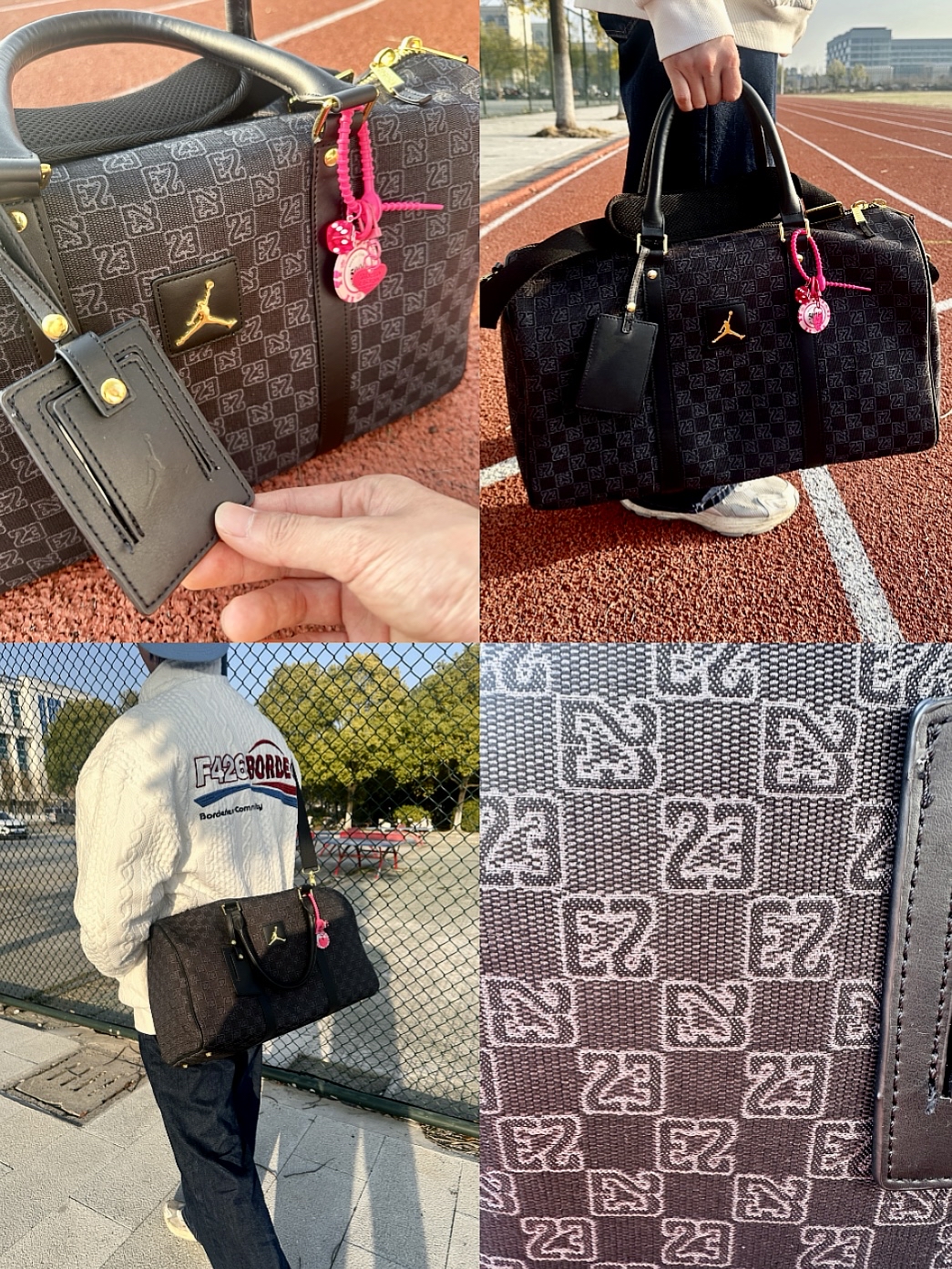 本篇笔记关联了Jordan Monogram 棋盘格正面徽标提花图案老花耐用织物满印拉链开合可调节肩带隔层行李单肩水桶手提包 黑色 FJ6787-011等商品,为用户提供真实的使用体验和购买参考。