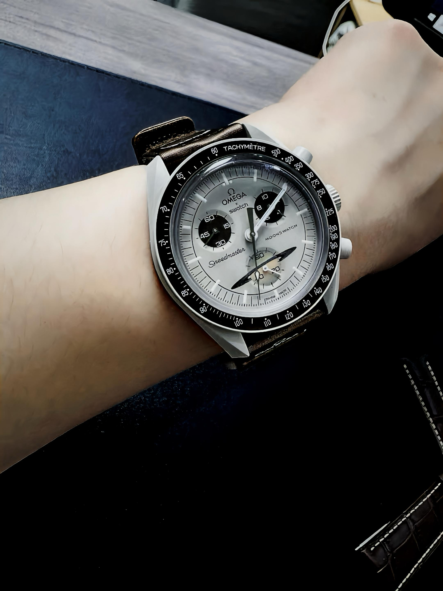 本篇笔记关联了【斯·沃琪联名】 OMEGA/欧米茄 行星系列 42mm尼龙表带休闲时尚石英男士手表 黑色 SO33M700等商品,为用户提供真实的使用体验和购买参考。