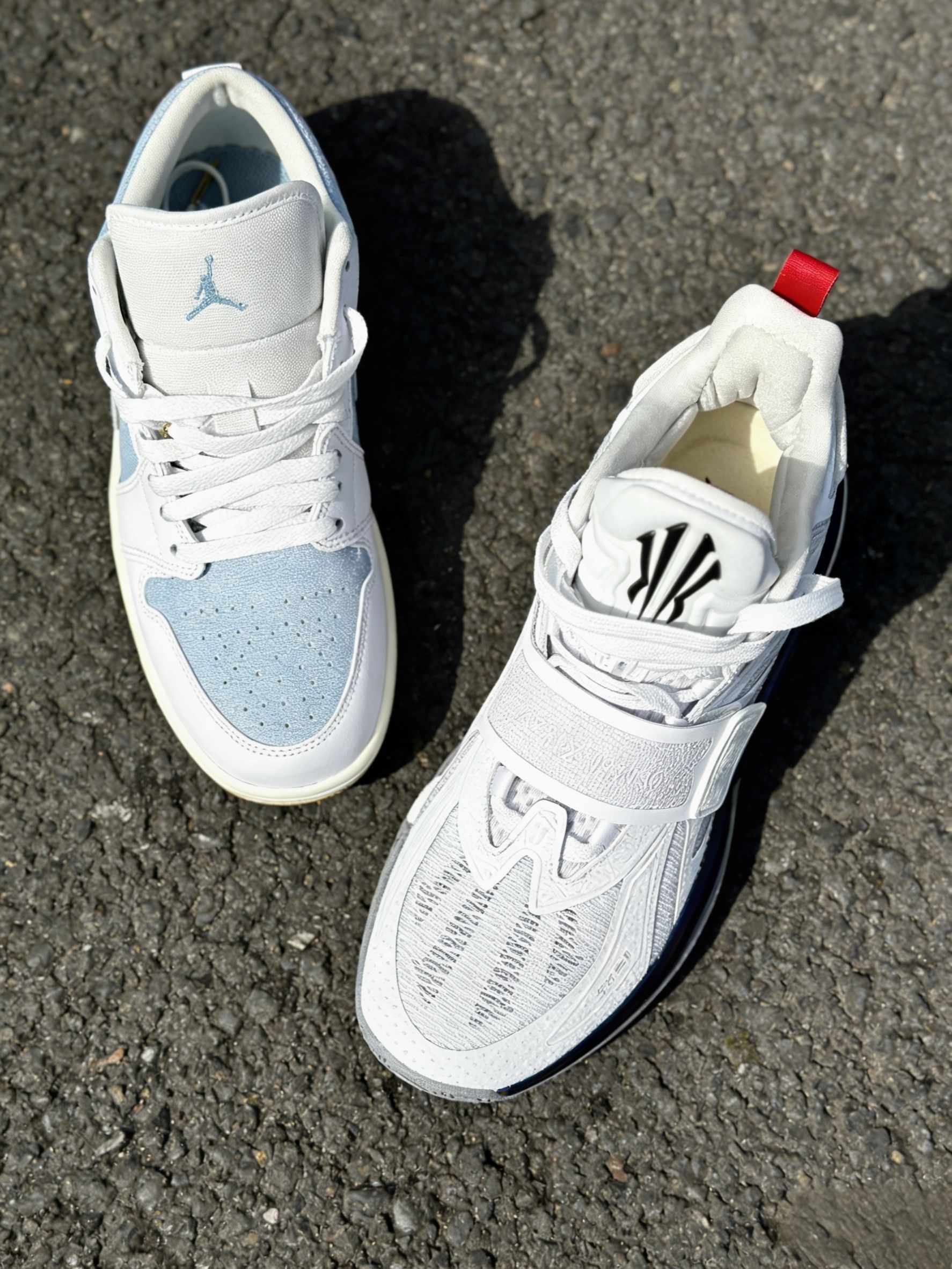 这双Air Jordan 1 Low,是我日常使用率很高的一双。丹宁蓝白低帮复古,皮革鞋面,鞋底支撑不错,走路稳定。通勤、休闲都能穿,尺码标准,搭配简单,属于穿不腻的基础款板鞋。