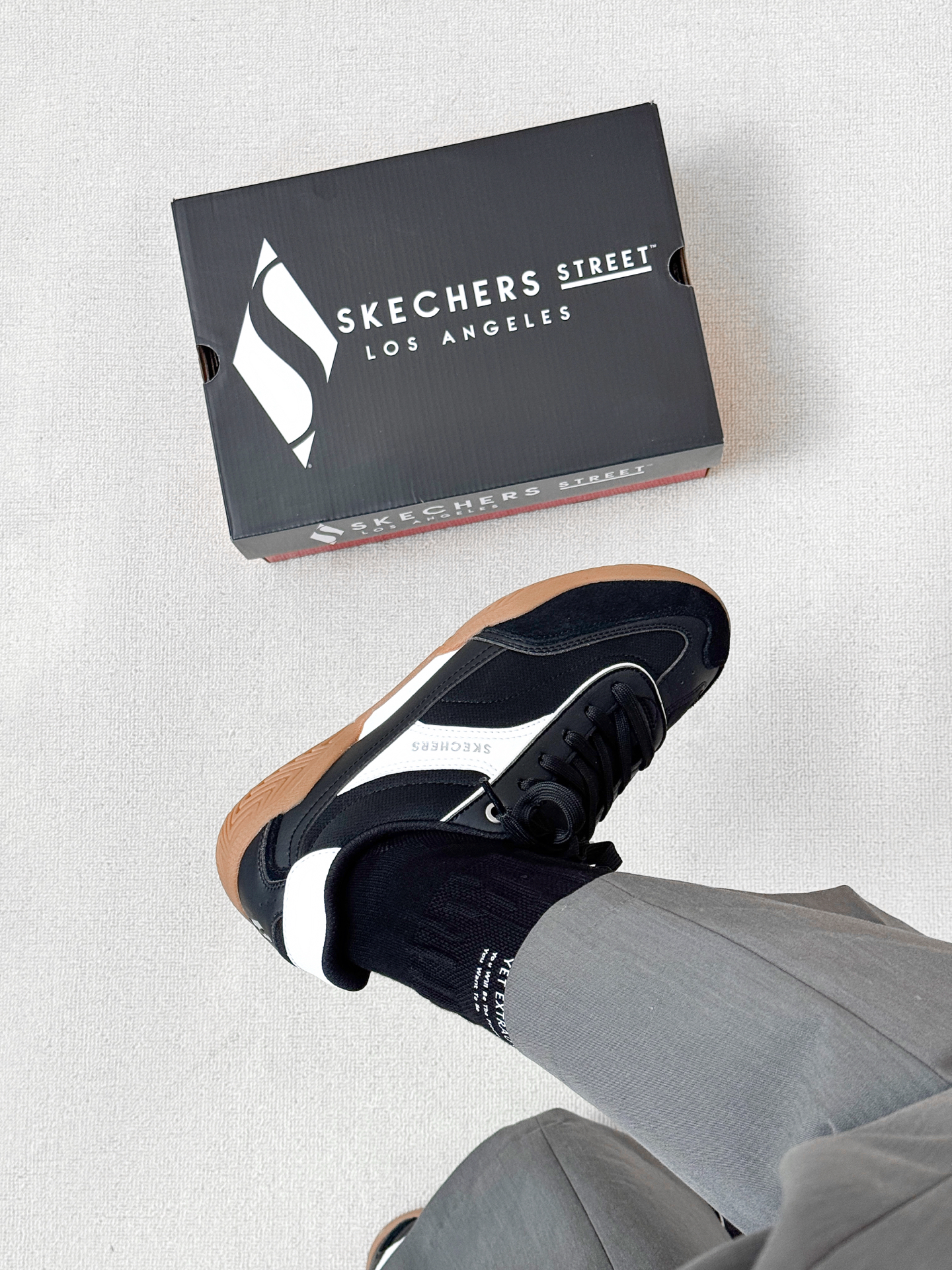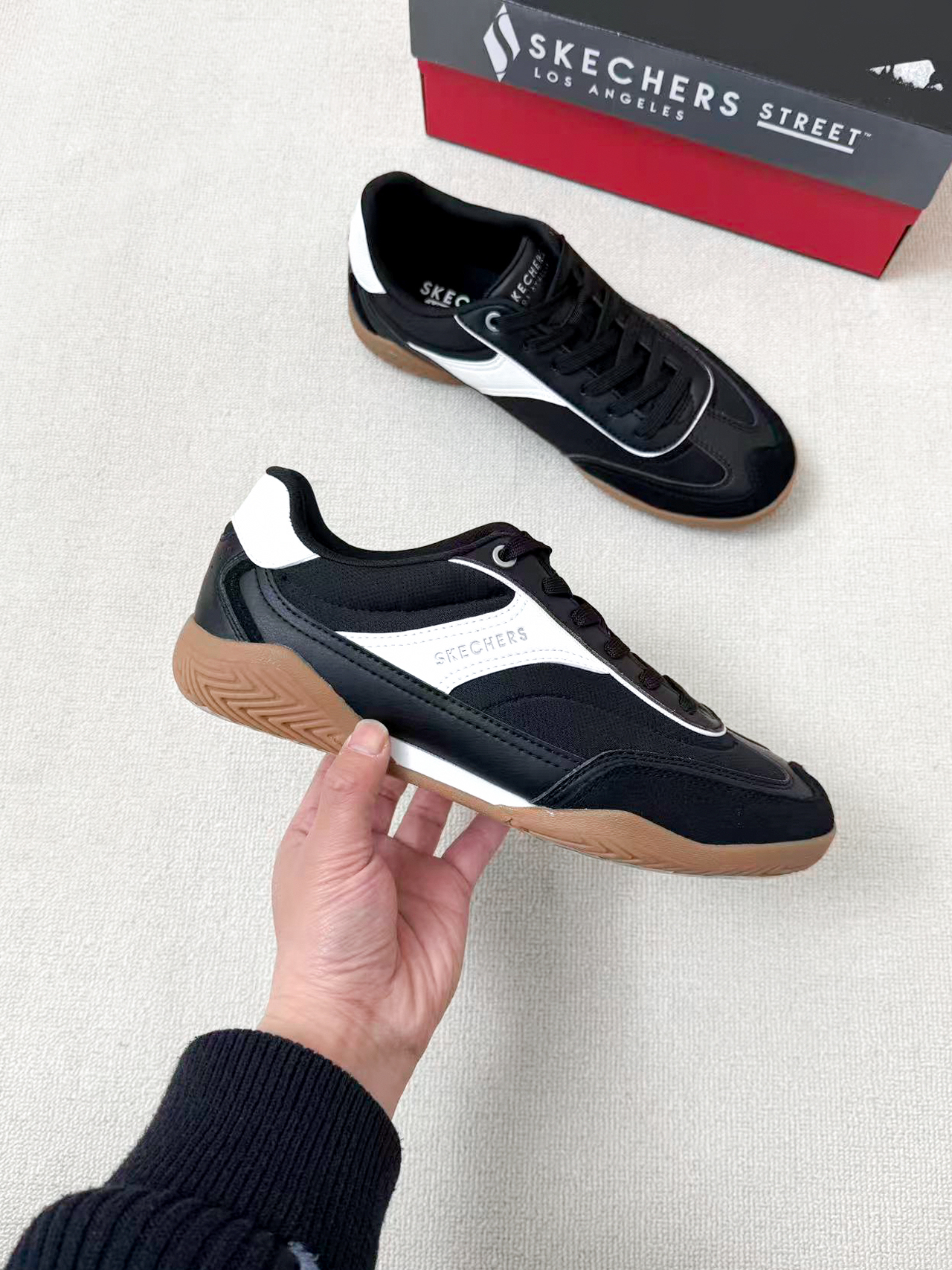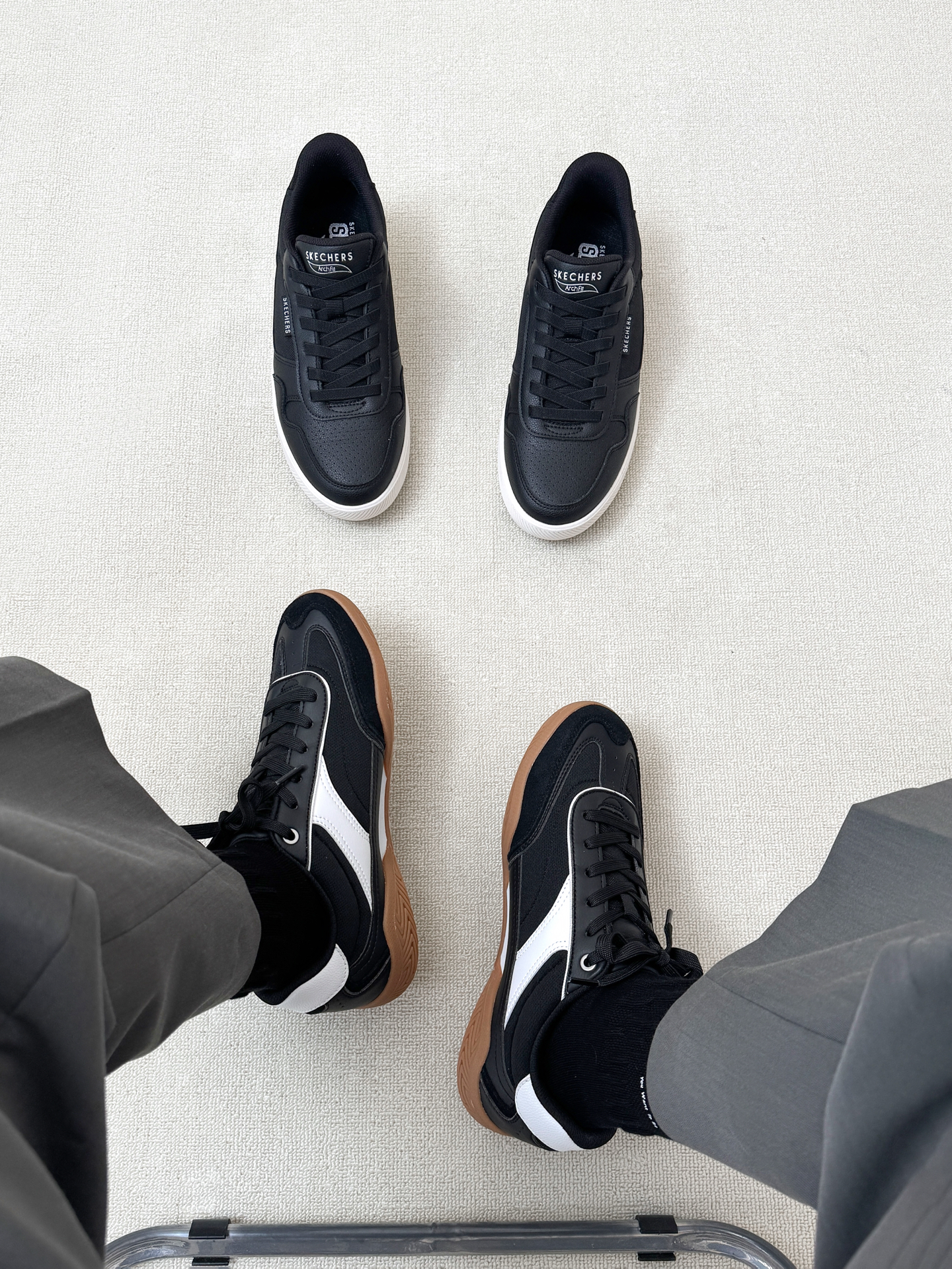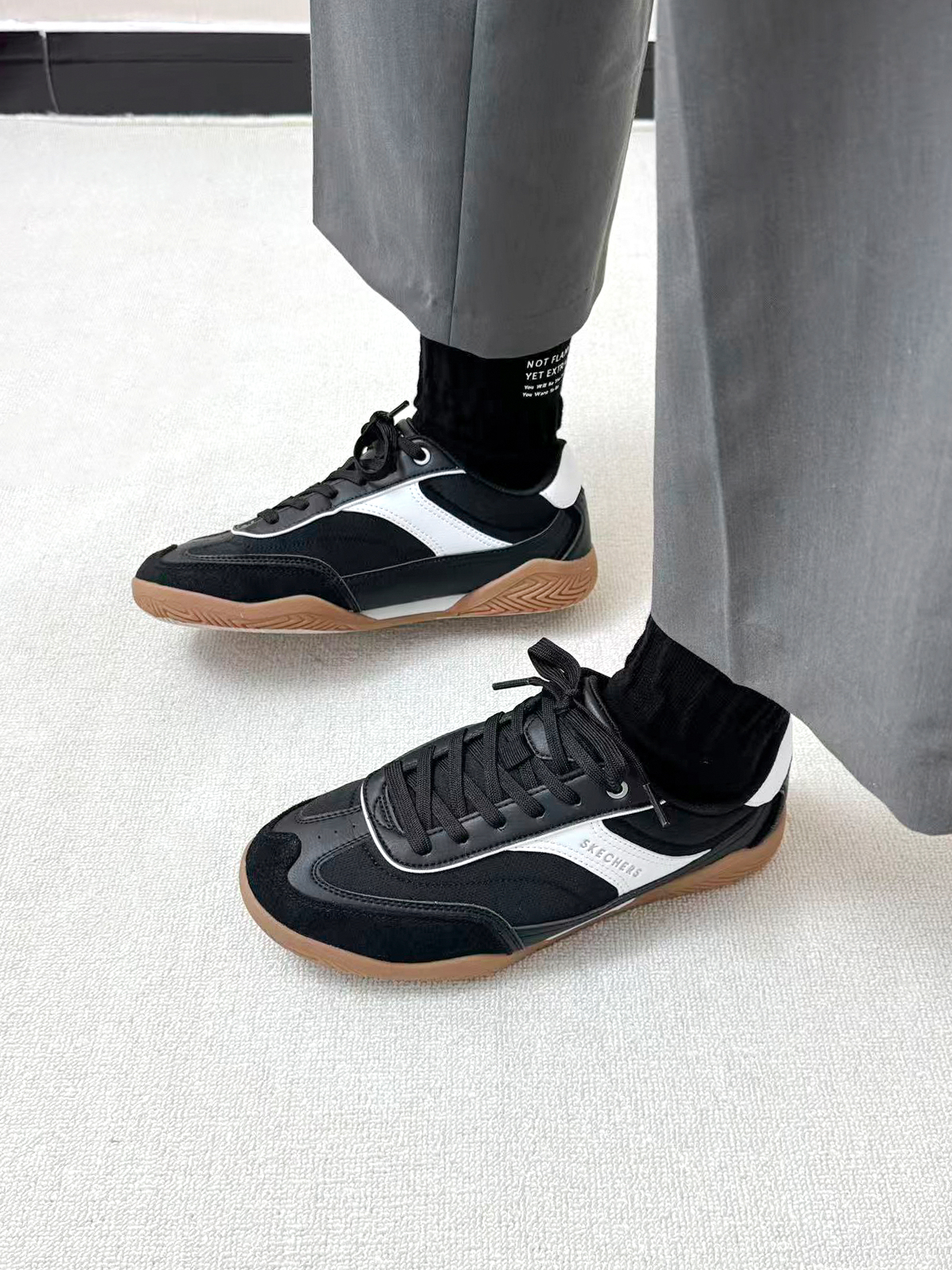 ~ 给大家分享两双 #Skechers 的黑白板鞋👟 我上脚的这双是德训鞋的鞋型 年龄段覆盖的就比较广了 黑白拼接黑生胶很百搭😎 另外一双是不用系鞋带的款 两双在搭配上面都不会很费力 像我日常常穿的牛仔裤和休闲卫裤都挺ok的 尺码小建议: 徐哥平常穿的40这双40的刚好合适💡 @SKECHERS斯凯奇 #单鞋拿捏春日氛围感 #性价比从夯到拉 #就是个板鞋脑袋 #此人鞋商极高 #skec...