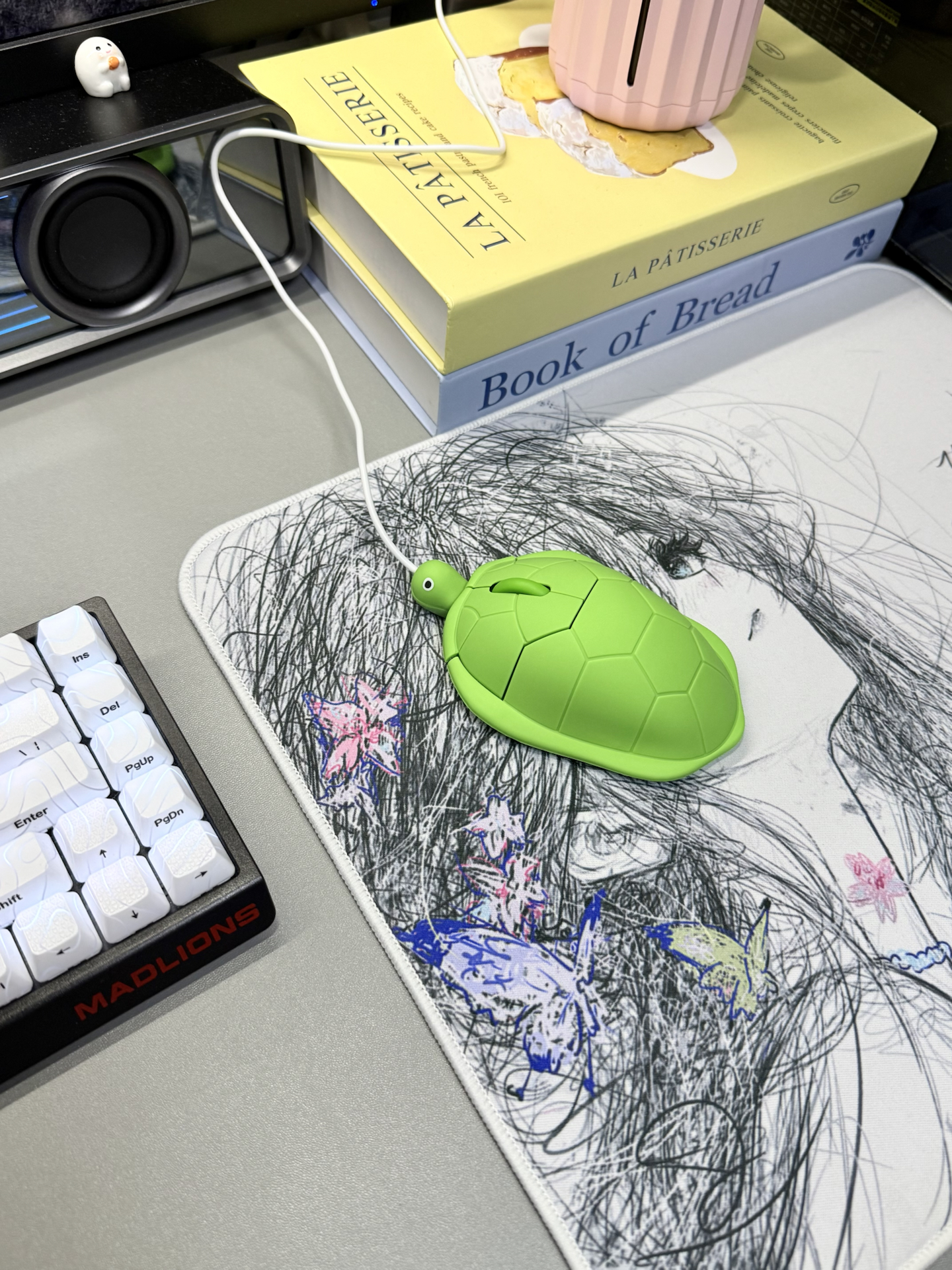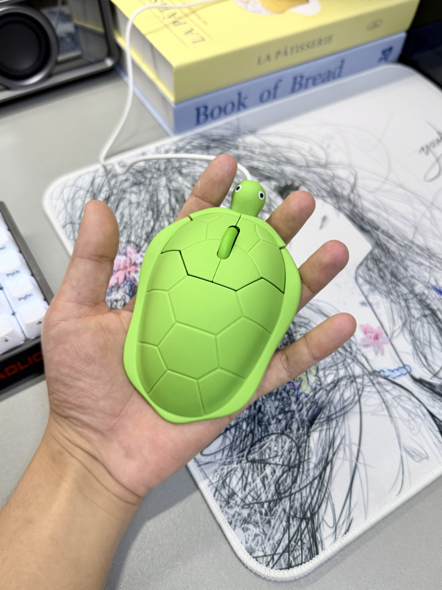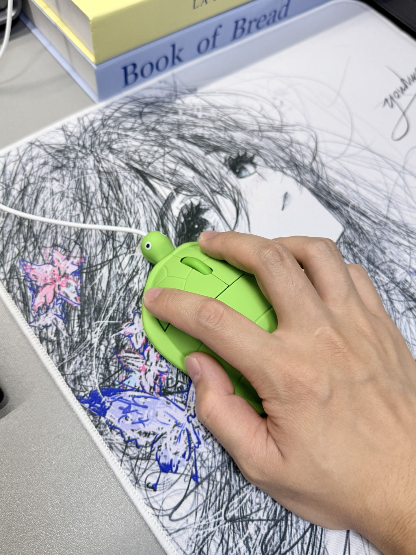 用了小乌龟以后才发现和之前用的有线无线鼠标都不一样! 可爱乌龟造型真的吸引我,瞬间萌化了! 握感也很不错,有线设计让鼠标更加灵敏,反应特别的快,用了这个鼠标后,fps游戏的技术提升真的很高!