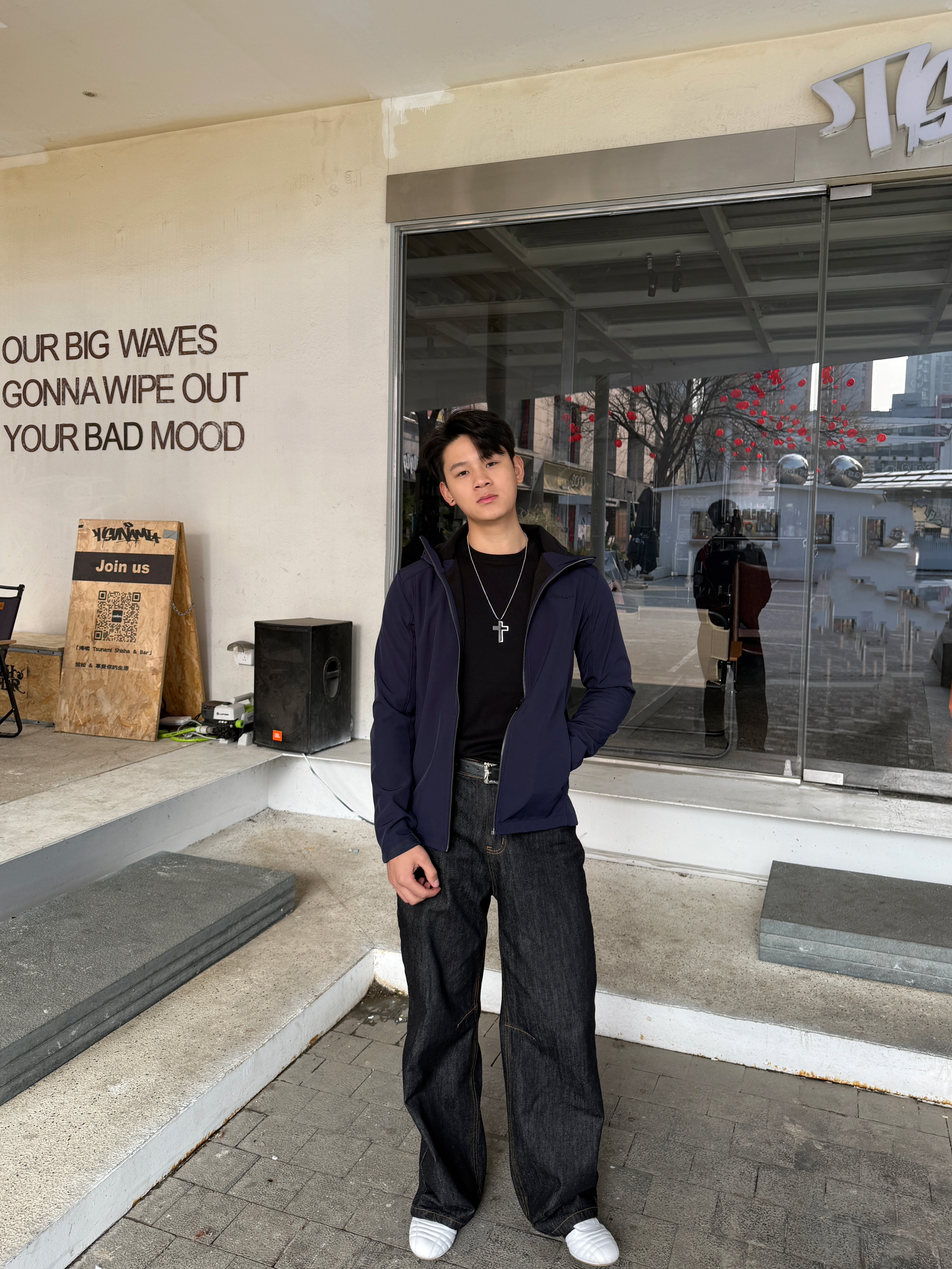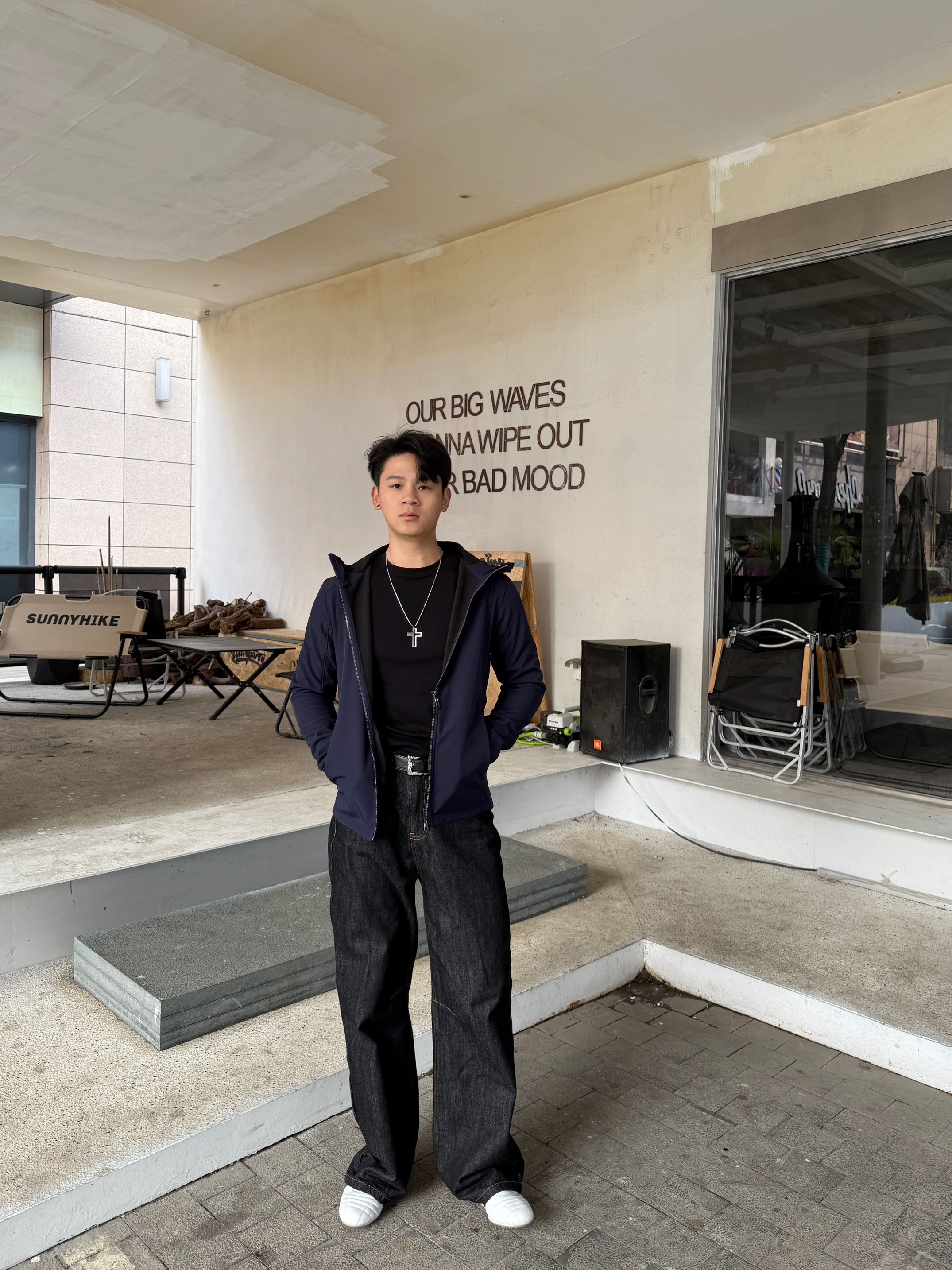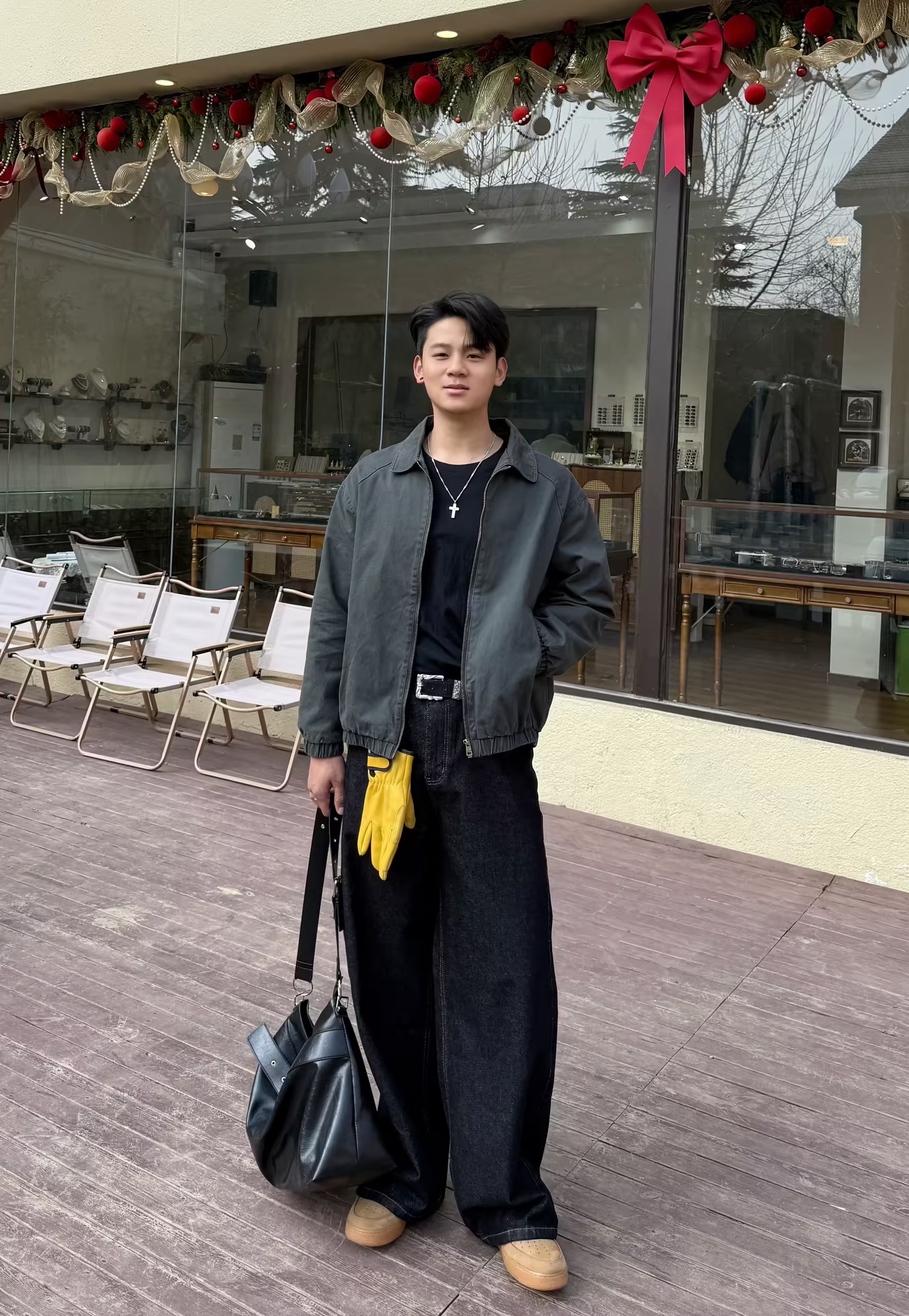 上衣我选择一件户外轻壳外套 防水面料加上头盔式加宽帽檐在户外下雨也不怕 连帽拉链式设计防风穿起脱也方便 内里毛绒面料温度风度同时在线 穿起来轻便舒适不紧绷 裤子我选择一条黑色直筒牛仔裤 鞋子来一个白色板鞋点缀 这样一身下来你认为怎么样?