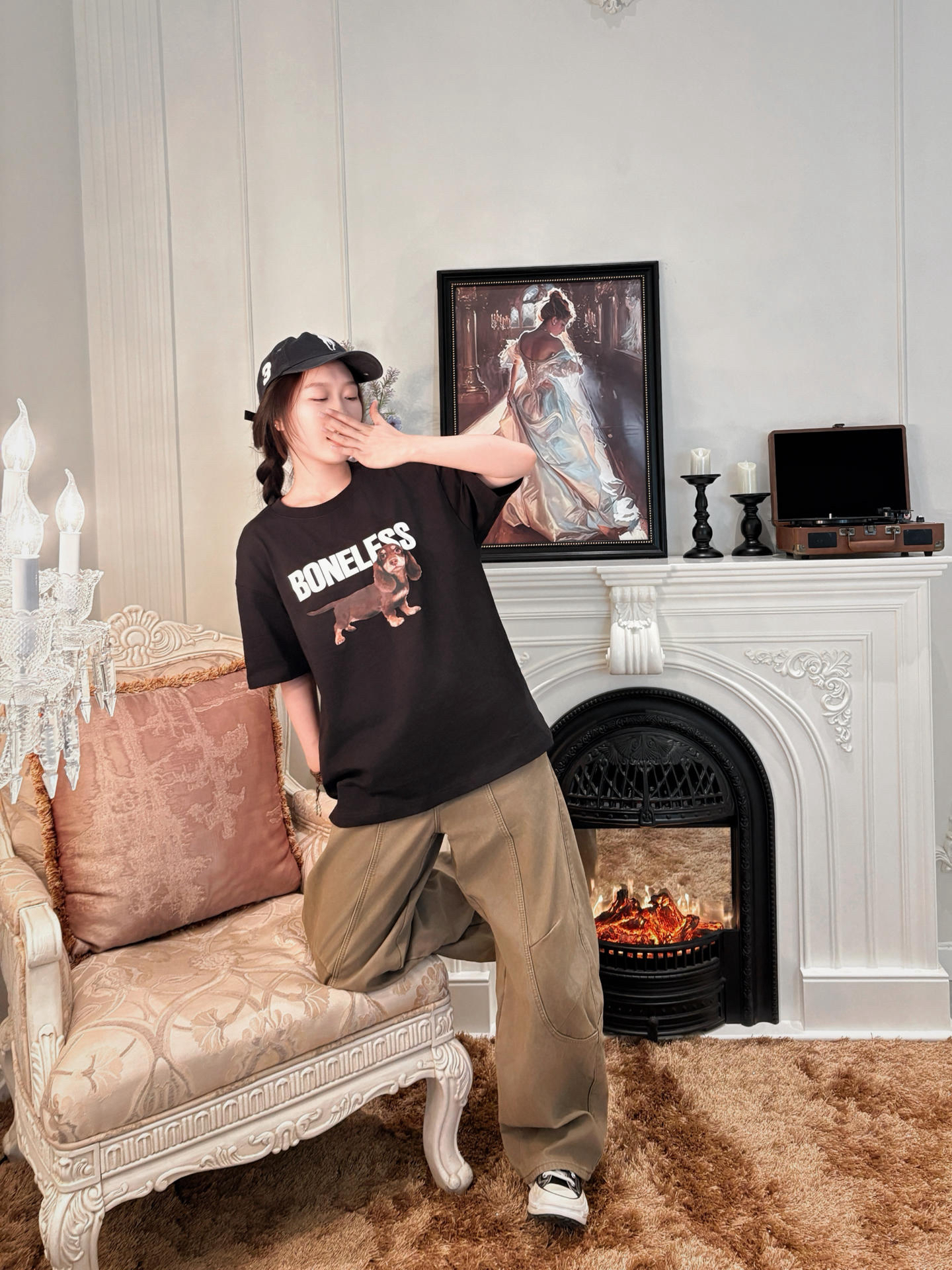 总是会反反复复爱上可爱的🐶🐶 腊肠修狗的T恤更是拒绝不了一点👋🏻 黑色T一直都是百搭不出错的基础单品 搭配棕色的镰刀裤和图案的颜色有一个呼应 同时更加穿出松弛感 这个T恤布料超级舒服哦 很亲肤透气 而且划重点❗️还是明星同款❗️ 入手不亏呀紫滋们 平价又好穿❗️ 提前一步享受夏天🌞
