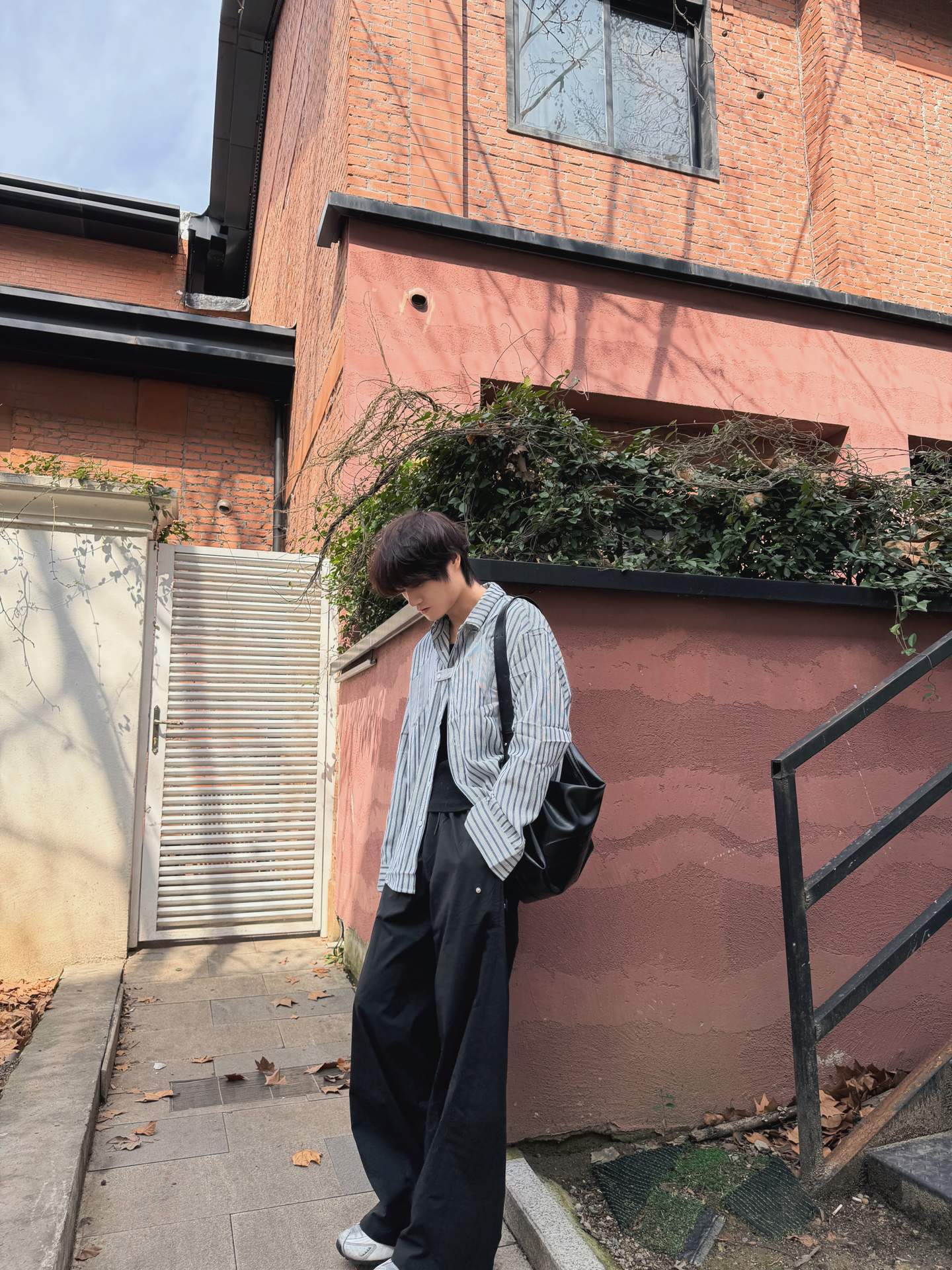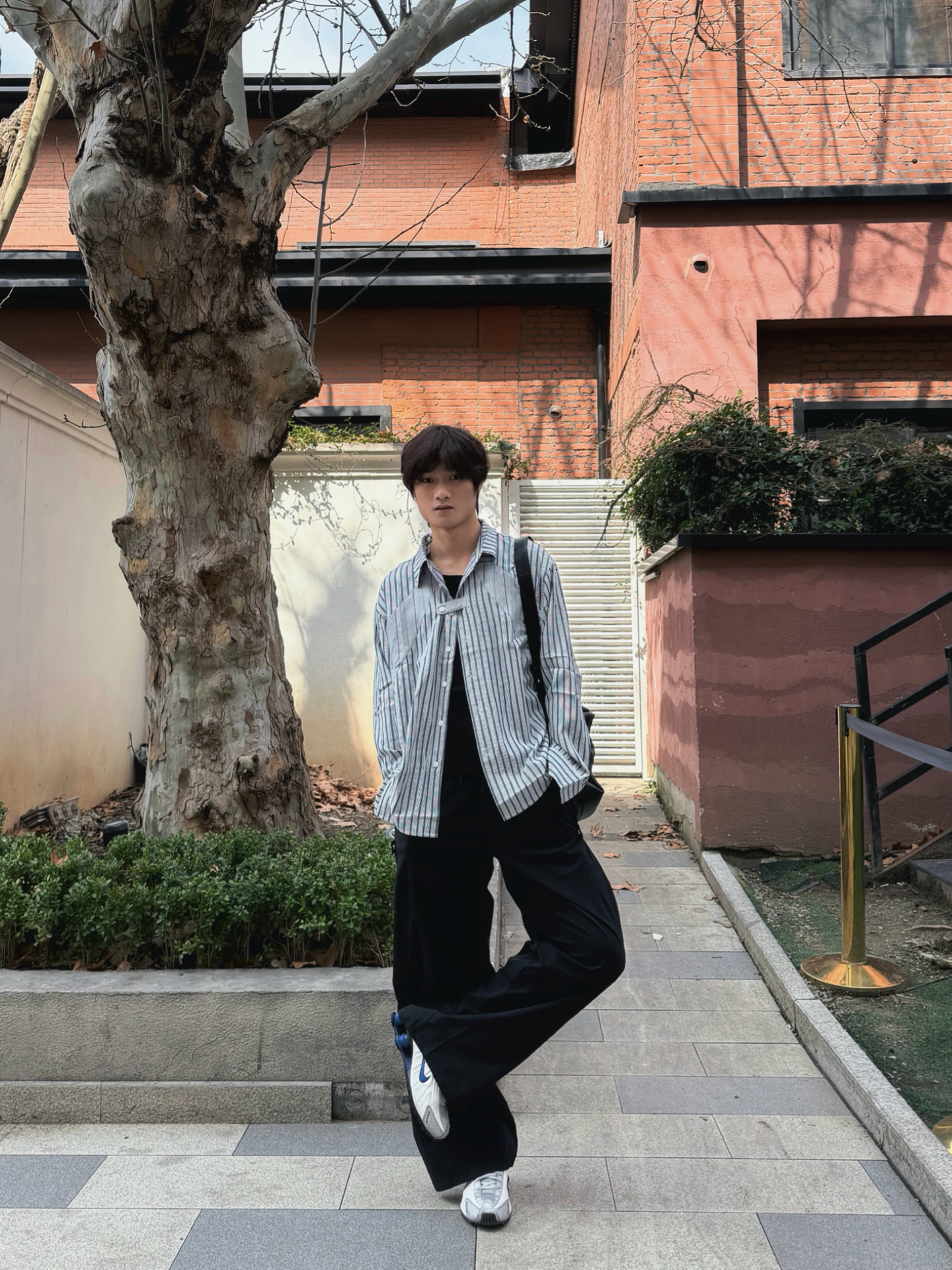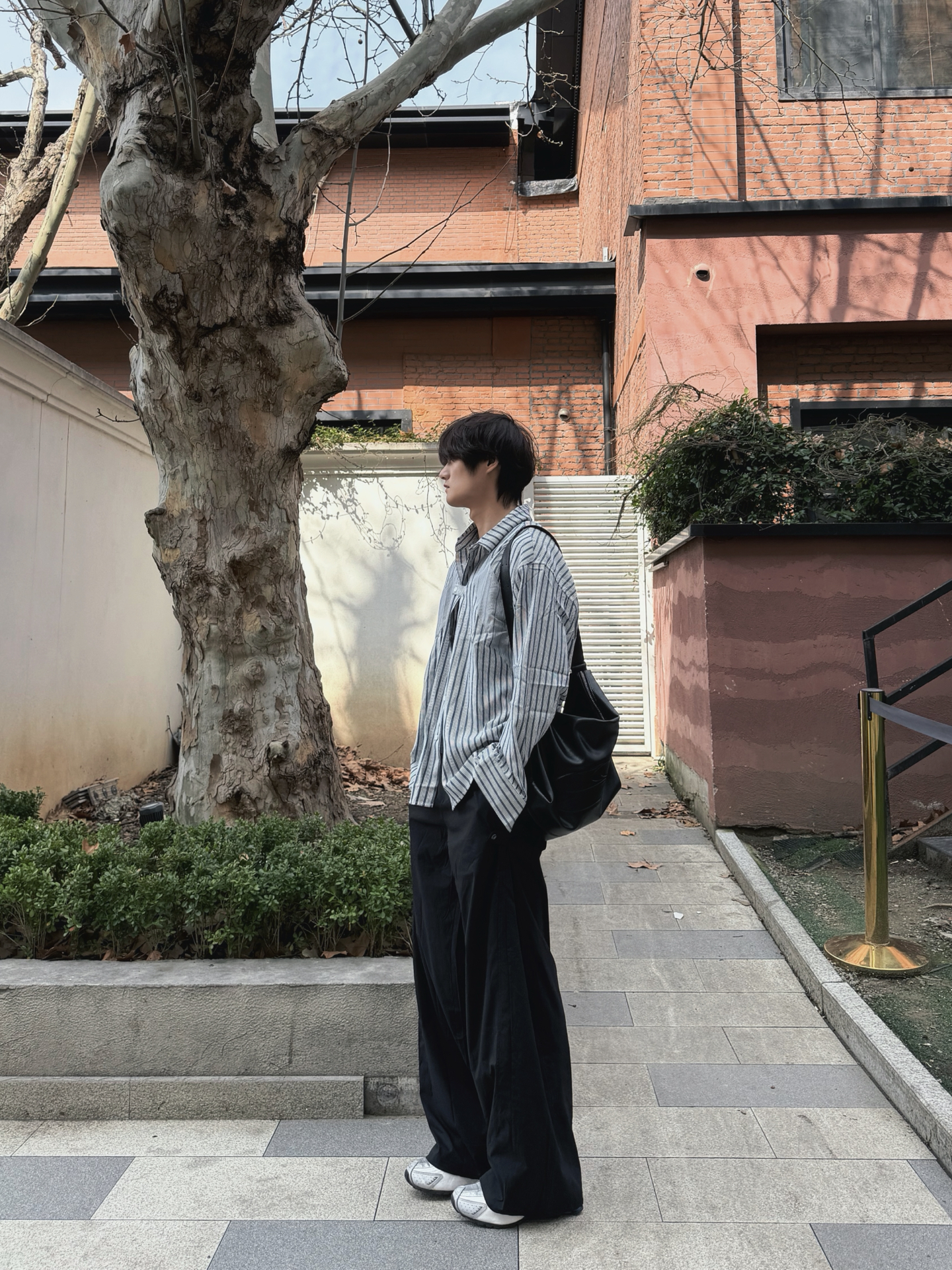 潮人的春天来了|基础款也能爆改潮人look😉 谁说变潮一定要买一堆新款?我用衣柜里的基础条纹衬衫+黑色阔腿裤,照样搭出街头感! 1️⃣选廓形条纹衬衫,不扣扣子敞开穿,内搭黑色背心做层次,打破基础款的呆板; 2️⃣下装选弯刀裤,用剪裁盘活整套基础搭配,自带sagging松弛感,瞬间跳出路人感; 3️⃣饰极简单一点,只背一个黑色斜挎包,突出穿搭重点,不堆砌反而更有潮人调性😆 衣服不够多没关系,找对...