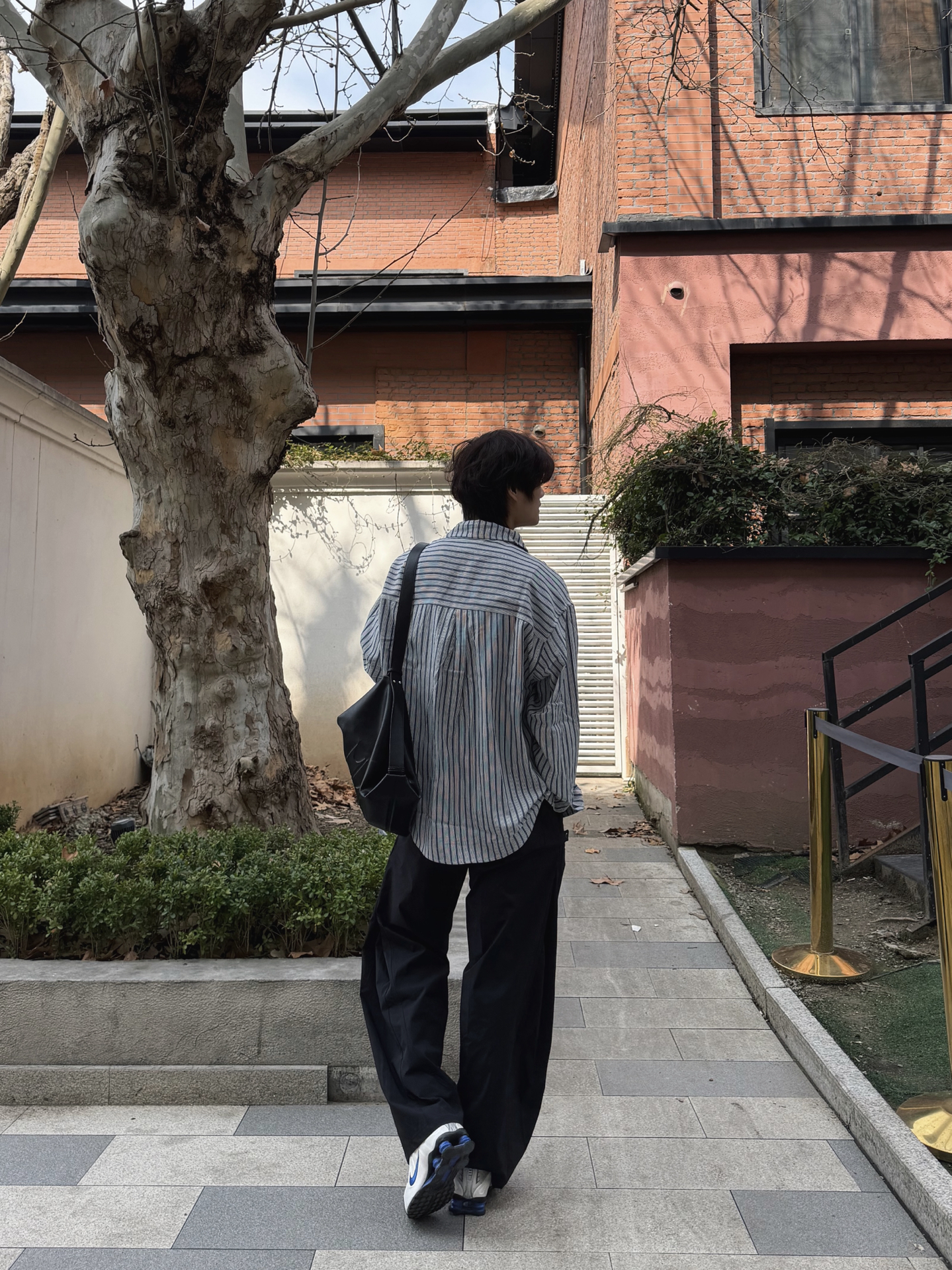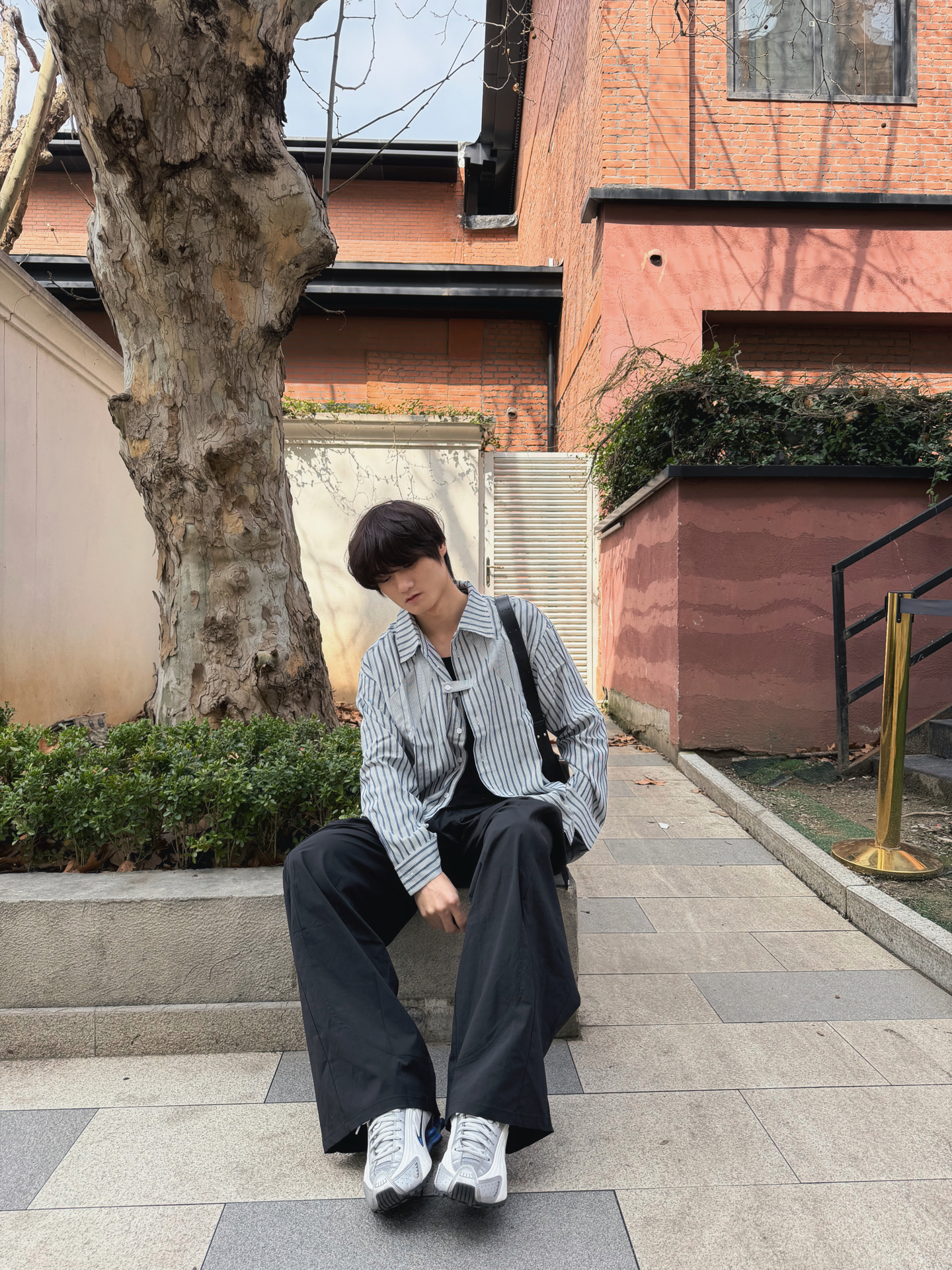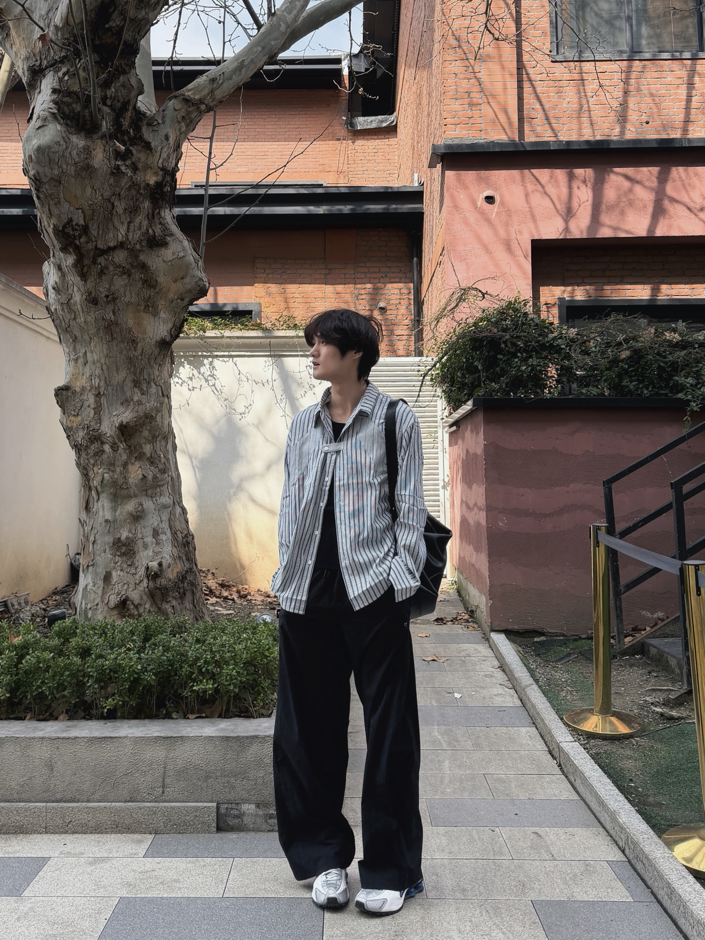 潮人的春天来了|基础款也能爆改潮人look😉 谁说变潮一定要买一堆新款?我用衣柜里的基础条纹衬衫+黑色阔腿裤,照样搭出街头感! 1️⃣选廓形条纹衬衫,不扣扣子敞开穿,内搭黑色背心做层次,打破基础款的呆板; 2️⃣下装选弯刀裤,用剪裁盘活整套基础搭配,自带sagging松弛感,瞬间跳出路人感; 3️⃣饰极简单一点,只背一个黑色斜挎包,突出穿搭重点,不堆砌反而更有潮人调性😆 衣服不够多没关系,找对...
