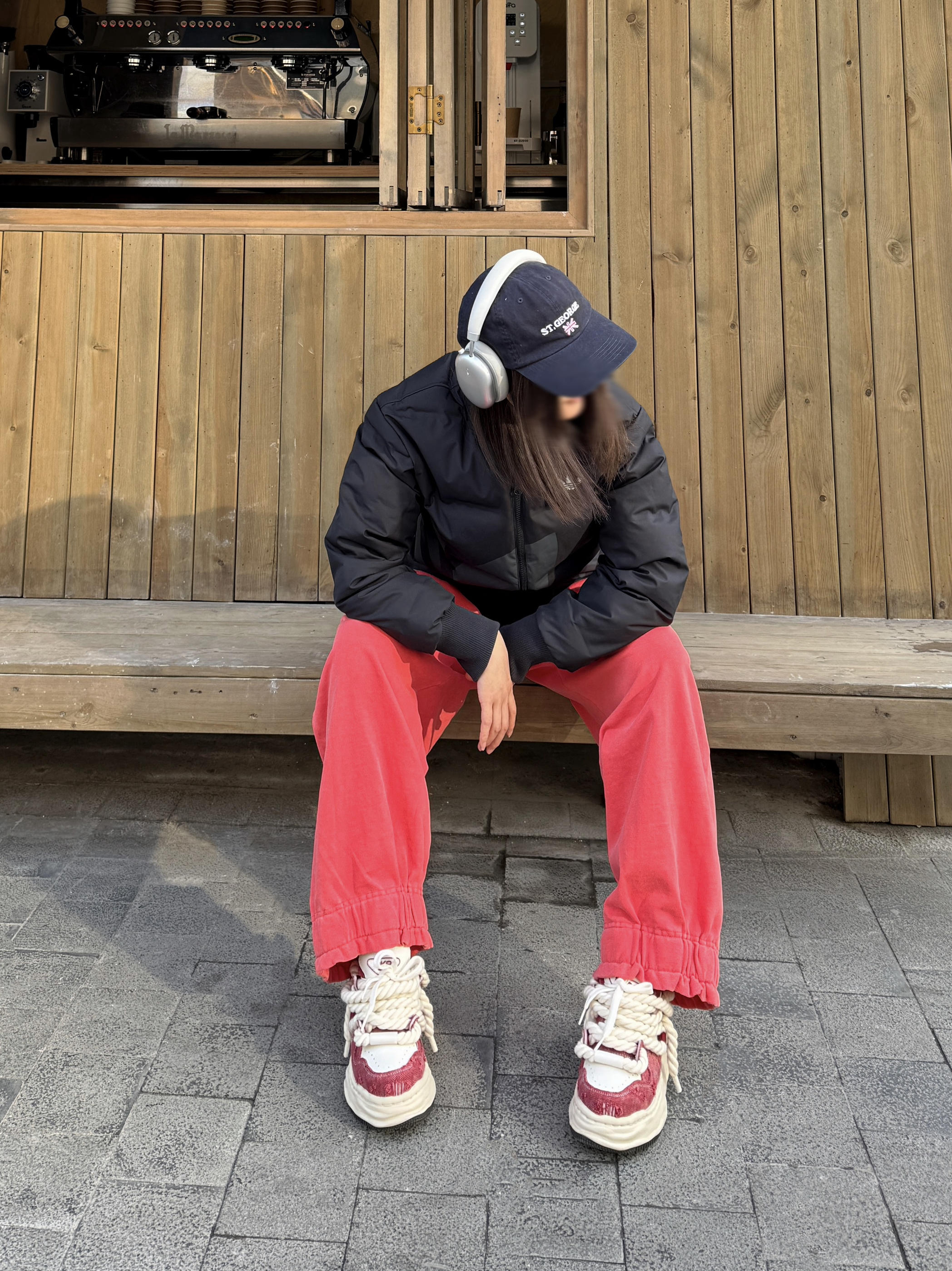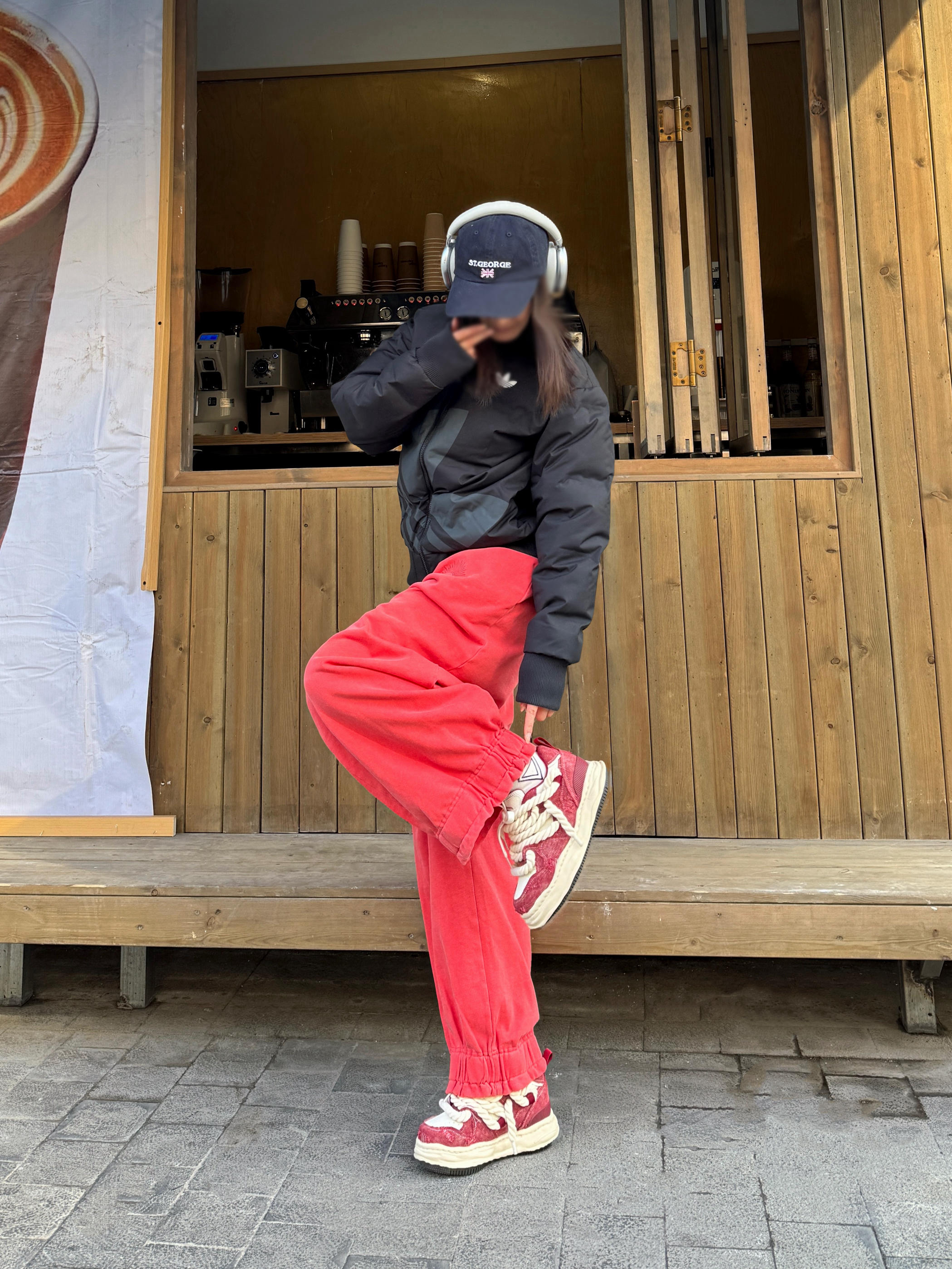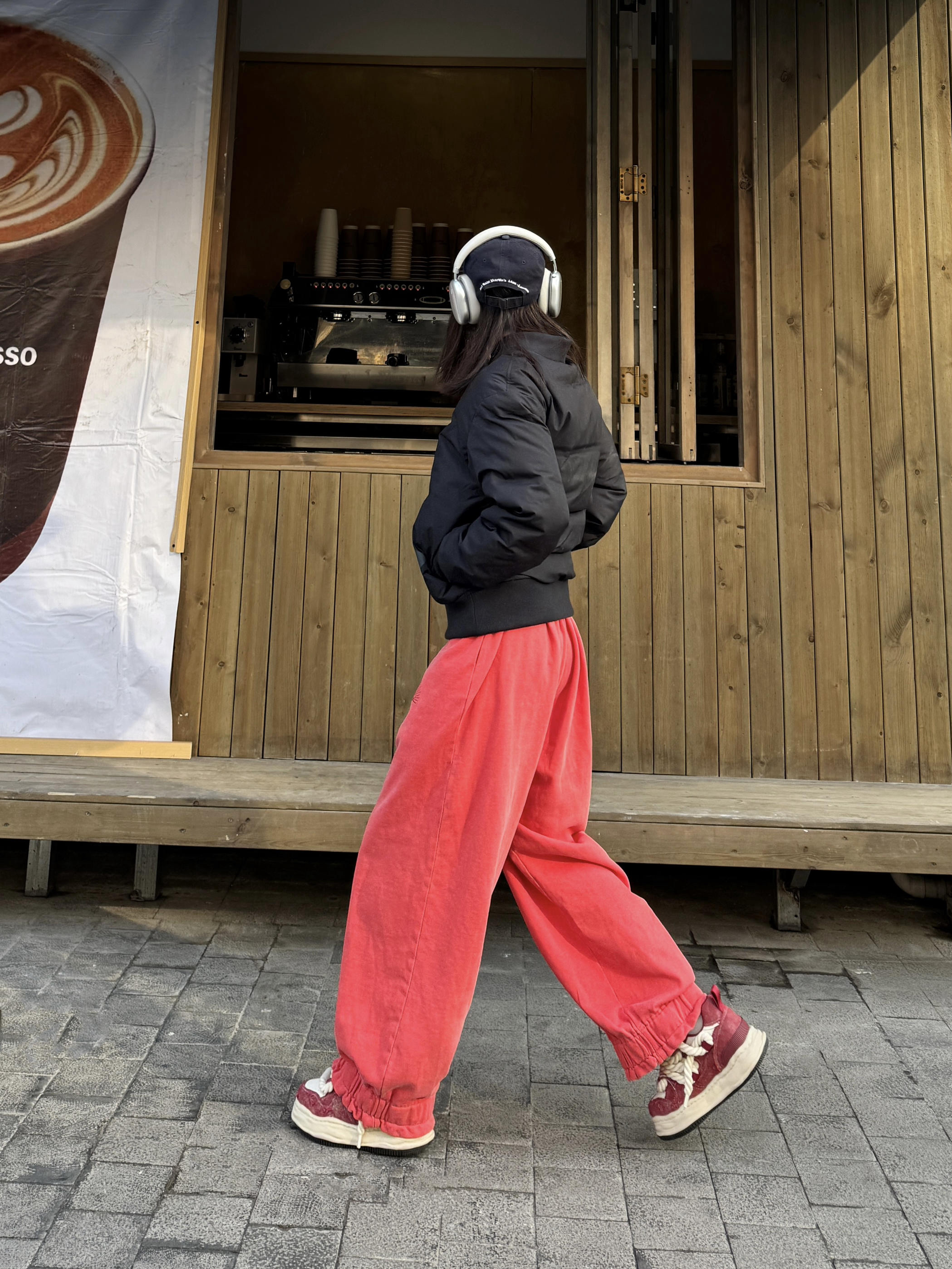 新年新look 拒绝臃肿 搭了一套实穿又讨喜的街头风Look~ 黑色经典棒球夹克羽绒服➕西瓜红休闲卫裤, 上简下繁的配色既藏肉显瘦,又把年味拿捏得刚刚好 再踩一双红白拼色 DVO 增高鞋,这鞋子一上脚自带7cm的隐形增高,搭配宽松裤子显得比例好,很适合小个子,脚感就是平底鞋的脚感,出街走路多也不累脚