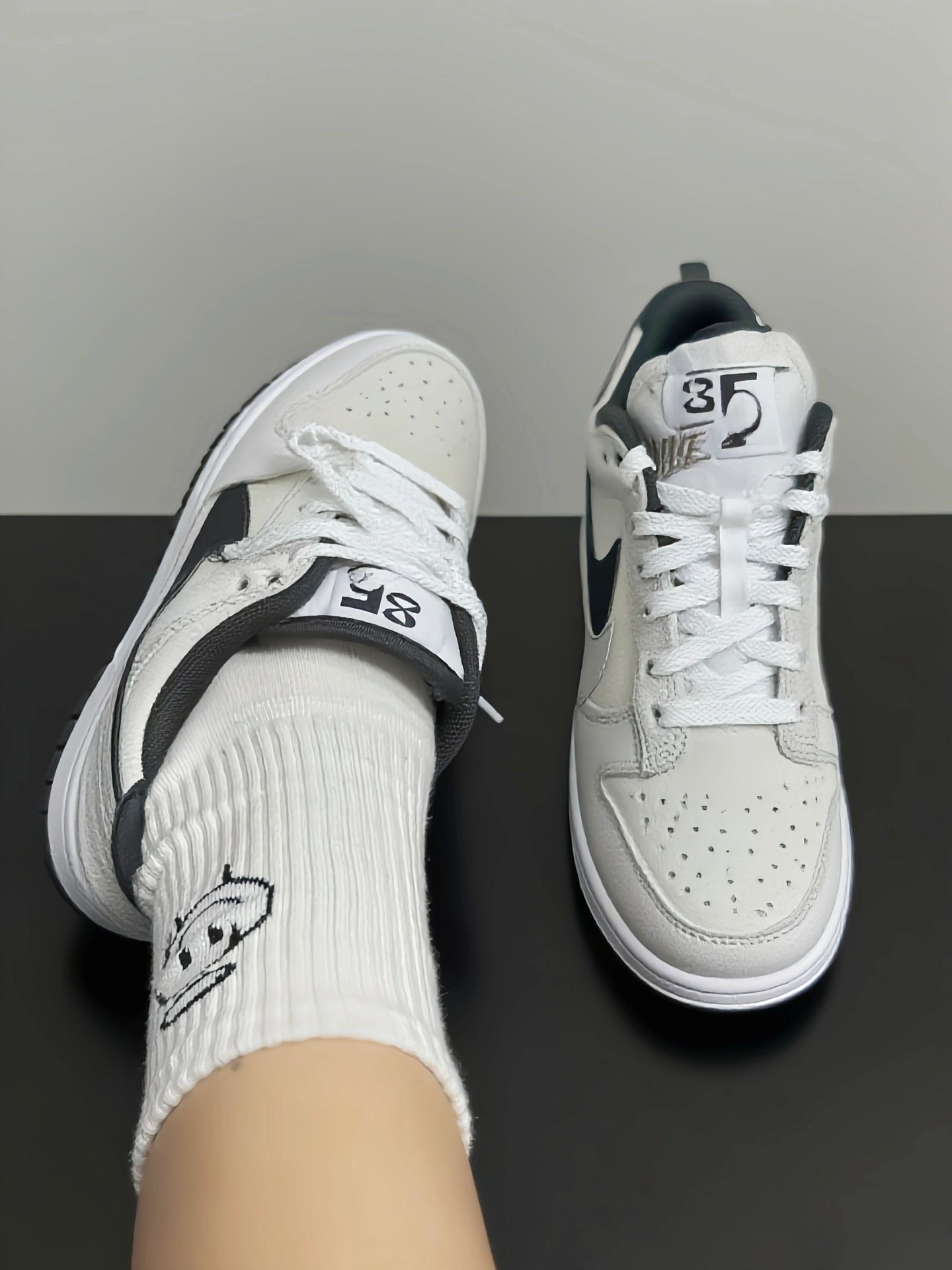 实测8小时!这双Nike Dunk Low太绝了✨|||入手这双Nike Dunk Low “Double Swoosh”白色女款板鞋后,我可算是解锁了不少新穿搭。它柔软的皮革材质,穿起来舒适又显质感,薄底设计走起路来超轻便。 日常出街,我喜欢用它搭配浅蓝色直筒牛仔裤。白色板鞋与蓝色牛仔裤碰撞出清新感,上衣再套一件宽松的黑色短款T恤,简约又不失时尚,背上小巧的白色斜挎包,轻松拿捏休闲时髦风,无...