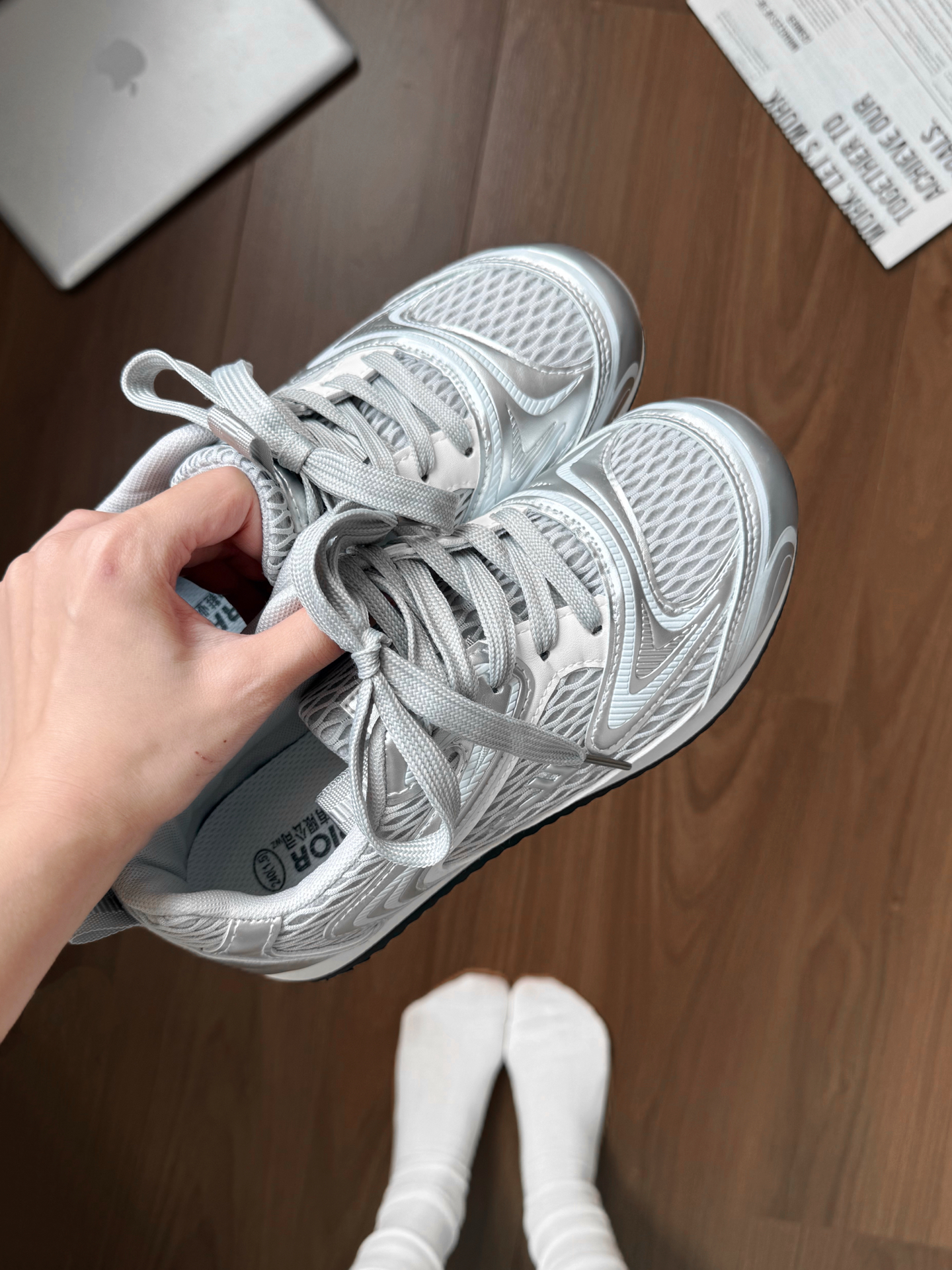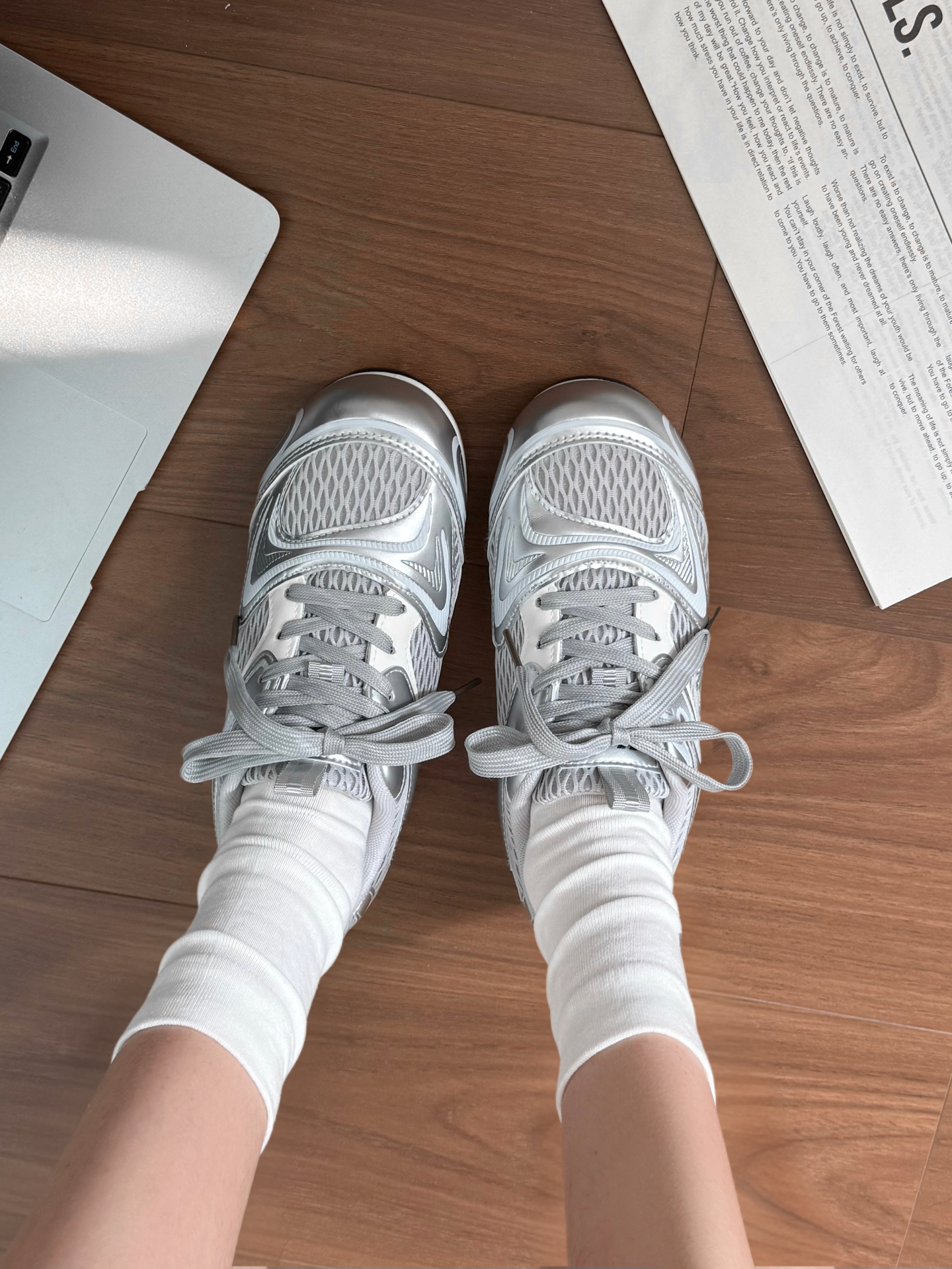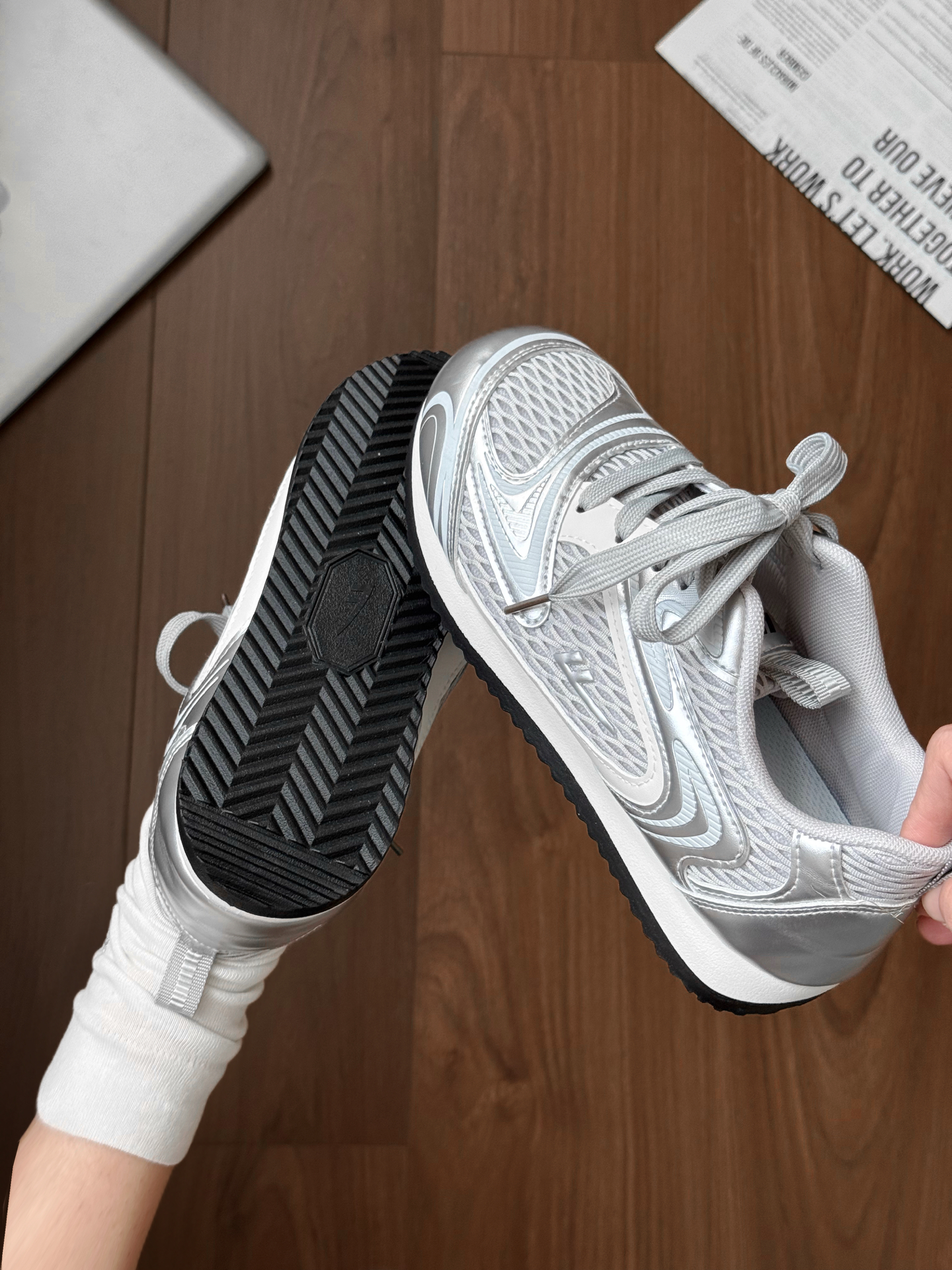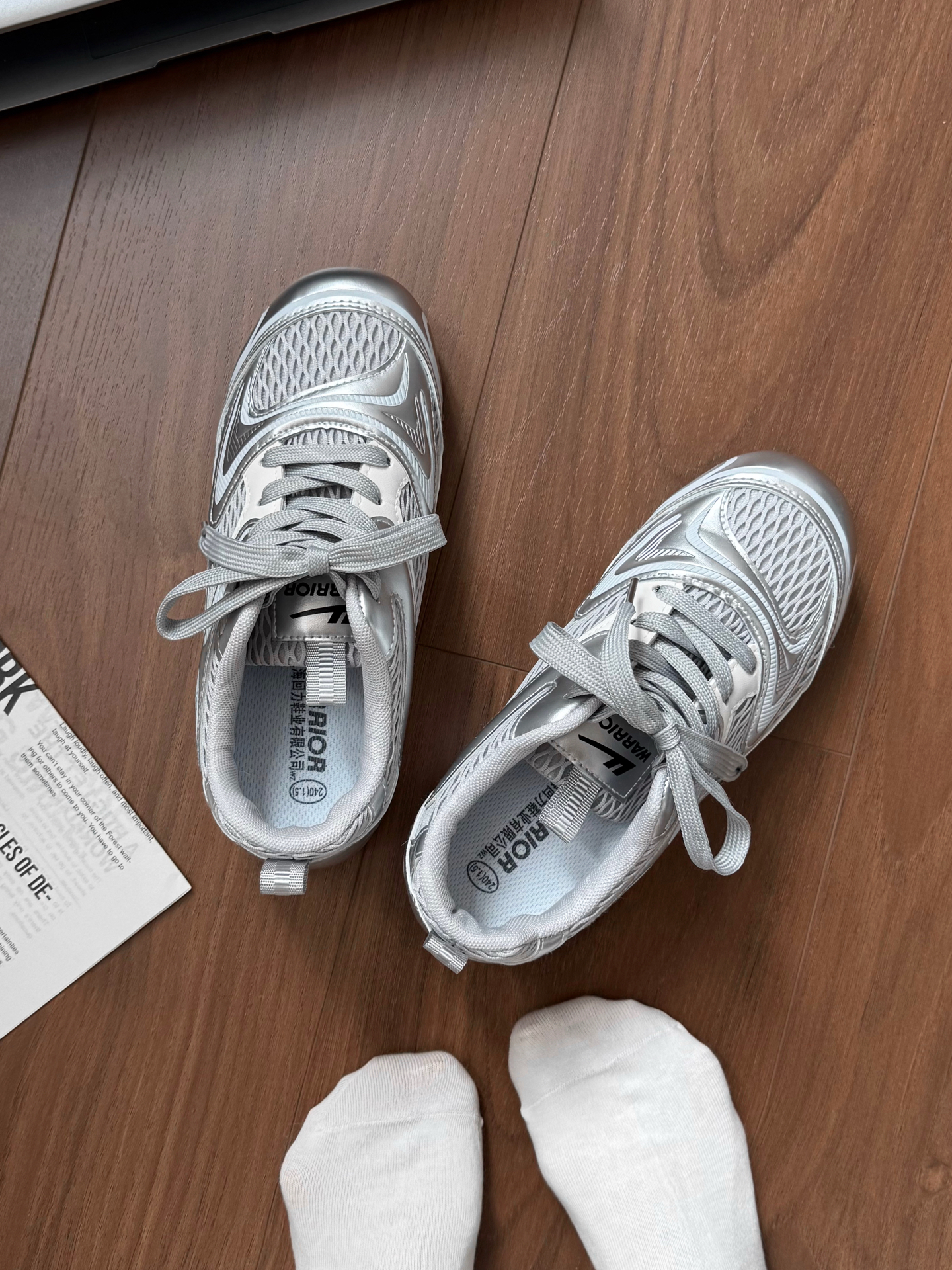 银色未来风阿甘鞋又复古又前卫 这双我感觉尺码还挺正 银色也蛮百搭的 穿小白裙就挺好看! 圆头圆脑的老可爱啦 网面透气还挺适合夏天穿嘟 #此人鞋商极高 #买双新鞋哄自己上学 #单鞋拿捏春日氛围感 #潮人的春天来了 #Warrior回力