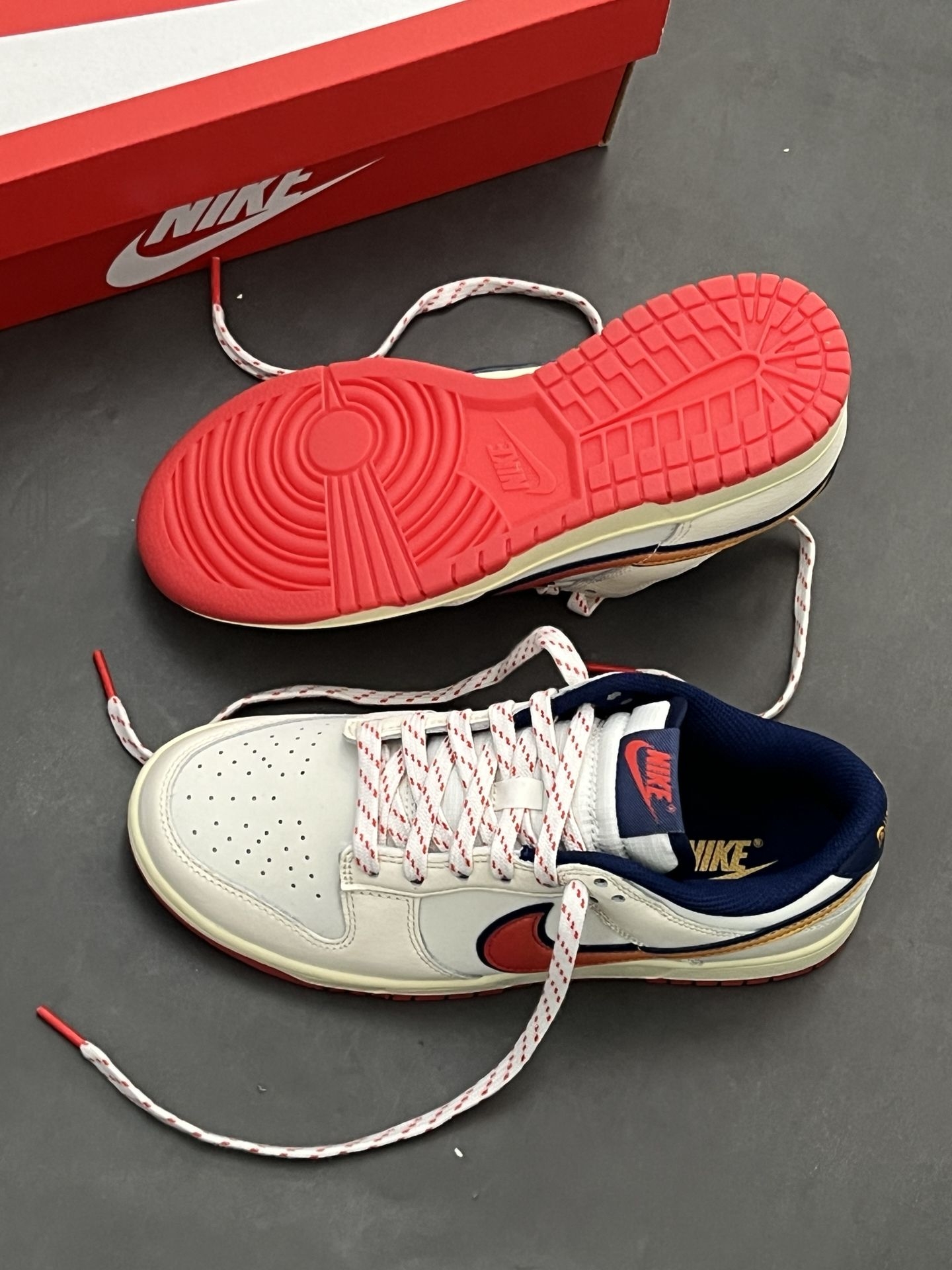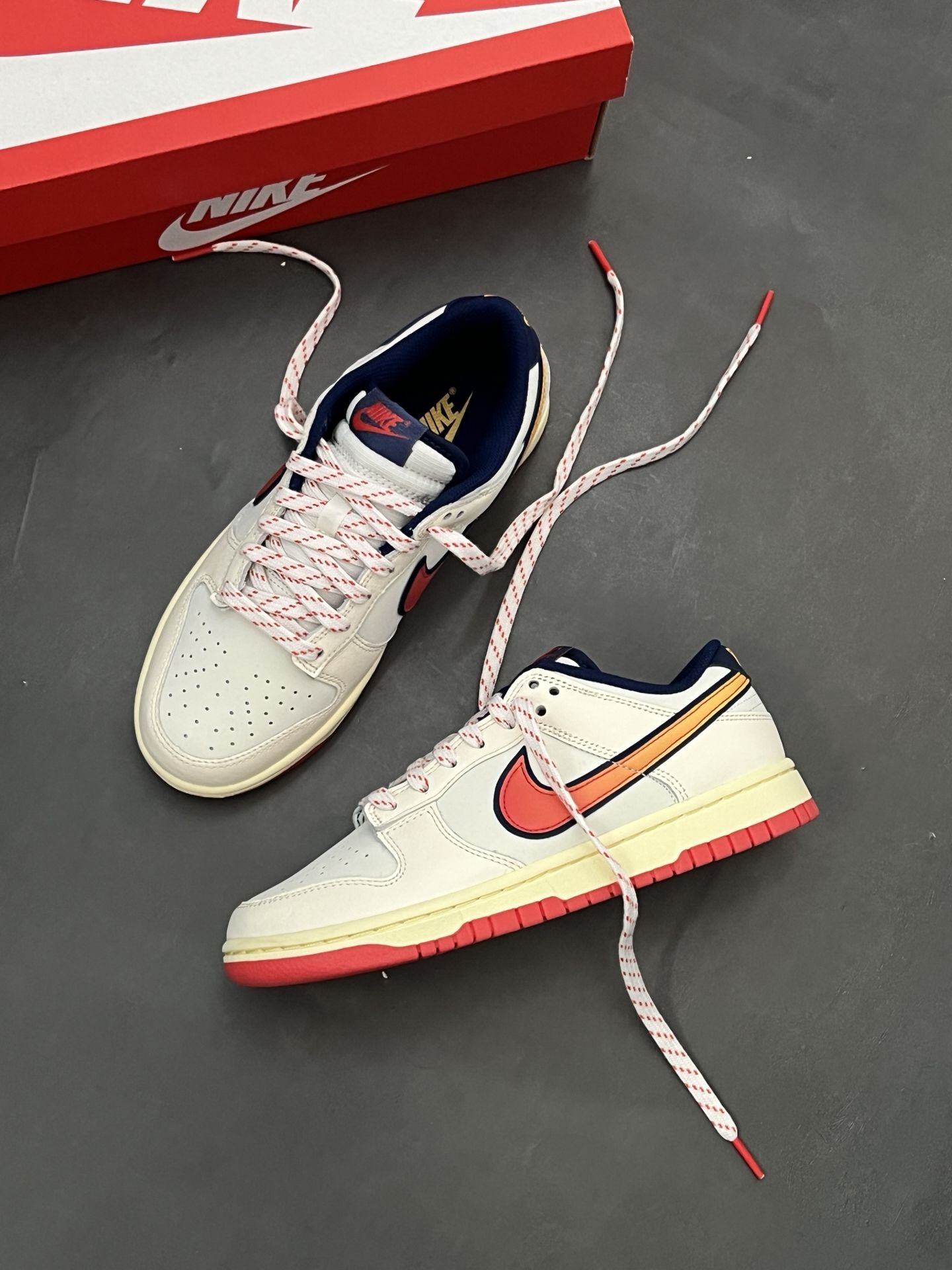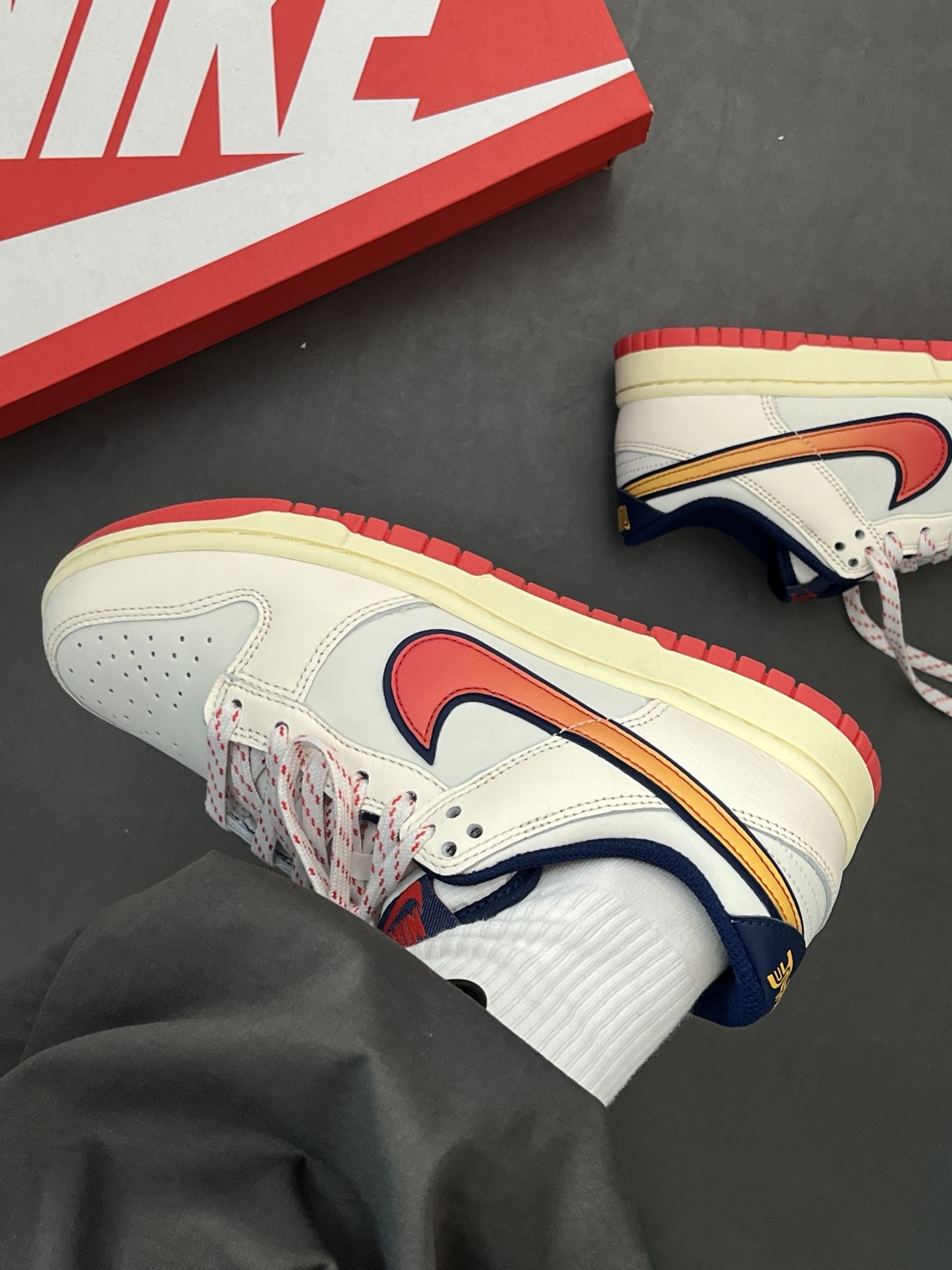 不愧是全明星Dunk,配色太有活力了~|||米白鞋面+渐变橘红Swoosh 搭配上红色大底 吸睛好复古 像走进落日余晖里一样~ 经典鞋型属于四季都能搭那种,上脚穿起来轻便 皮革材质也好打理~ #新年复古球鞋穿这双 #这双鞋很百搭 #马上换新鞋 #复古鞋控必入 #竟然被鞋抢了c位 @得鞋狗 @得物App