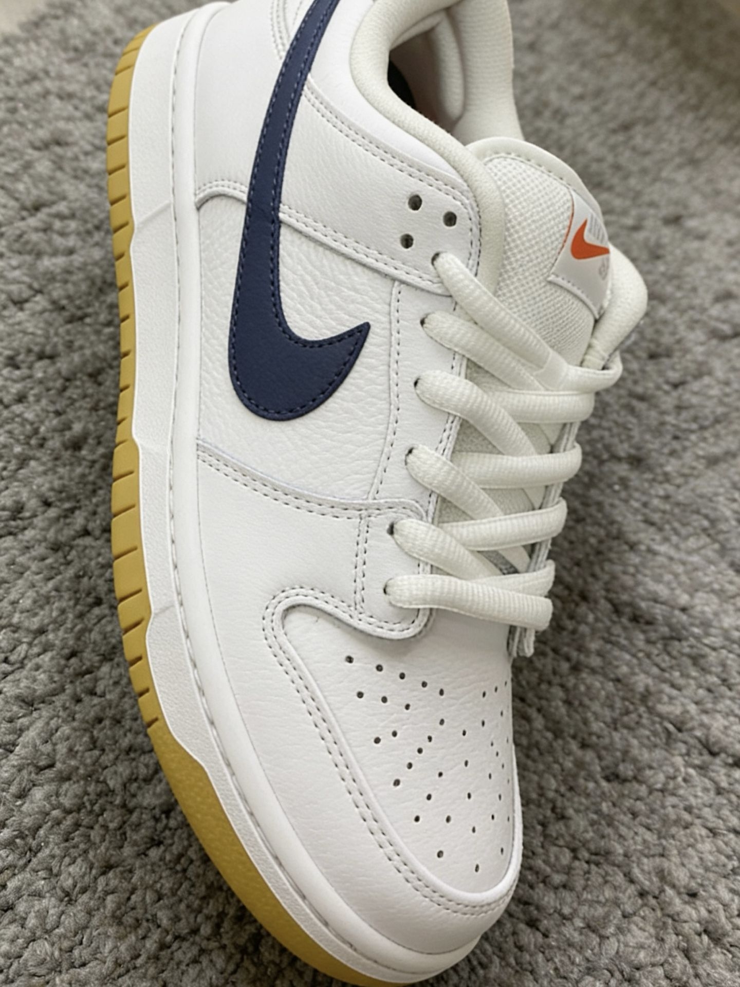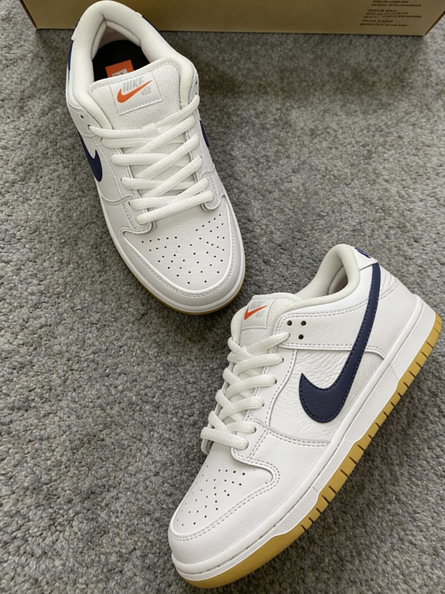 Nike SB Dunk白蓝生胶,通勤出街都能打|||这双Nike SB Dunk白蓝生胶,真的是日常好搭款。白色荔枝纹皮面干净,藏蓝Swoosh和生胶底很有复古感,附赠的蓝鞋带还能换着玩。不管是配牛仔裤、运动裤还是短裤都不违和,上学、滑板、逛街都能穿,脚感也舒服,属于越看越耐看的类型😎 #哪个男生没有双Dunk #宝藏百搭dunksb分享 #穿新鞋美美过年 #dunk白生胶
