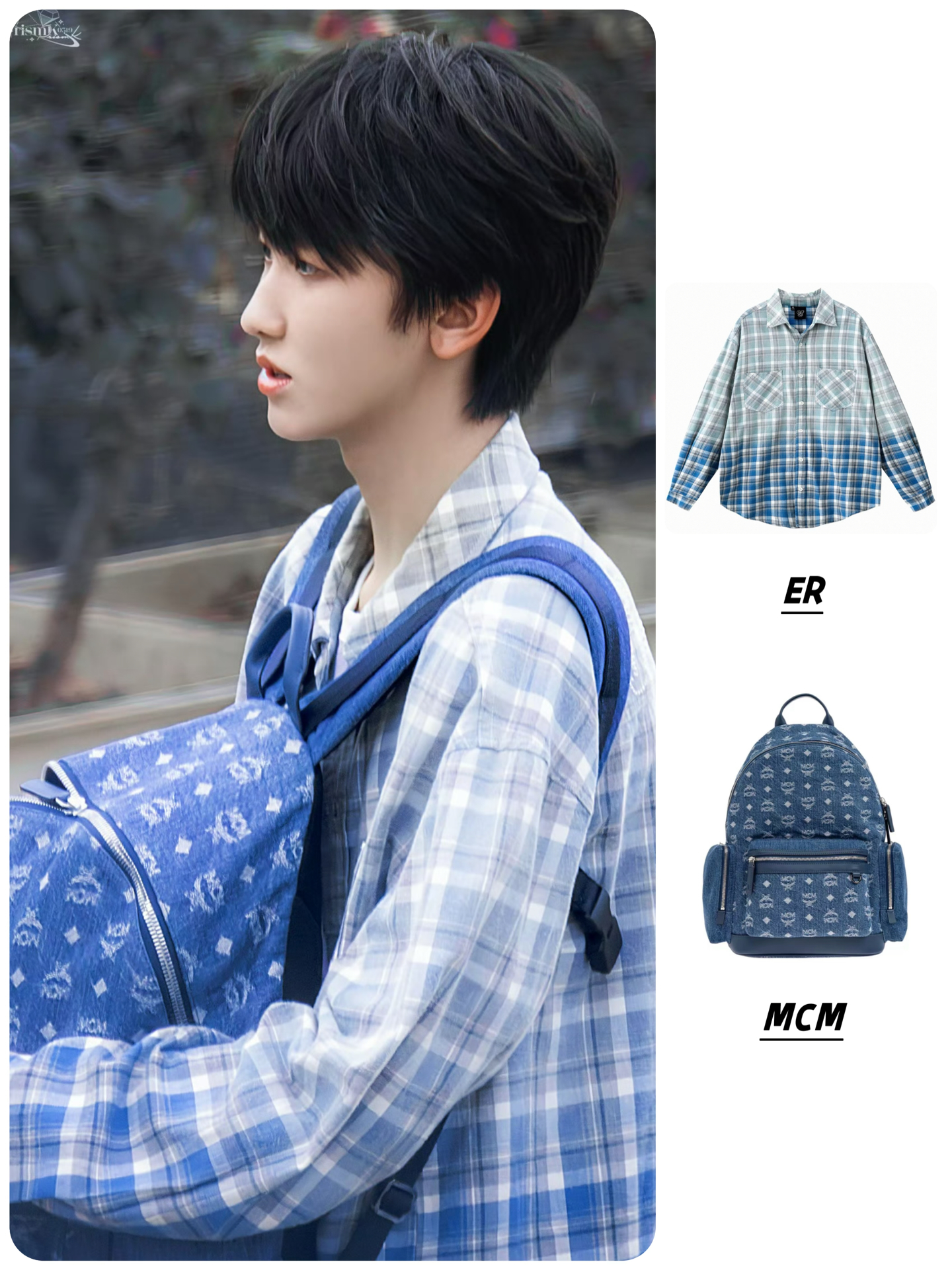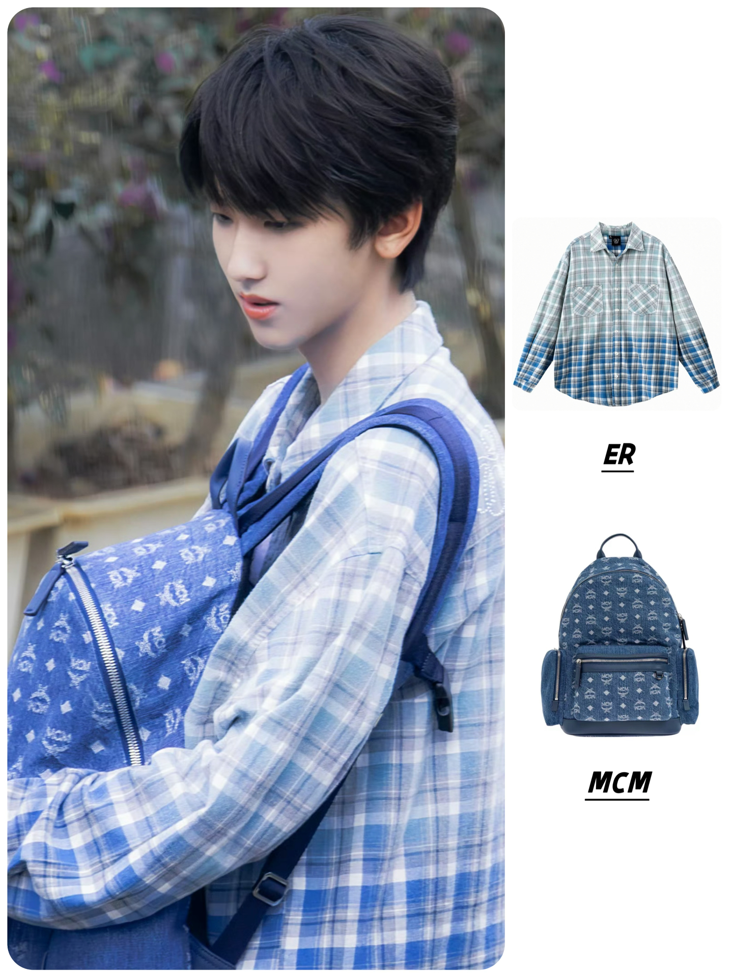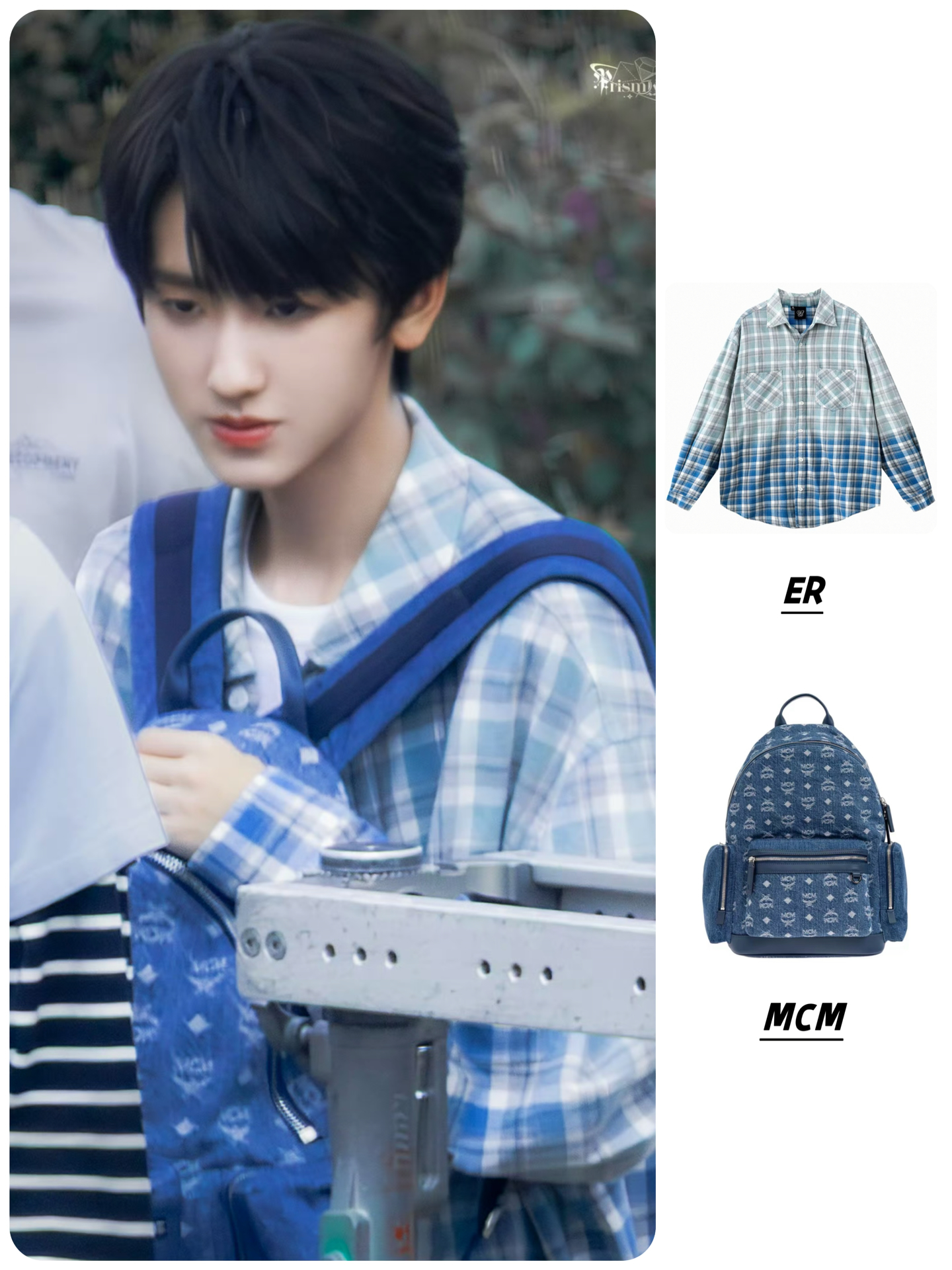 👔ER贴珠渐变格纹撞色长袖衬衫复古格子衬衣 🎒MCM Stark 银色钴金属配件双向拉链开合 牛仔布 双肩包 #我的书包超有料 #左奇函同款