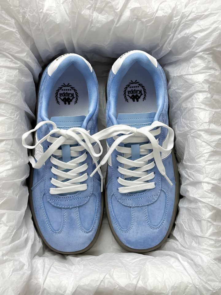 本篇笔记关联了Kappa 城际通勤系列 德训鞋 板鞋 百搭舒适耐磨时尚增高软底学院风复古轻便秋冬厚底情侣 女款/品月蓝/白色/棕色等商品,为用户提供真实的使用体验和购买参考。