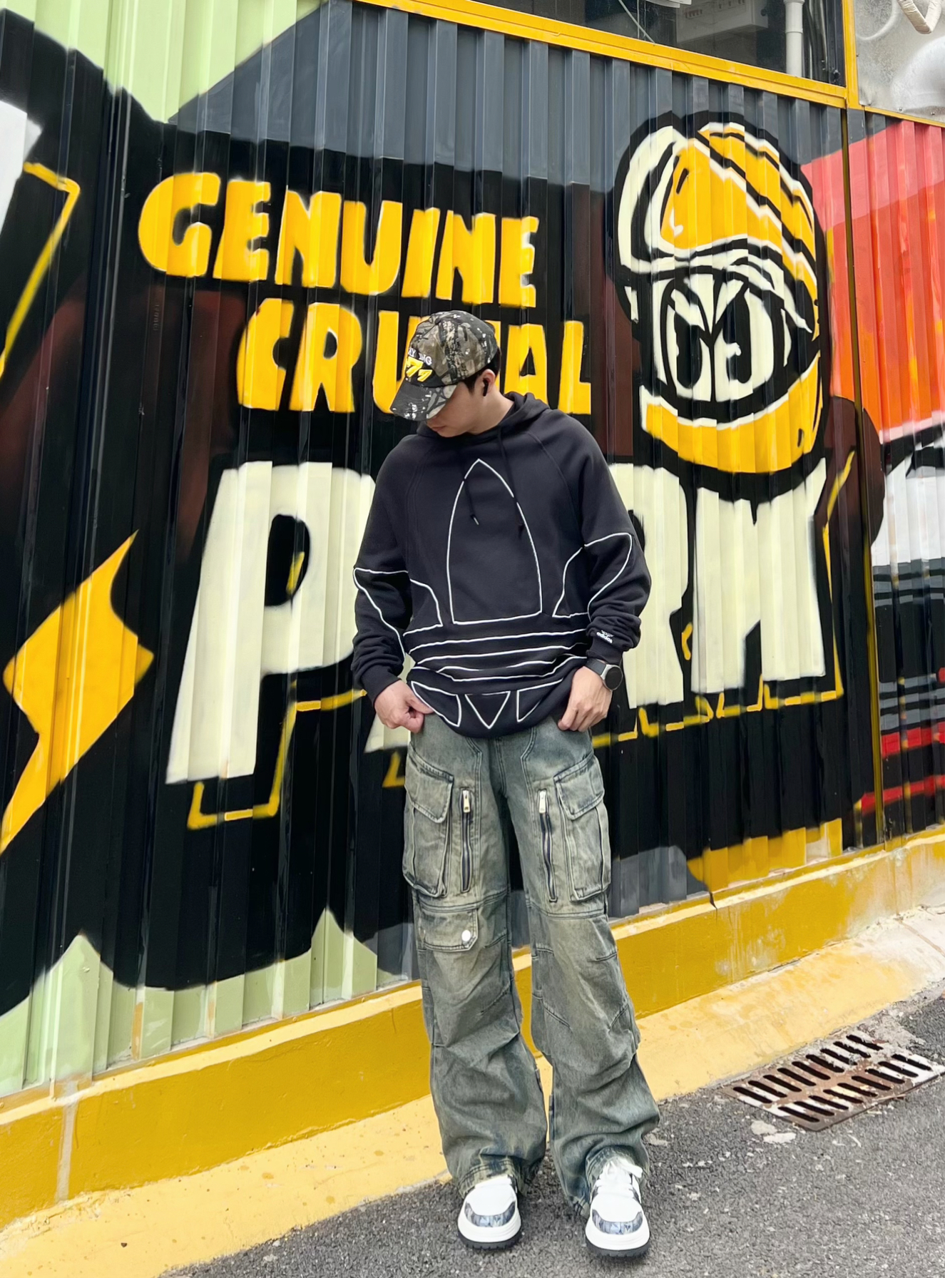 不想在穿搭上费心思,又想穿出潮酷感,这套极简风穿搭直接锁死! 阿迪黑调连帽卫衣,大轮廓线条设计打破基础款的沉闷,打造慵懒随性的氛围感,单穿内搭都好看 水洗做旧工装牛仔裤👖软乎乎的面料不硬挺,日常通勤久坐也不勒,多口袋设计兼顾实用性和造型感,阔腿版型不贴腿,走路带风超有范儿 整套穿搭没有复杂的搭配,上班通勤、周末约会、朋友小聚都能穿,不用动脑的帅气,男生衣柜里一定要有这么一套!