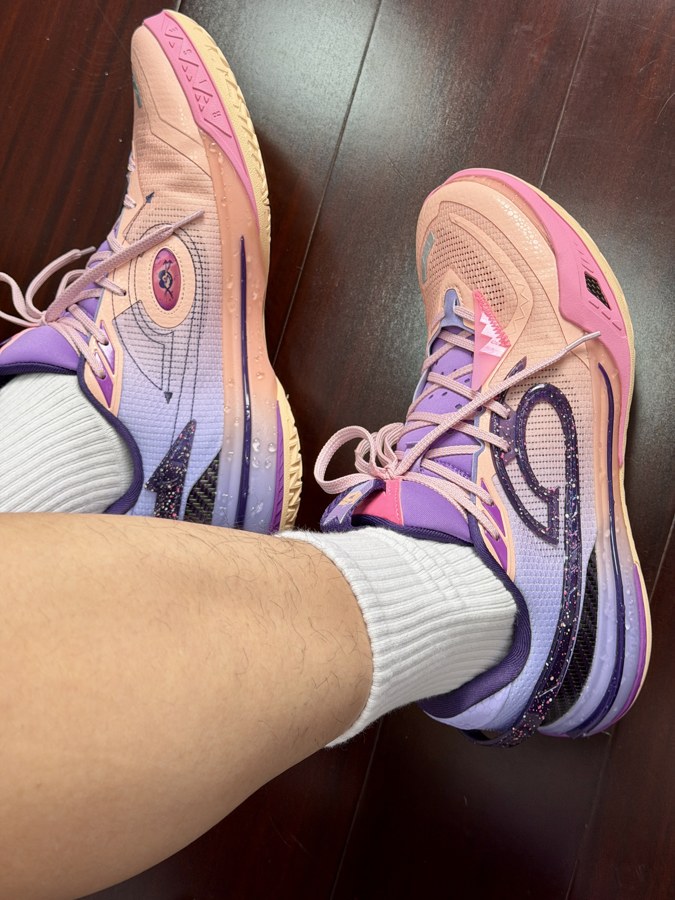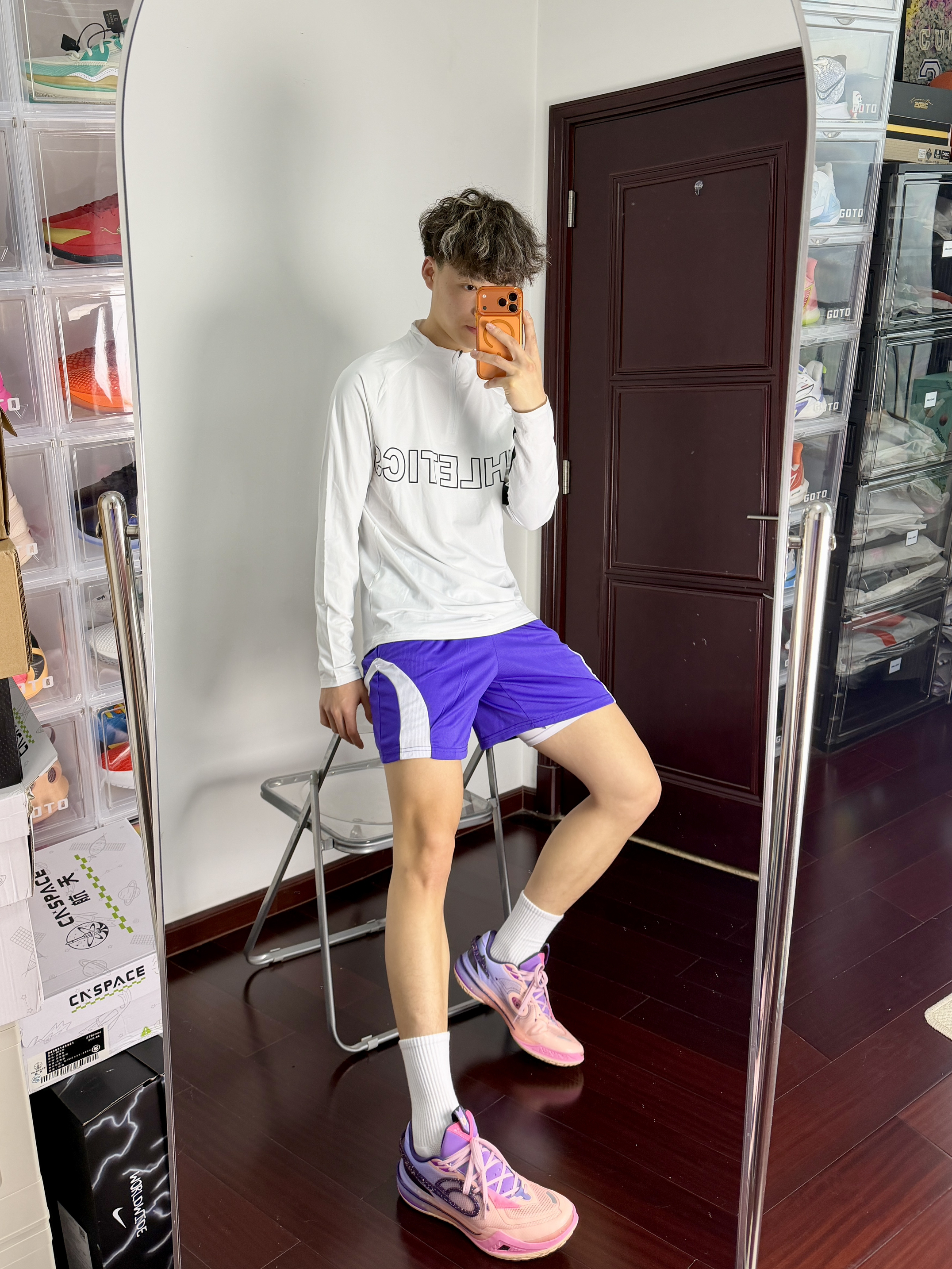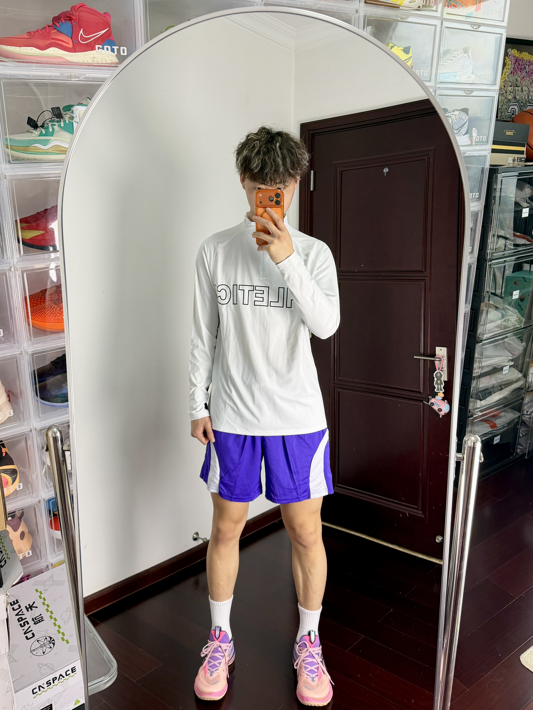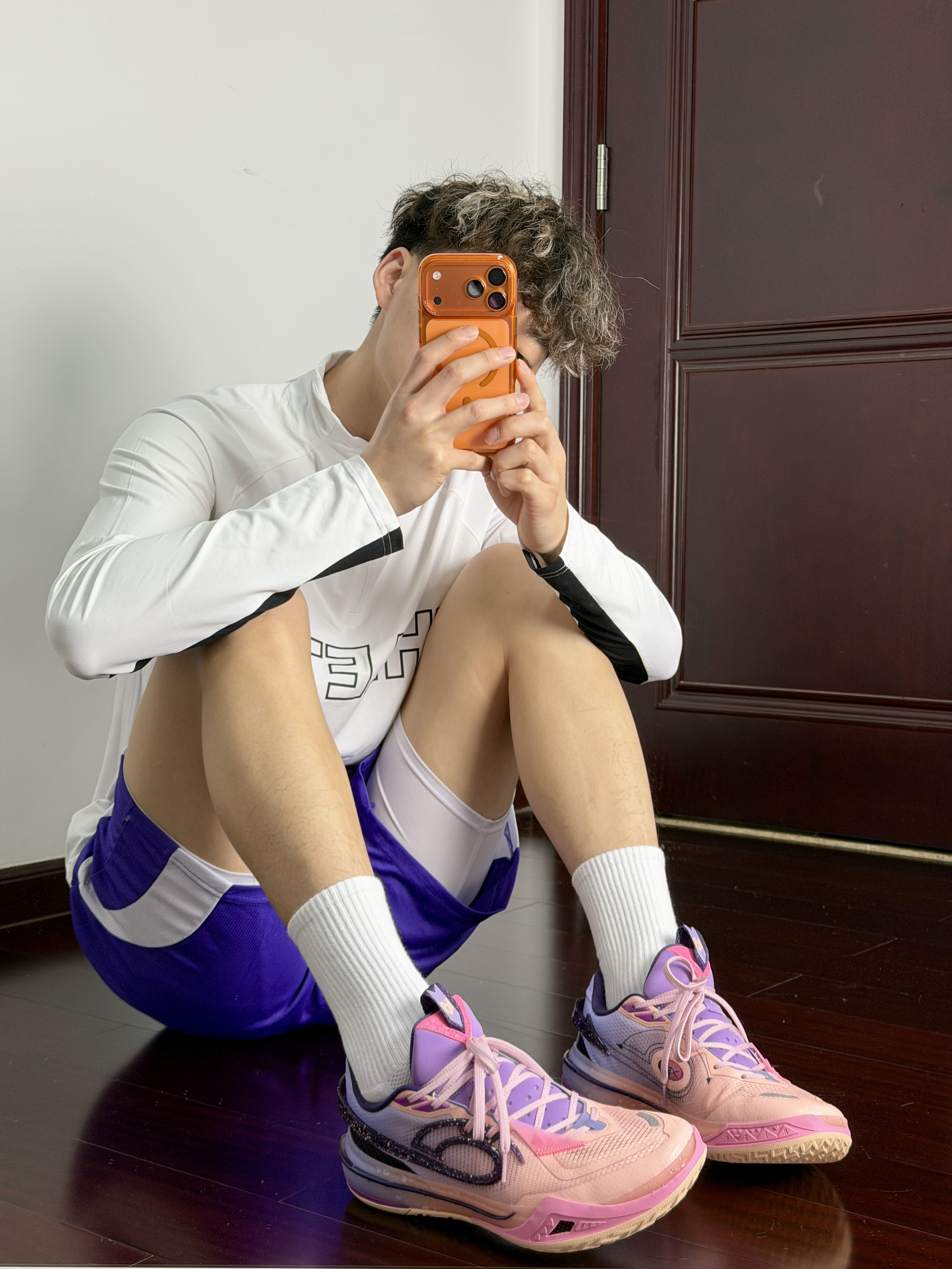 心男生可以不帅但带点紫的韵味穿搭不能不爱呀黑白拉链设计投篮服一看就很帅打球健身穿都蛮棒的再加一条美式紫色短裤跟上脚的粉紫球鞋还蛮搭的够帅也能够满足我的实战需求!