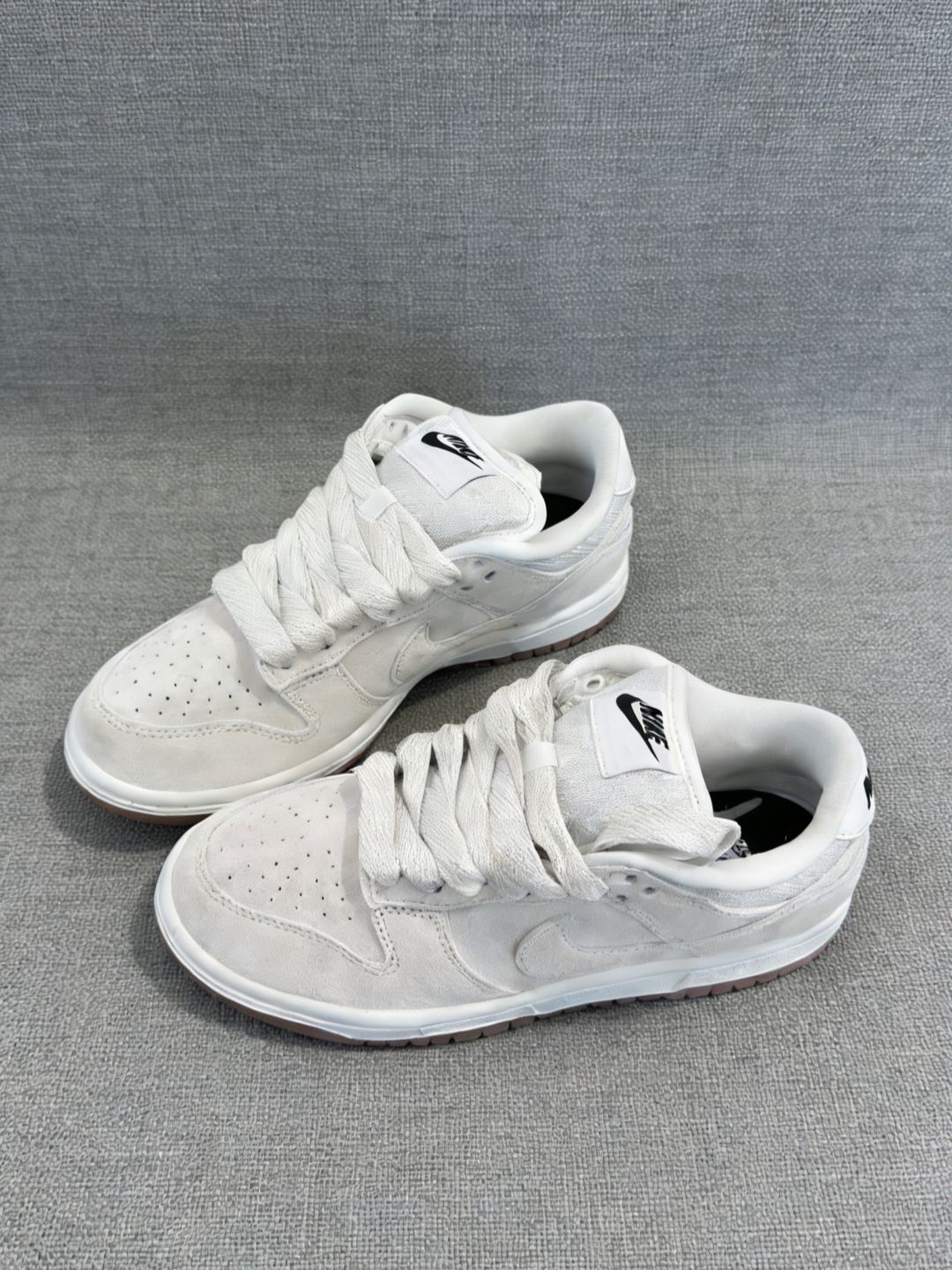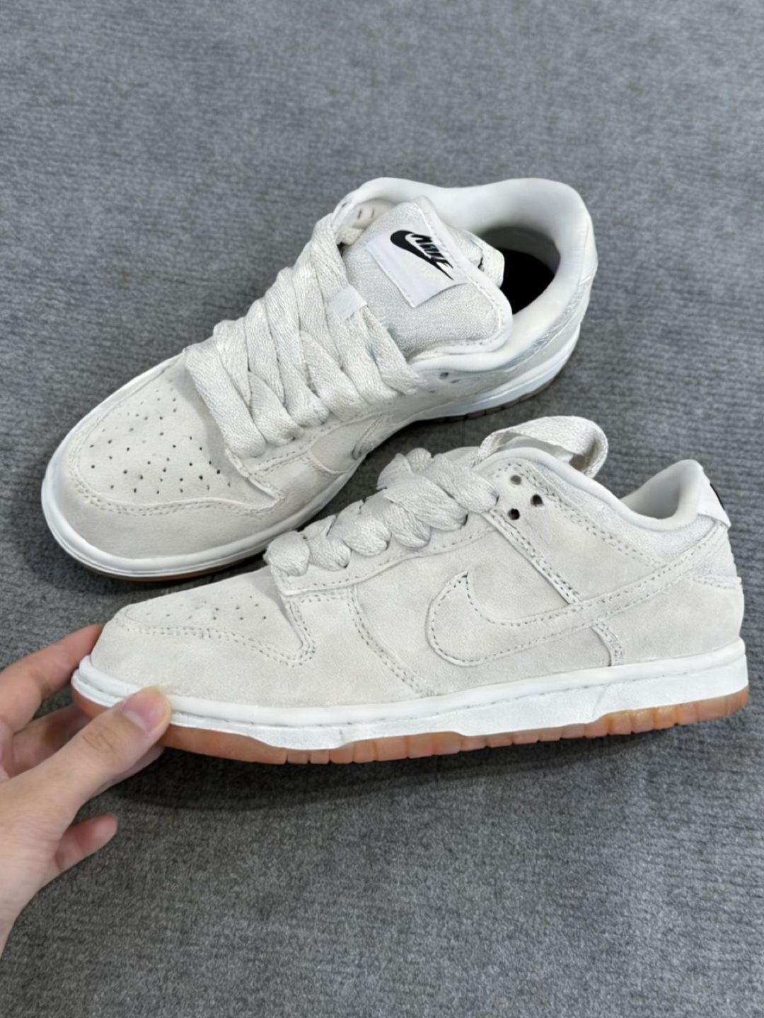 这双象牙白的SB Dunk实物很干净,看着就很高级。薄底设计让脚感很贴地,做动作或者走路都舒服。鞋面皮质挺软,不用太磨合。鞋底纹路很深,抓地力和耐磨性都没问题。随便搭条浅色牛仔或者工装裤都很好看,平时去滑板或者逛街穿它都很合适,清爽又百搭。👟🦴#高颜值dunksb分享 #一双百搭DUNK #春日宝藏运动休闲鞋