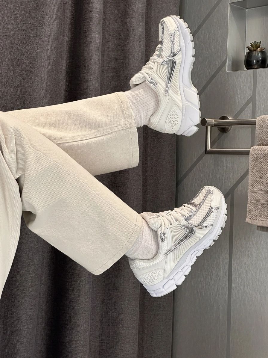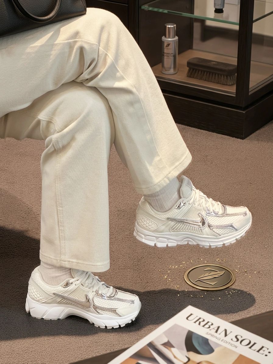 挖到Nike的复古神鞋了!👟 这双Vomero 5白银液态银跑鞋真的长在我审美点上! 🩶清冷高级感拉满:白网面+液态银勾,低调又有未来感,阳光下blingbling的,清冷感直接拉满,搭什么都显干净利落! ✨复古机能风:老爹鞋型自带增高buff,秒变大长腿,网面透气不闷脚,春夏穿也舒服,暴走一天都不累! 👟万能百搭王:配牛仔裤、工装裤、运动裙都绝了,通勤、健身、出街都能穿,懒人穿搭福音! 复古党/...