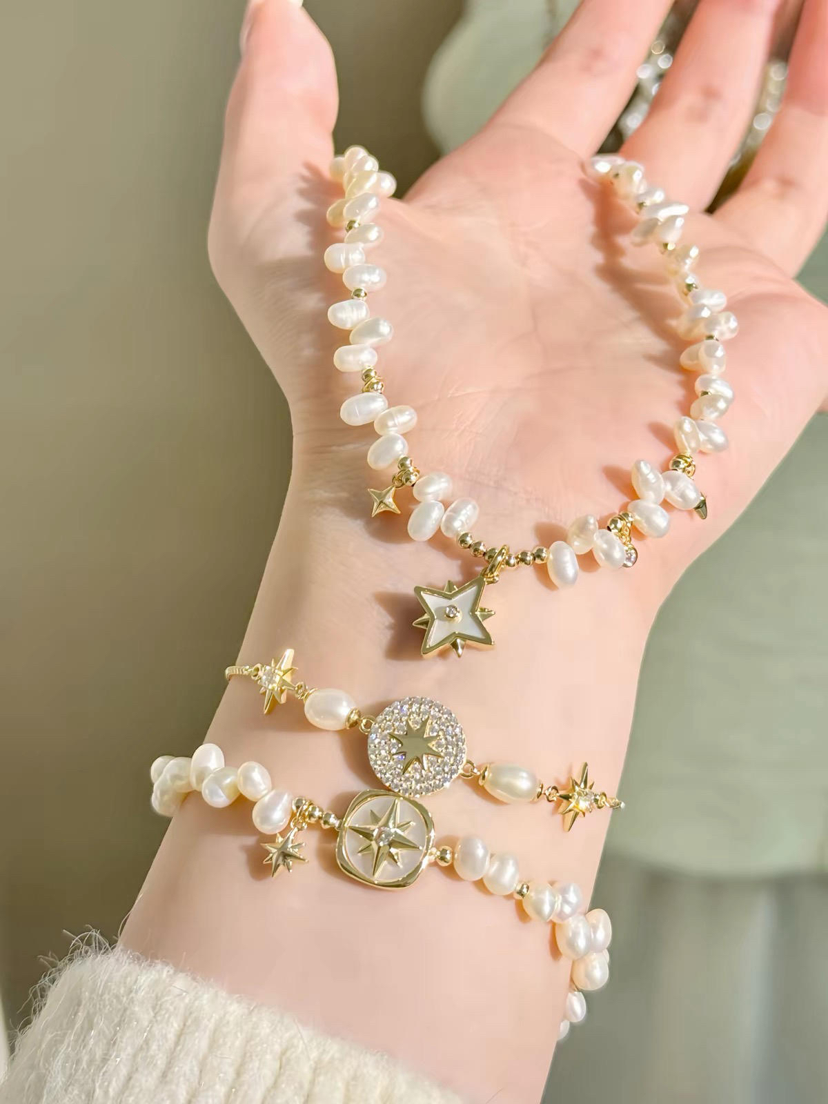 本篇笔记关联了Amber Lollipop/安铂洛利 珍珠米粒贝母手链 AFA47SL24 白色、Amber Lollipop 八芒星珍珠手链 ABL230317005 金色等商品,为用户提供真实的使用体验和购买参考。