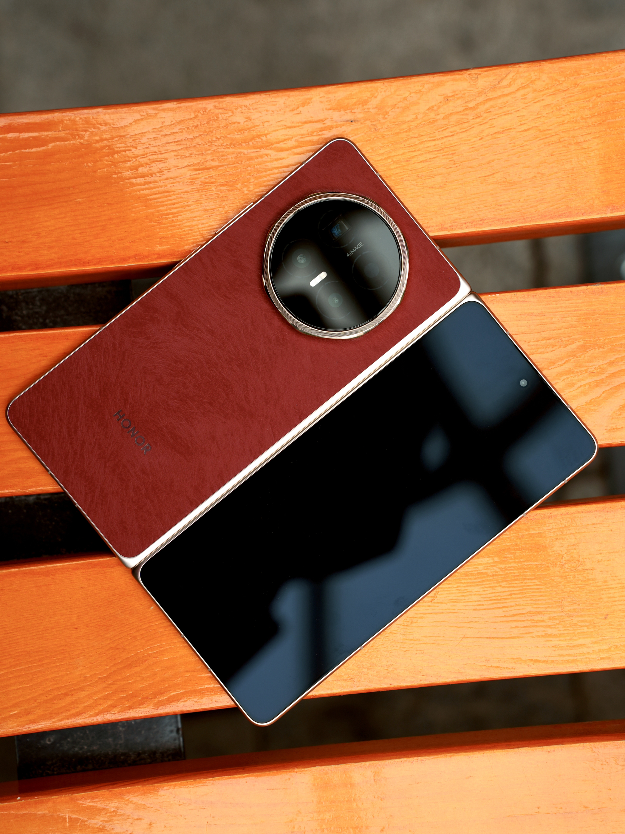 赤兔红,名字一出,便已听见战马的嘶鸣。荣耀Magic V6将这抹传奇色彩握于掌心,不是温吞的朱砂,而是烈焰与热血交织的赤红。折起时,红色在光影下蓄势待发,如赤兔在侧,静若处子;展开瞬间,大屏扑面,仿佛千里江陵一日还,体验如烈马驰骋般酣畅。这不止是一款配色,更是一种“人中吕布,马中赤兔”的进取精神。握紧它,仿佛就握住了那份一往无前的勇气。