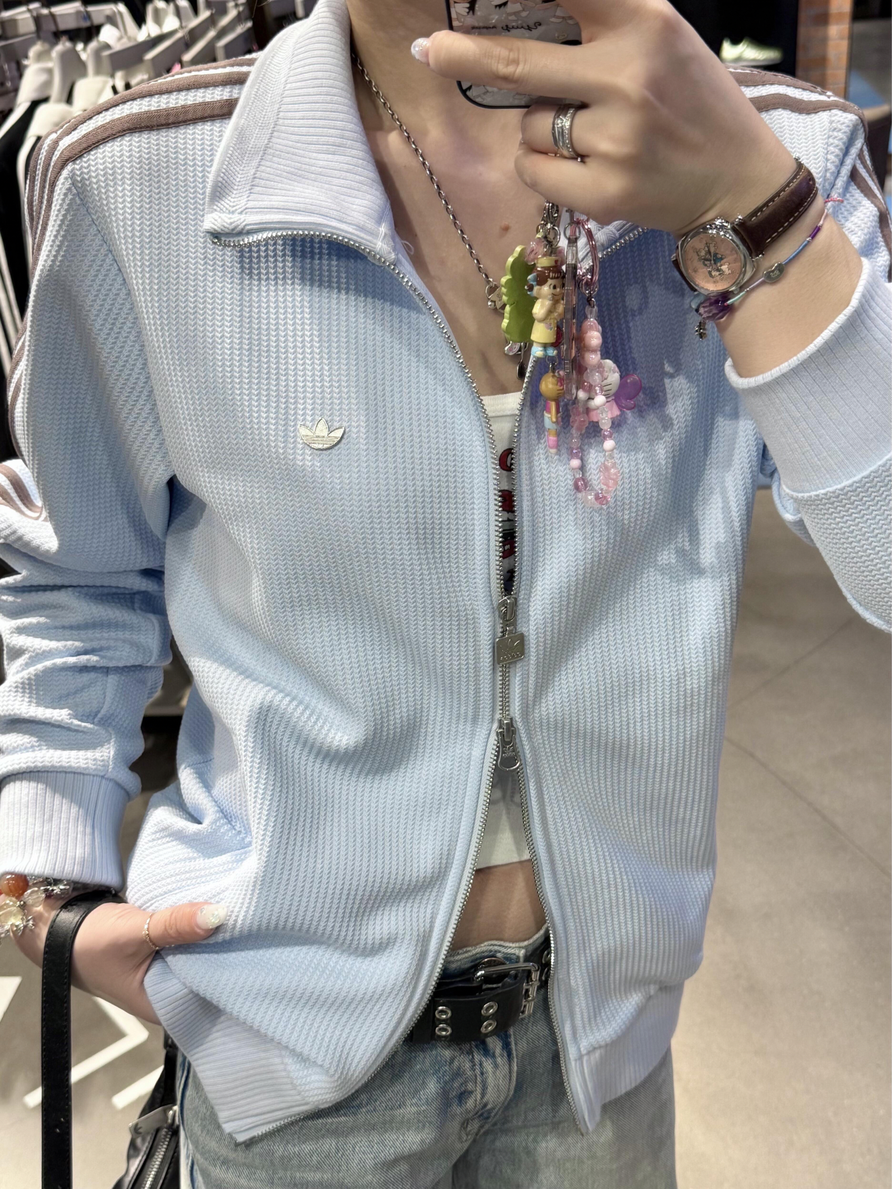 阿迪华夫格外套|鹅黄vs奶蓝 你站哪一队?🌦️ 又被我发现了新款! 立体logo+奶fufu的华夫格纹理~ 奶蓝是清冷感甜妹☔️ 鹅黄是元气小太阳🌤️ 双拉链设计太懂女生的心了! 随随便便搭牛仔裤👖都是韩女! 快问问你的搭子 她喜欢哪一件?💕