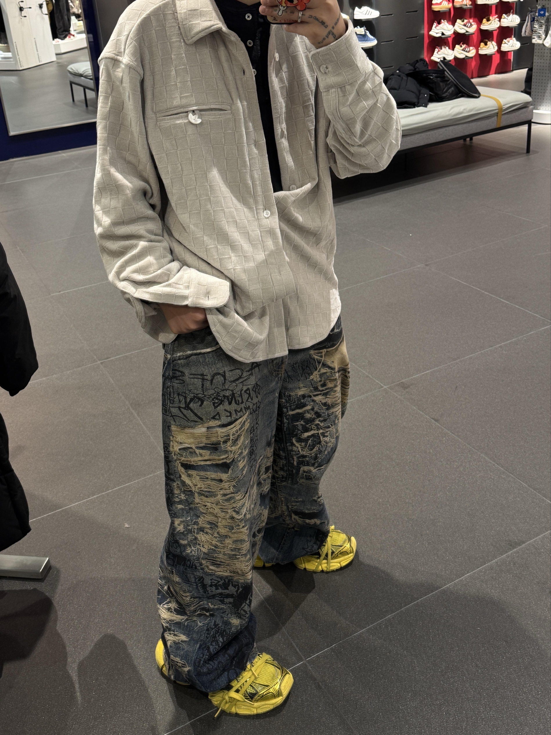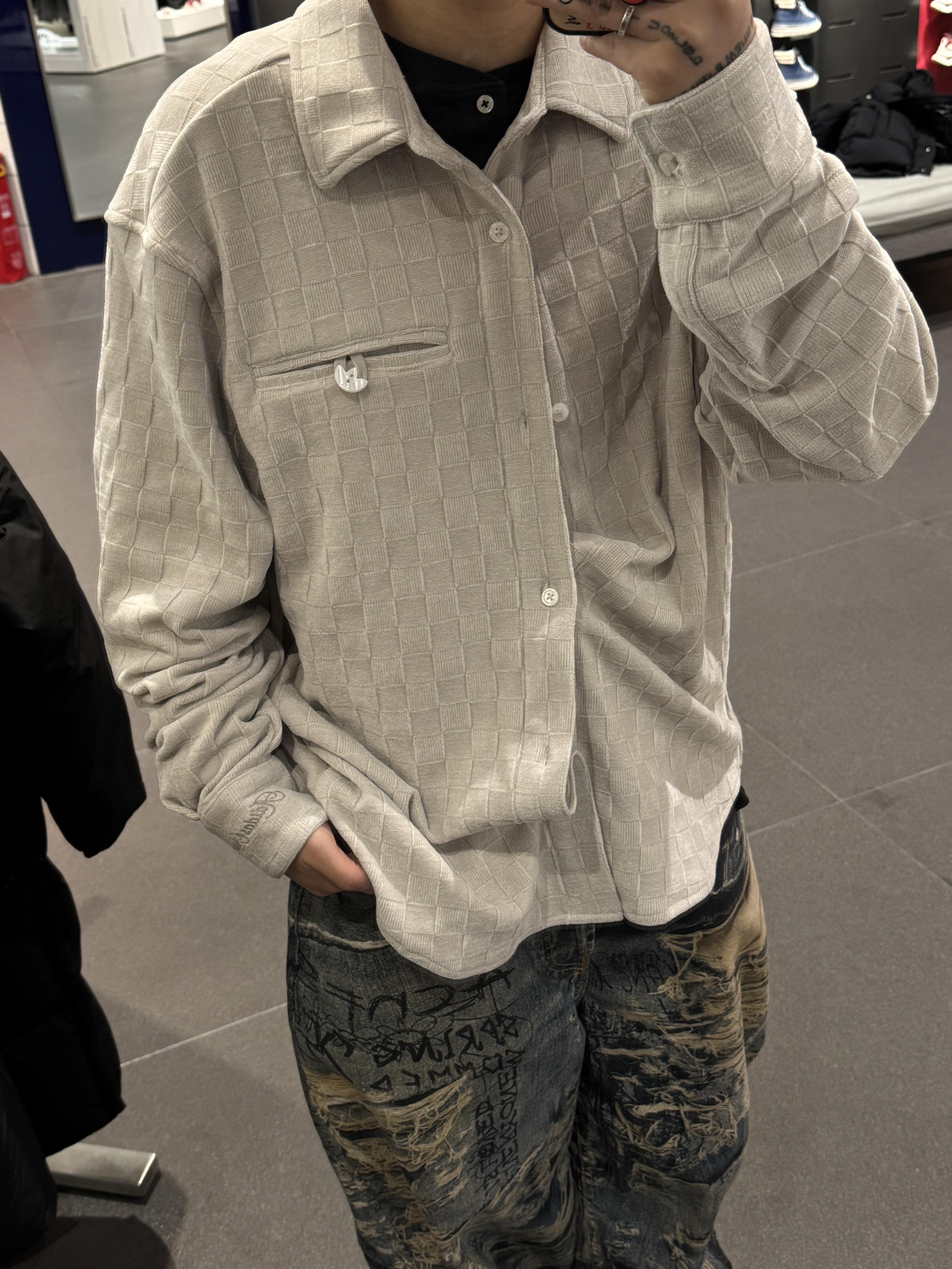 终于遇到一件质感拉满的衬衫了! 面料不是普通的单薄款,而是自带立体棋盘格肌理, 摸上去软糯又有挺度,上身瞬间摆脱路人感。 浅灰色调自带高级滤镜,不管是单穿还是内搭都很出彩, 袖口的小刺绣细节暗藏小心机,低调又精致。 下半身搭配满印涂鸦牛仔裤,用做旧的随性中和衬衫的利落, 一静一动,把松弛感和街头感完美平衡。 衬衫控真的可以闭眼冲,这才是春天该有的穿搭质感!