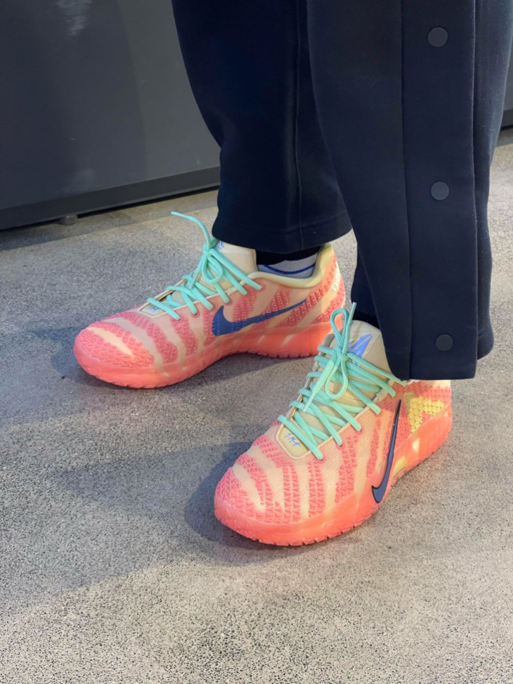 活力满满的橙红配色,上脚自带高光,球场日常都吸睛,亮眼不浮夸,辨识度直接拉满。中底采用ZoomX碎料叠加全掌ZoomX泡棉,轻量化脚感搭配超强回弹,落地缓震扎实,启动响应迅猛,轻盈又强韧,长时间实战也不易疲惫。兼顾颜值与性能,不管是突破、变向还是弹跳都能稳稳支撑,日常出街同样百搭有型,一双搞定球场与街头,真正的全能实战篮球鞋。