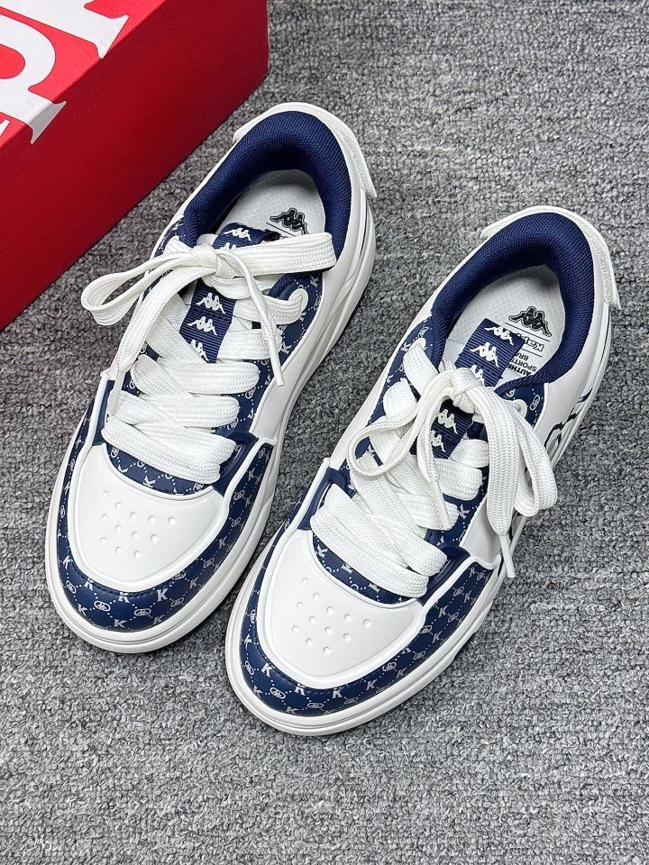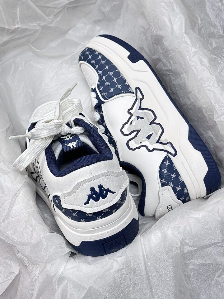 挖到Kappa家宝藏板鞋了!👟 这双藏青老花拼色板鞋真的长在我审美点上! 💙复古氛围感拉满:经典白蓝撞色+老花暗纹,低调又有细节,通勤/上学/约会都能穿,越看越耐看! 📸颜值抗打:侧面大背标超吸睛,鞋型利落不臃肿,上脚秒变街头潮人,拍照巨出片! ✨万能百搭王:配牛仔裤、运动裤、百褶裙都好看,春夏秋三季通吃,懒人穿搭福音! 脚感软乎乎的,暴走一天都不累,学生党/打工人直接闭眼入!