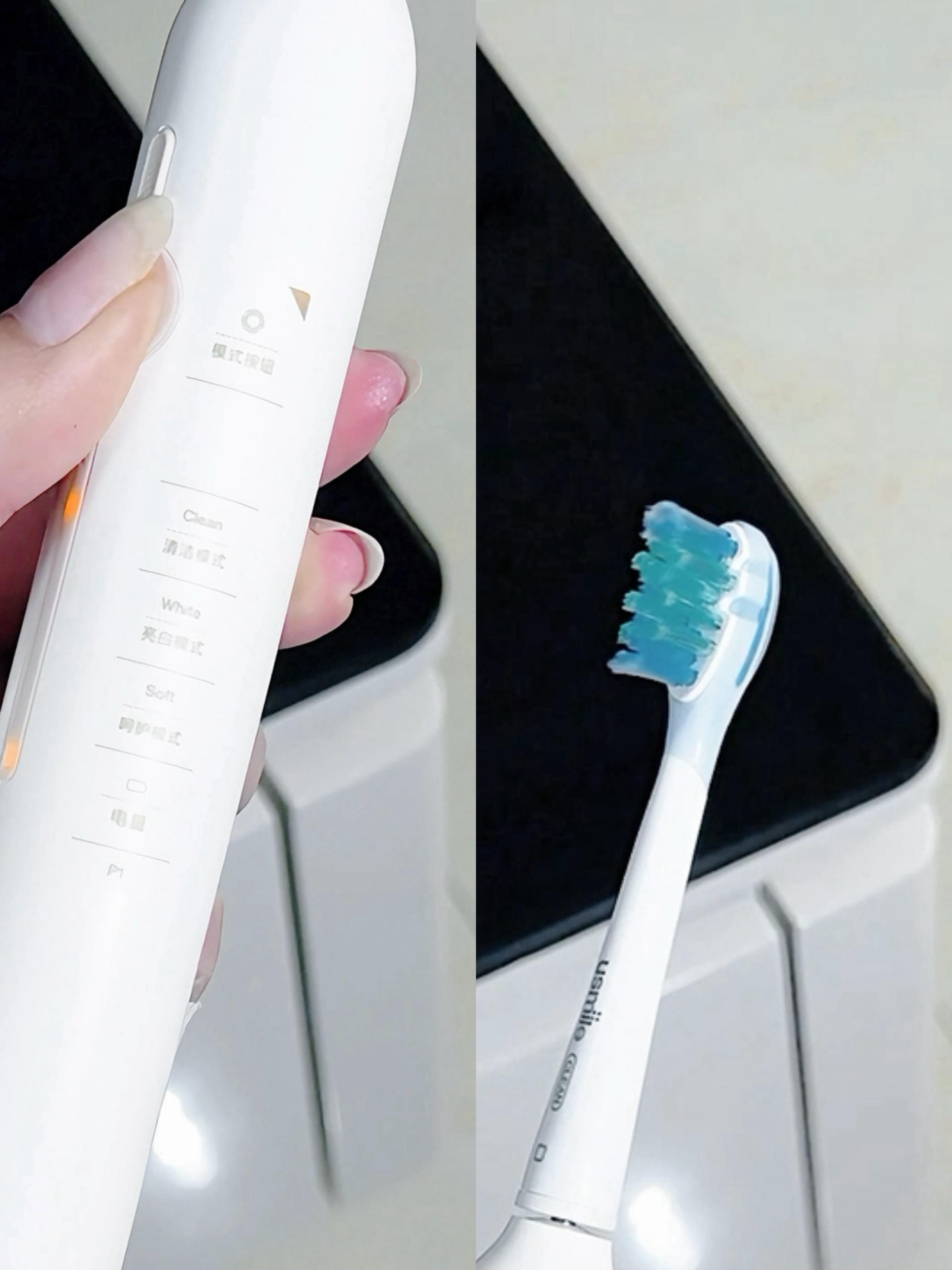 是谁到现在还在说电动牙刷是智商税… 我求你真的自己用过再来发表评论吧! 作为一个从高中就开始用电动牙刷的人 到现在步入社会开始工作 说实话! 对于每天早起要感觉去上班的牛马人来说 真的很难做到对着镜子认真刷牙2-3分钟 但现在科技改变生活 用这款usmile电动牙刷能让你轻松实现“无脑”刷牙 礼盒内配备两个牙刷替换头 够我用半年的了 减震款刷头能够减少打牙麻牙 对我这种牙齿敏感星人来说简直不要太友...