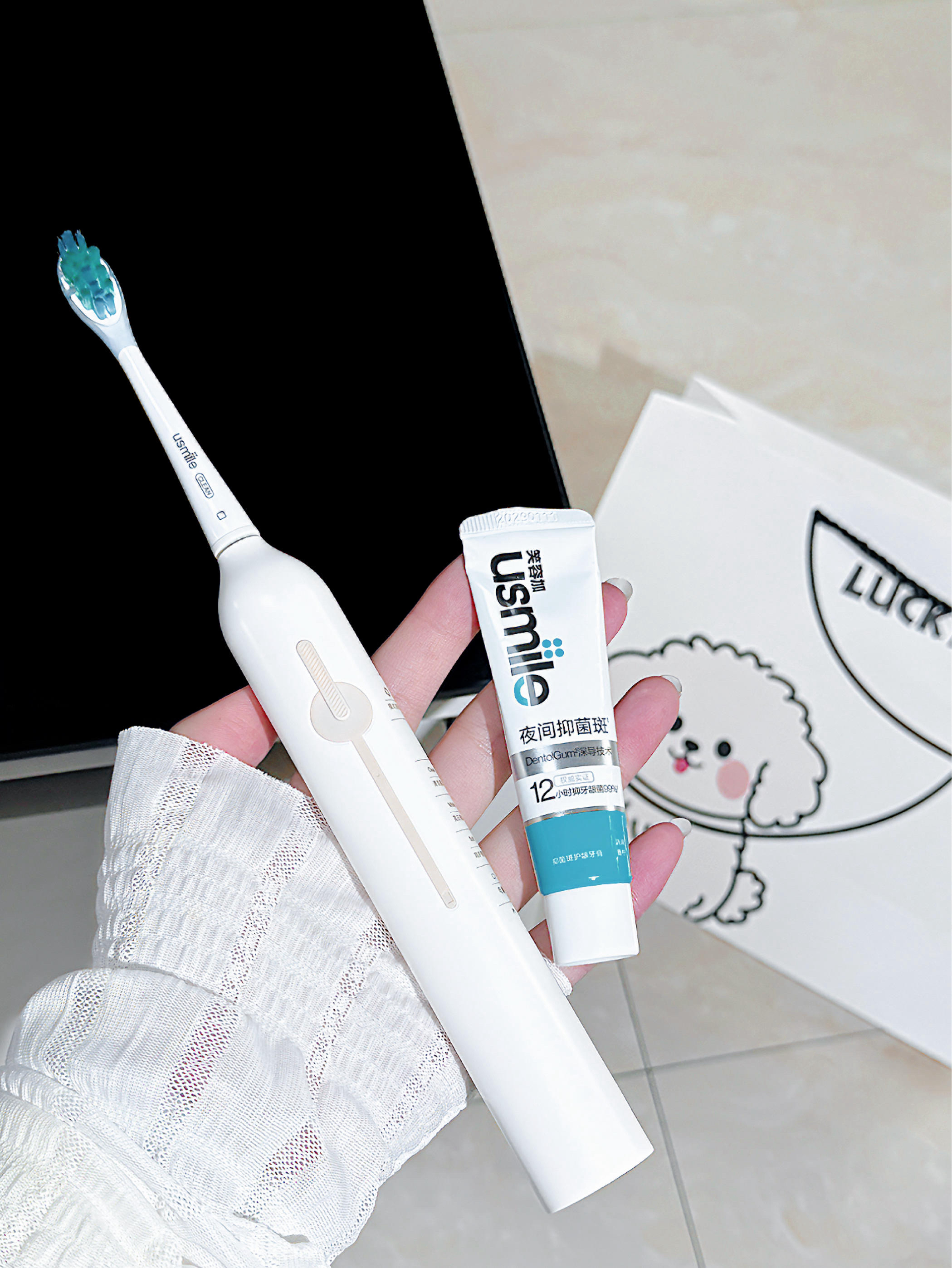 本篇笔记关联了usmile/笑容加 卓效清洁口腔牙膏 去黄去渍去口臭护牙龈含氟 薄冰海洋、usmile P20 成人款 电动牙刷 牙龈护理 广角扫刷 晨雾白【刷头*2】等商品,为用户提供真实的使用体验和购买参考。