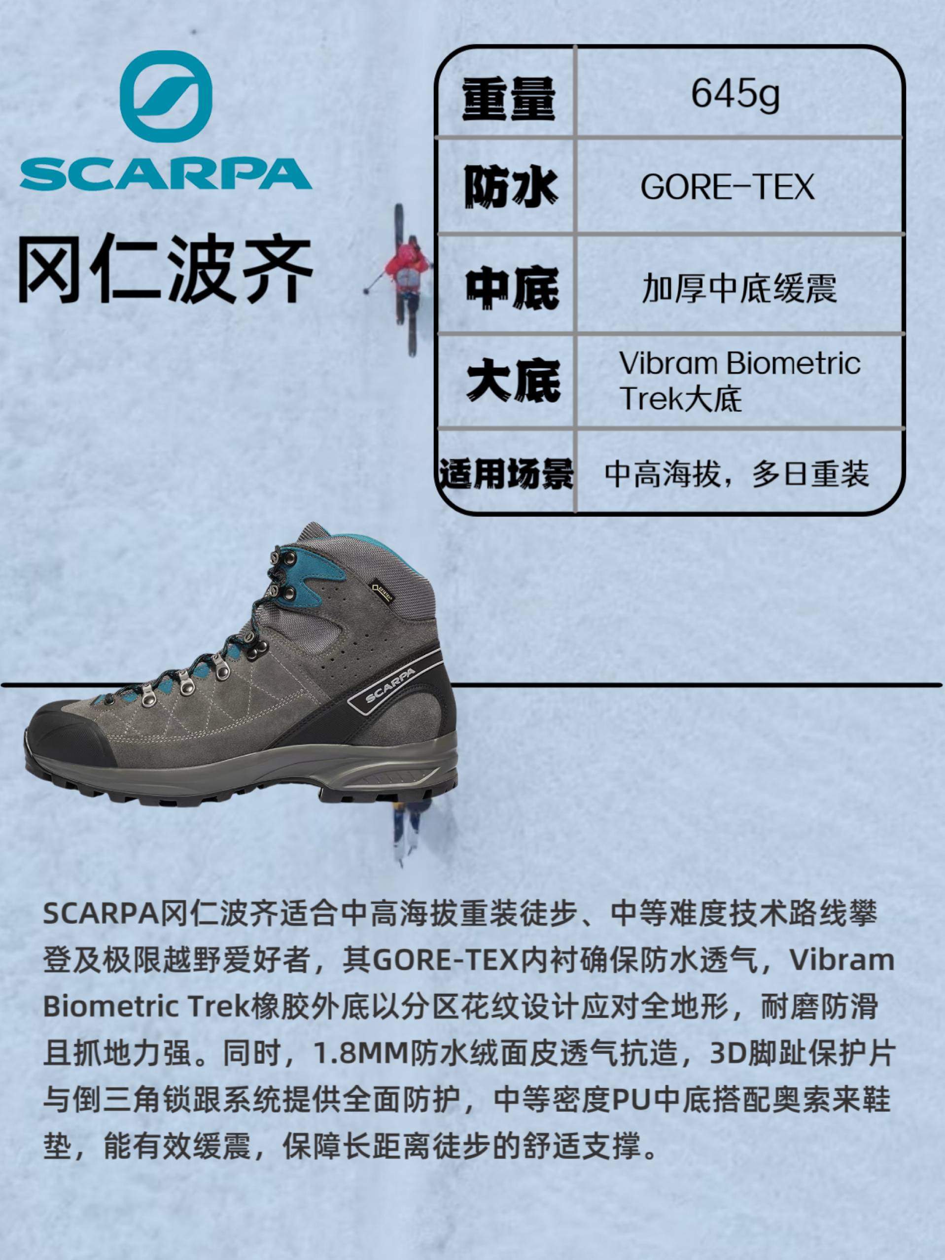 分享走出来的真实体验 每一双都是同级别里的实力派 🥾SCARPA冈仁波齐 经典款不多说 中高海拔重装+简单技术路线都能上 Vibram Biometric Trek大底分区花纹 干湿地面都稳 1.8MM防水绒面皮透气抗造 3D脚趾保护片+倒三角锁跟 奥索来鞋垫缓震在线 🥾LOWA逆行者4.0 外观确实不如网红款吸睛 但欧美测评常年霸榜不是没道理 DYNAPU分区中底很能打 后跟缓震前掌回弹分工明确...