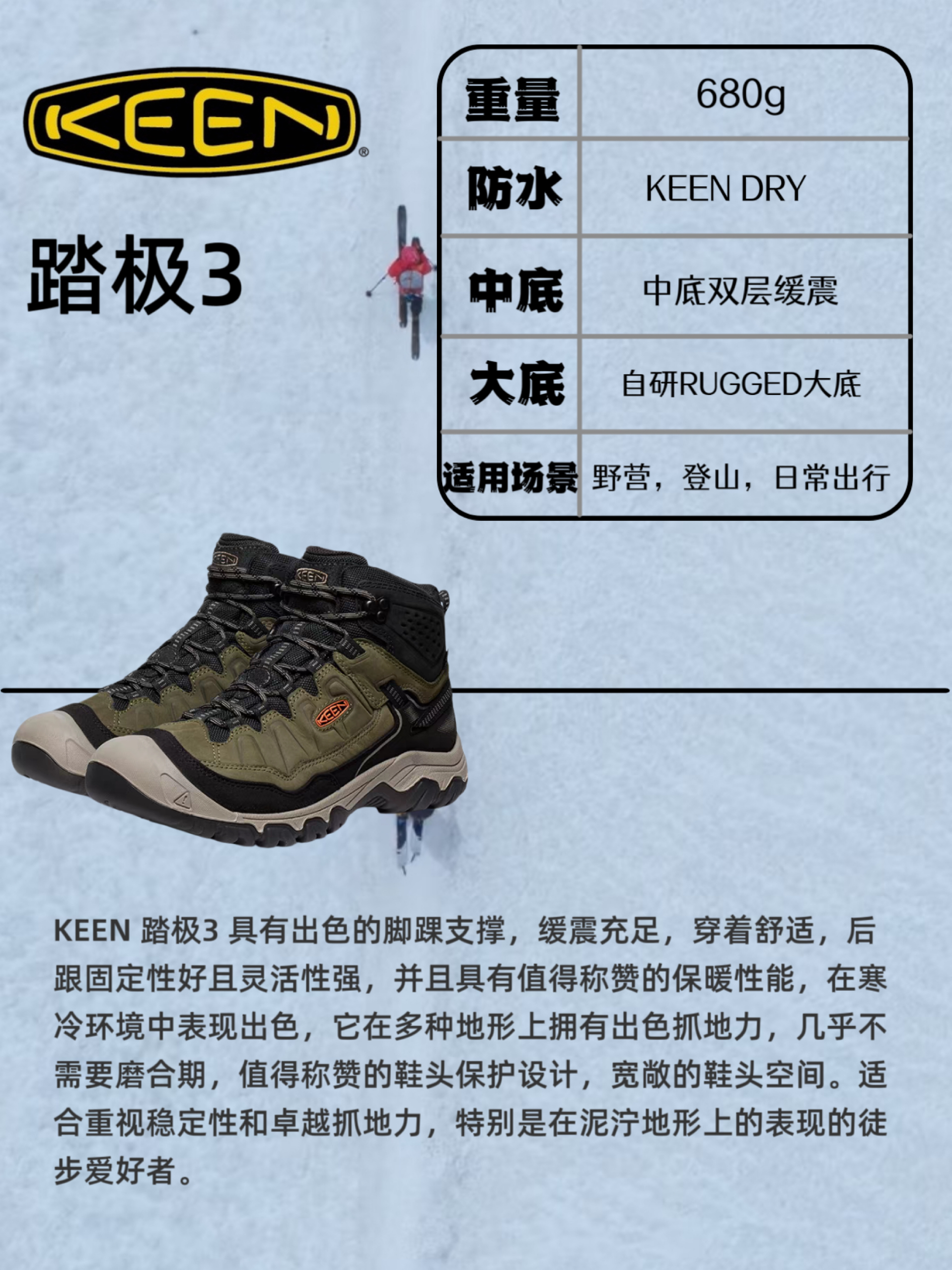 本篇笔记关联了SCARPA 冈仁波齐 零重力 减震耐磨 舒适透气 防滑防水 户外鞋 徒步鞋 钛灰拼蓝、LOWA RENEGADE 逆行者4 户外鞋 徒步鞋 防滑耐磨防水 深灰色/黑色、Kailas/凯乐石 MT5-3 GTX MID 中帮 防水 抓地 舒适缓震 防滑 织物 户外鞋 登山徒步鞋 砂陶棕等商品,为用户提供真实的使用体验和购买参考。