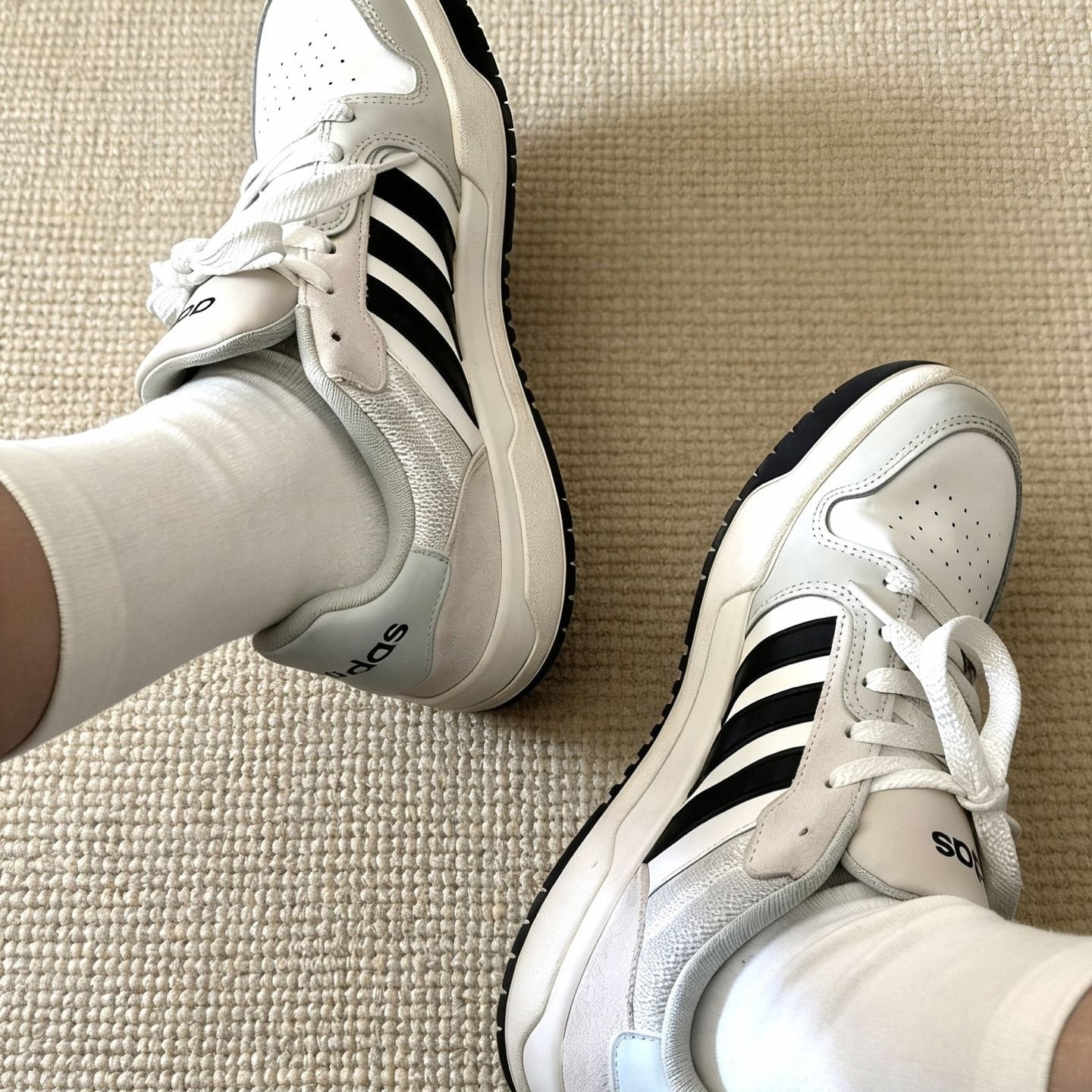不是我说这双和早春穿搭也太适配啦,是那种越看越顺眼的类型 白灰拼色加三条黑杠,经又不张扬,配牛仔裤、休闲裤 和运动裤都很和谐 皮面好打理,鞋型偏利落,日常走路、通勤都挺舒服 没有花里胡哨的设计,就是一双让人放心的基础款,适合喜欢简约风格的人