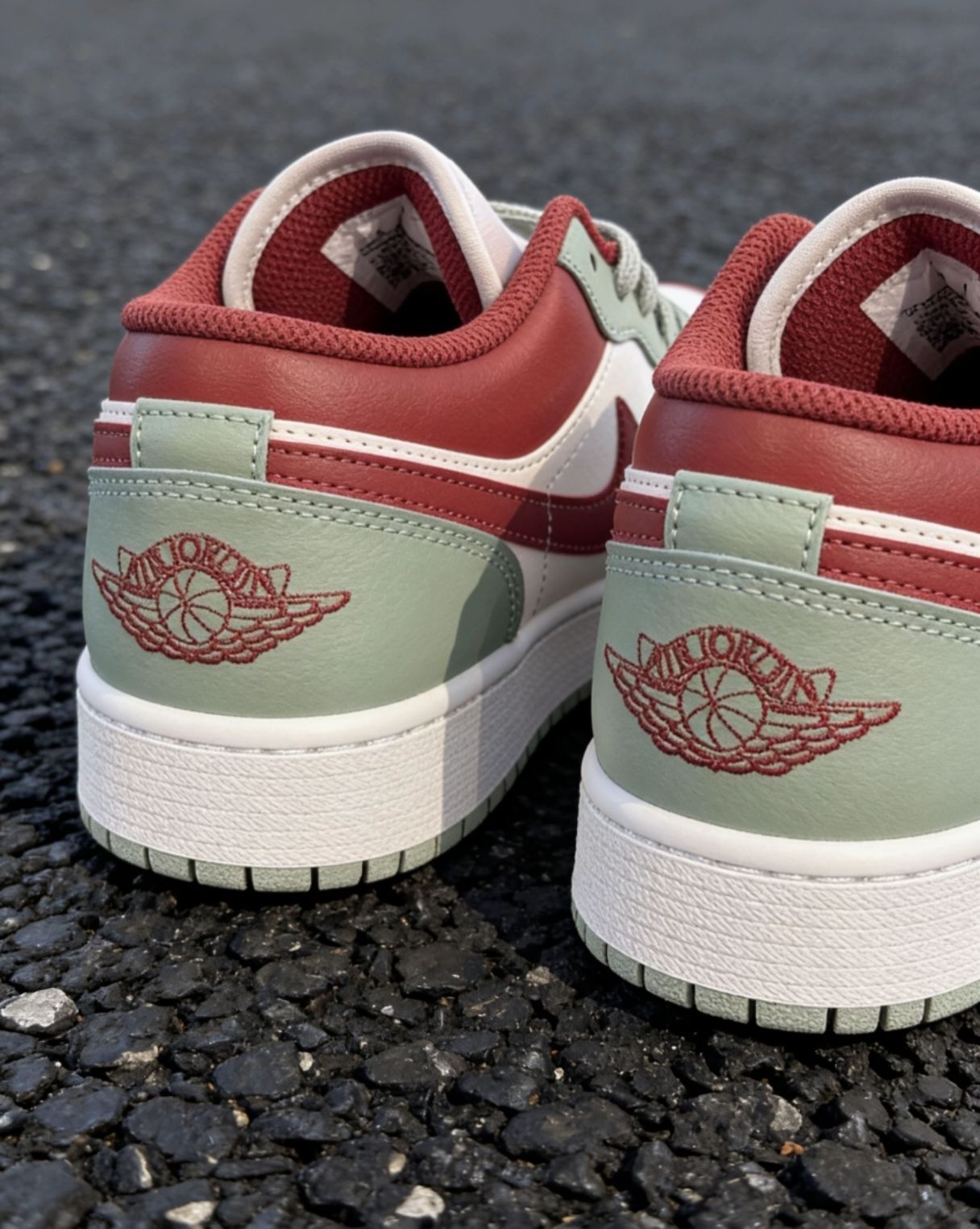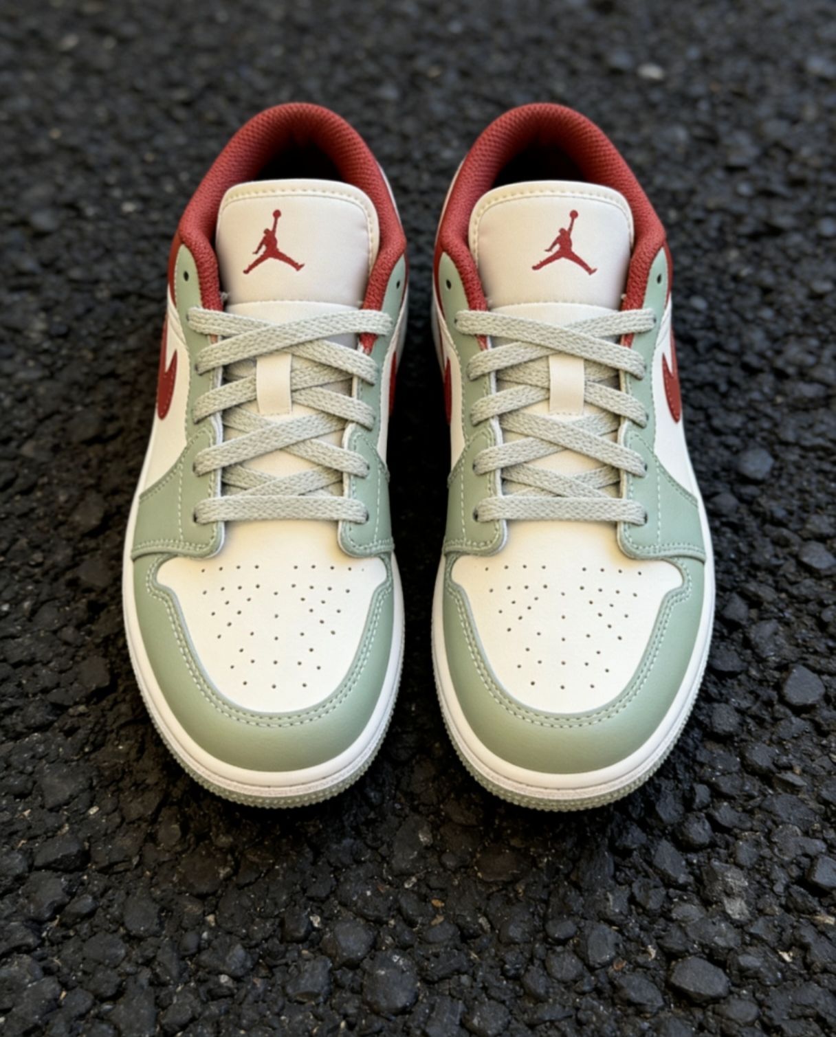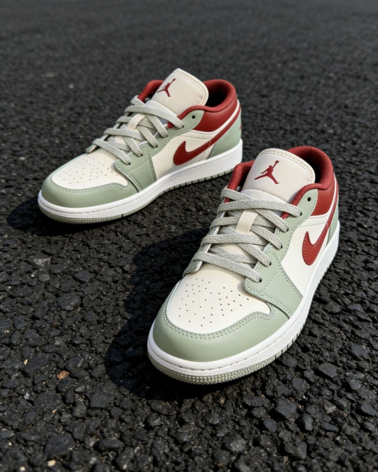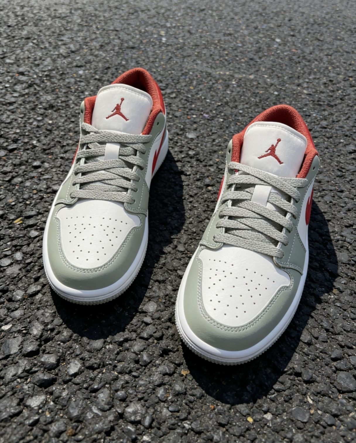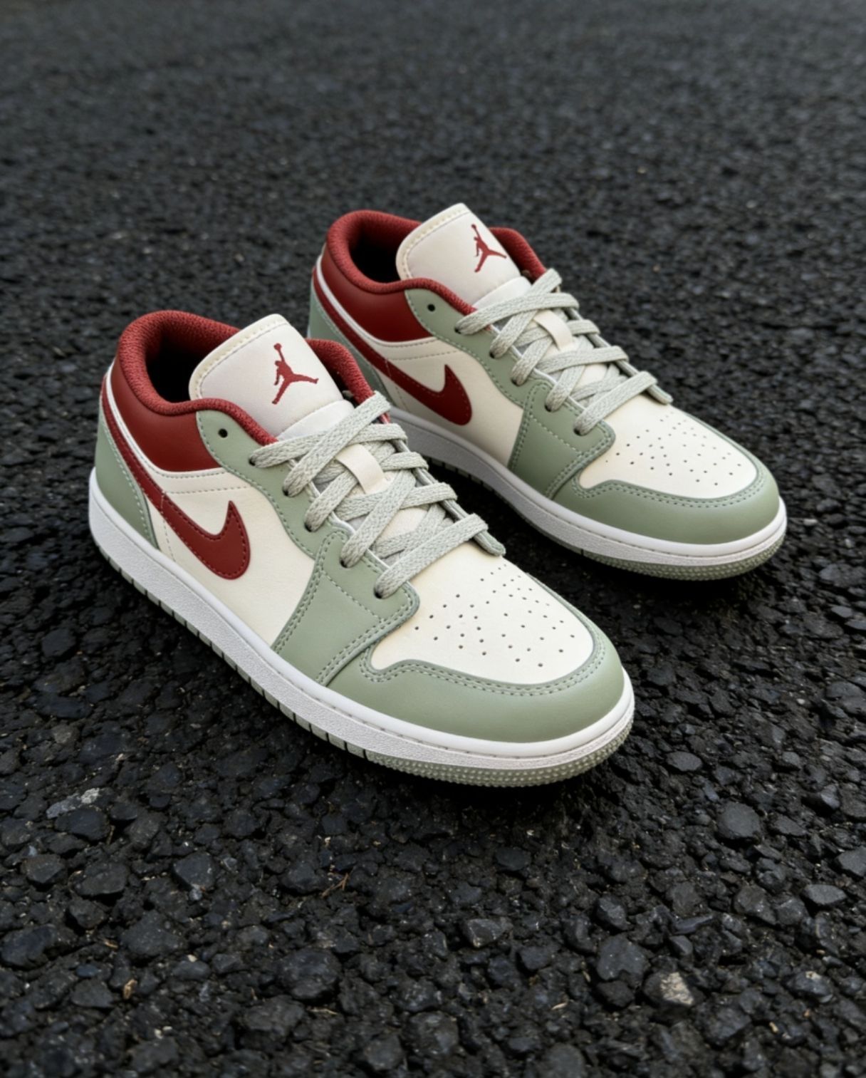 👟春天鞋柜必入的百搭神鞋! AJ1 Low 经典低帮,上脚直接拉高穿搭质感~ 灰绿红撞色高级又耐看,不挑穿搭不挑人✨ ✅头层皮革质感拉满,做工工整细节到位 ✅鞋舌柔软不磨脚,日常走路久穿不累 ✅配卫裤/牛仔裤/工装裤都巨好看 松弛感+复古腔调一双搞定,出街超上镜📸 春夏穿它清爽又有型,闭眼入不亏!