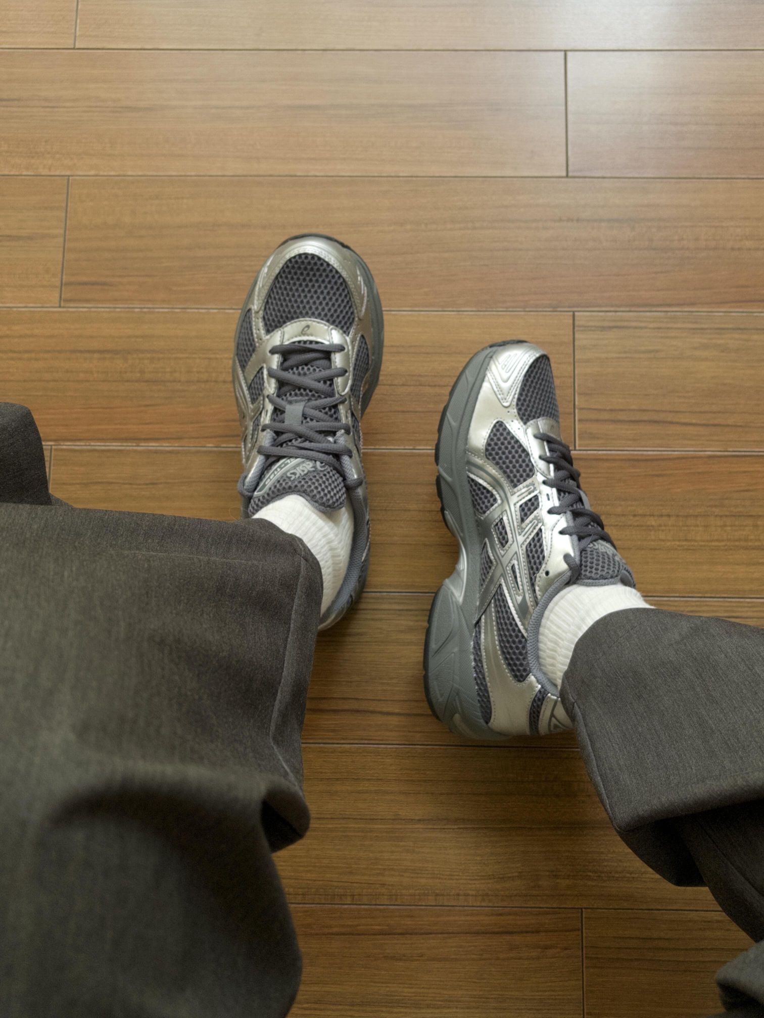 经典的网面拼接金属银质感的鞋身,搭配藏蓝色的细节点缀,满满的千禧年复古风,不管是搭工装裤还是阔腿牛仔裤,都能穿出街头潮人那味儿,随手拍都是胶片感大片~ 上脚的脚感也完全超出预期,GEL缓震胶的中底踩起来软软弹弹的,跑跳的时候能明显感觉到减震效果,日常通勤或者散步穿,走再多路都不觉得累。鞋身的网面透气性超赞,就算夏天穿也不会闷脚,鞋型还很贴合脚型,包裹感满分。 细节处的亚瑟士logo和线条设计...
