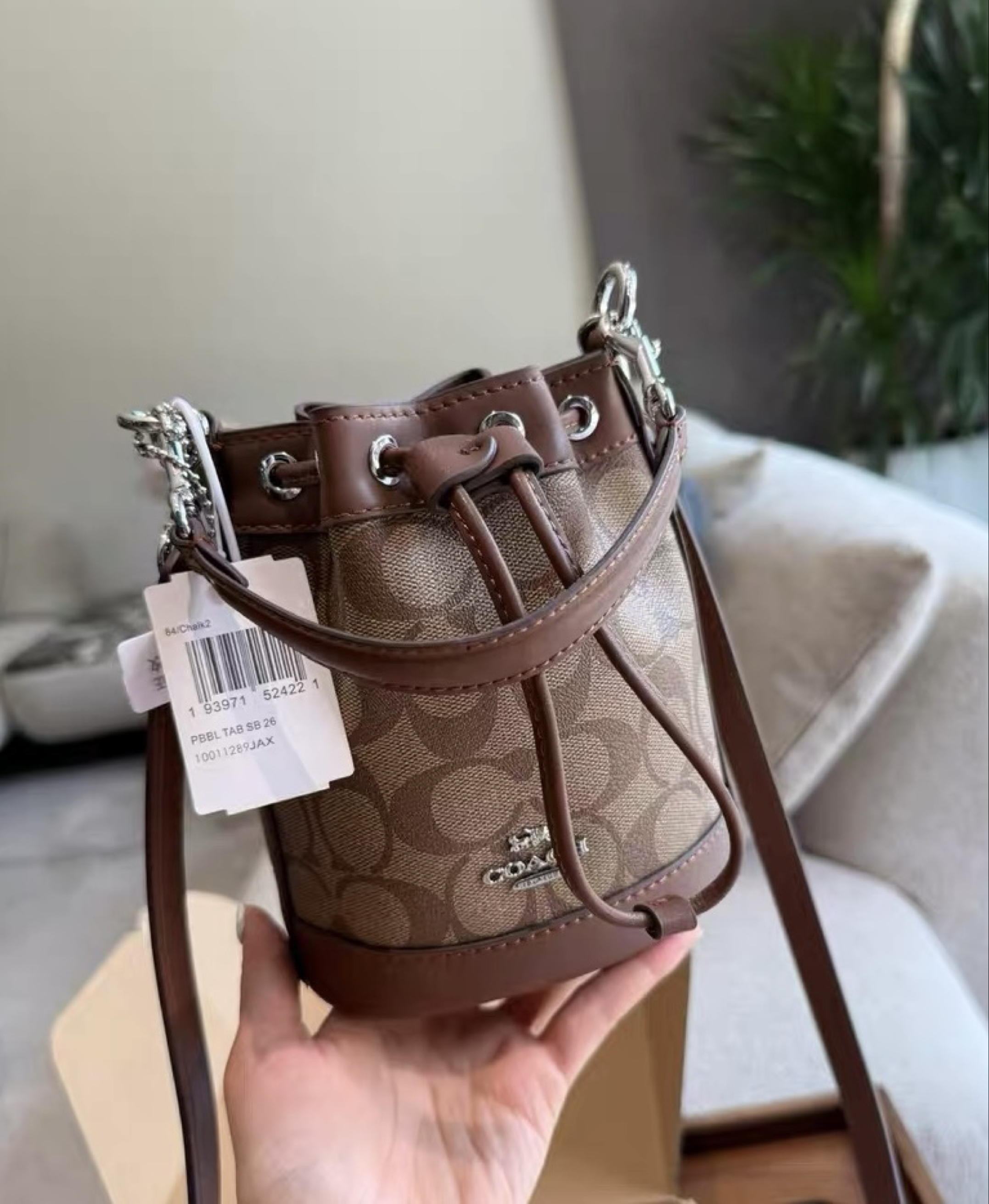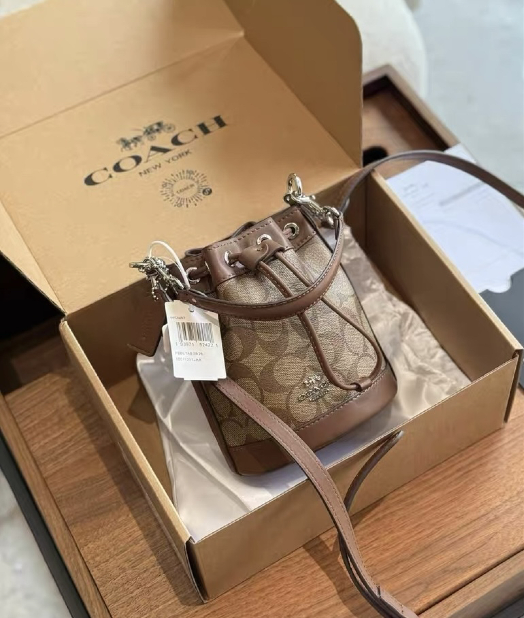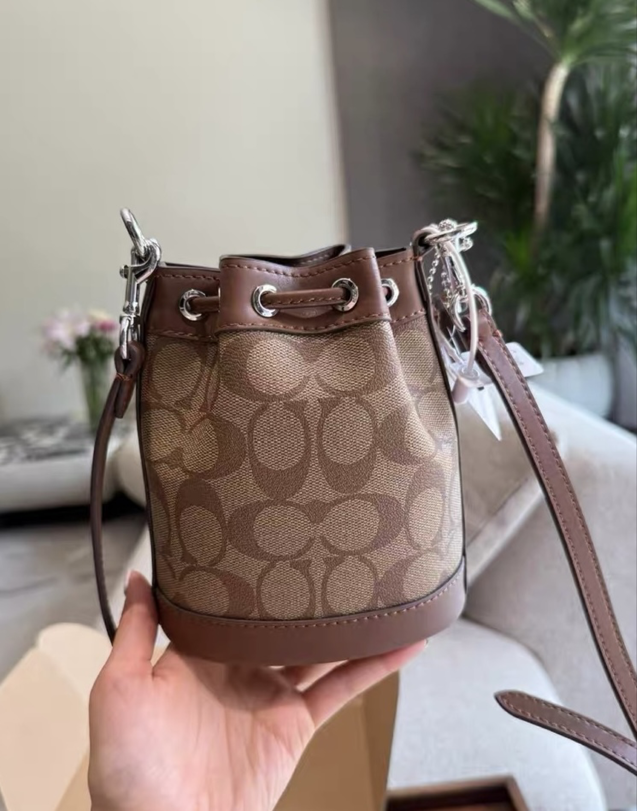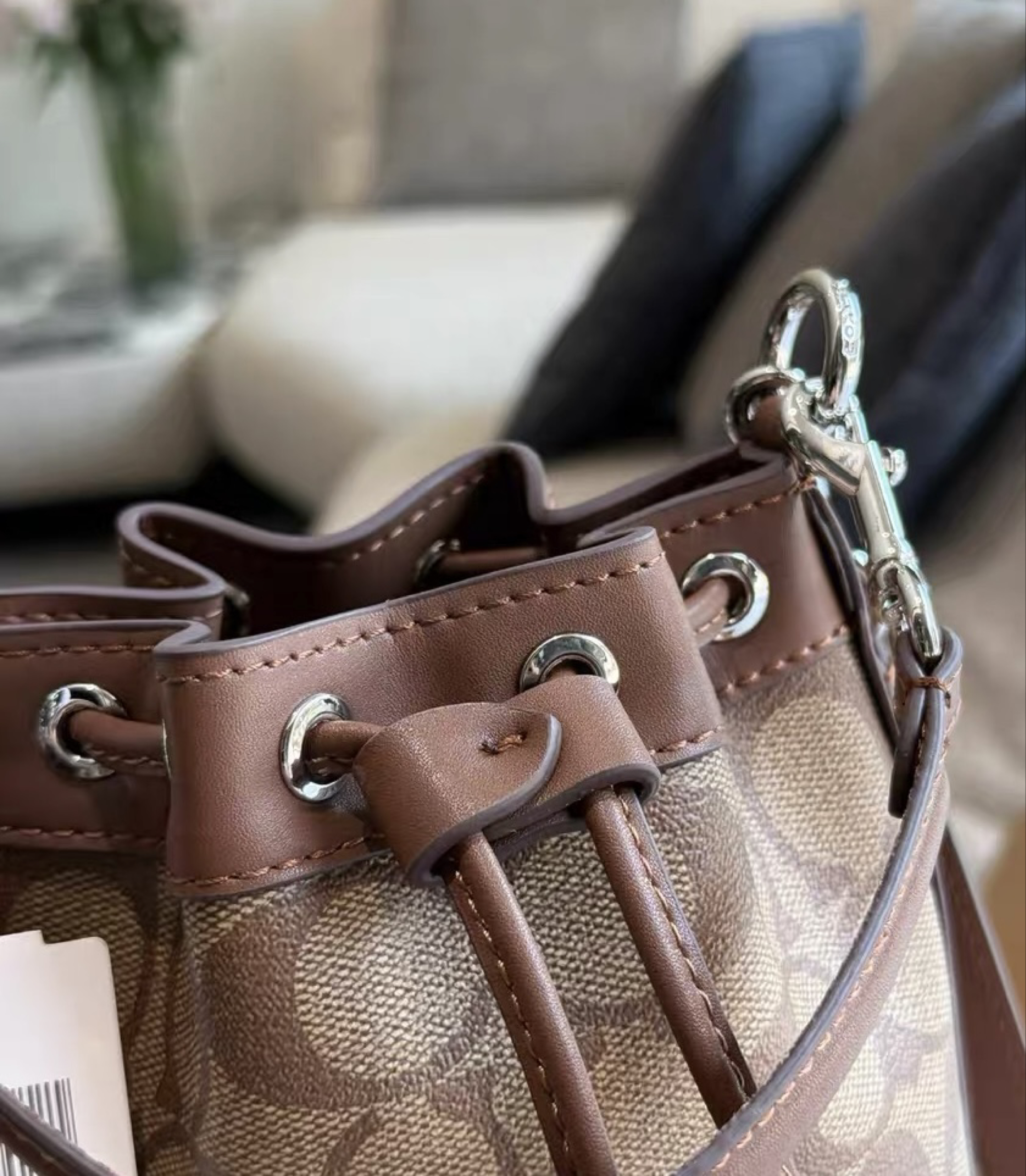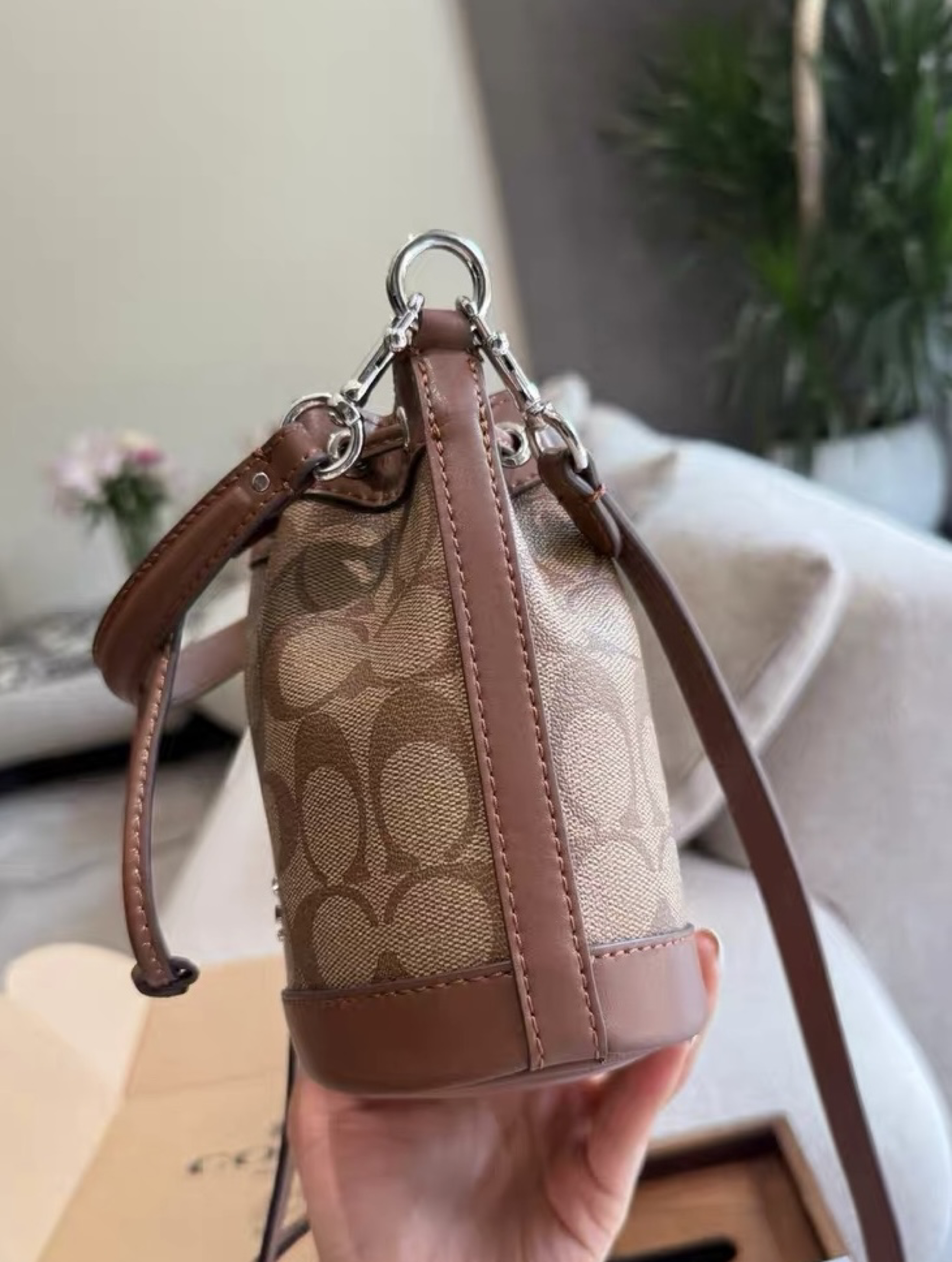 本篇笔记关联了Coach Dempsey 迷你 经典复古老花印花品牌徽标抽绳开合PVC配皮水桶包单肩手提斜挎包 棕色等商品,为用户提供真实的使用体验和购买参考。