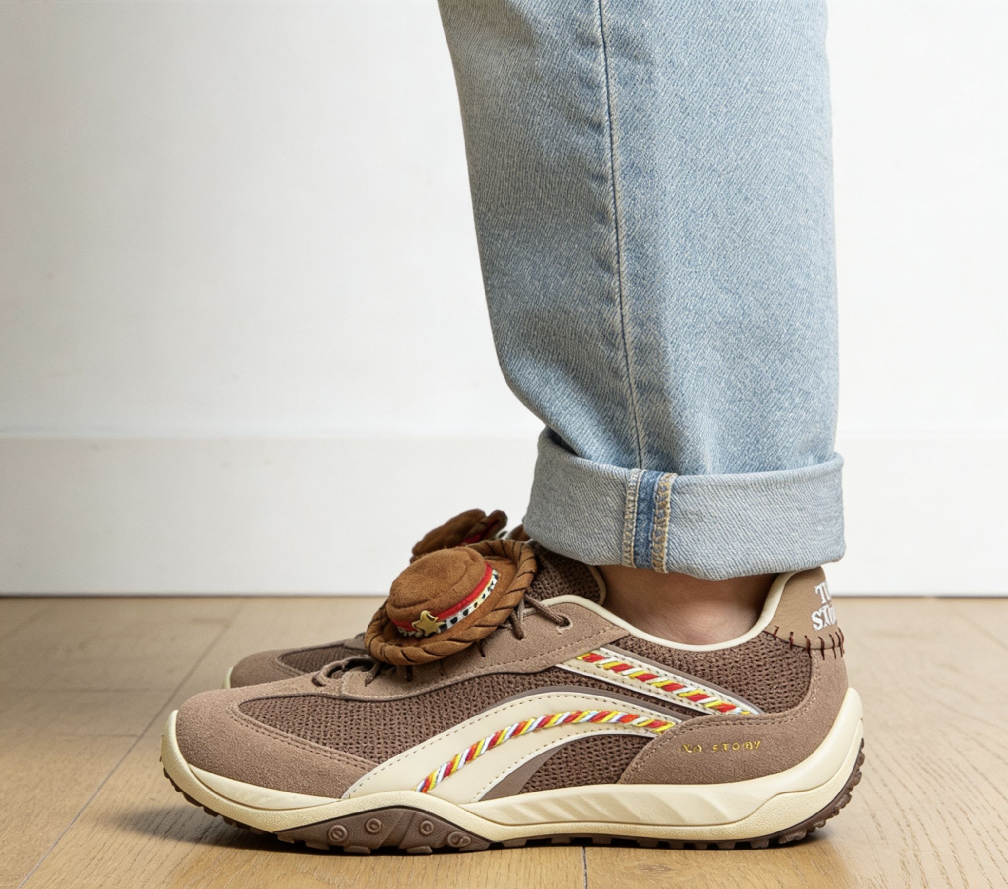 家人们谁懂啊!Li - Ning x Toy Story的联名鞋也太会了吧🤩 鞋舌上Woody同款牛仔帽,戴上去瞬间化身西部牛仔,这波细节直接戳中情怀党!棕调配色复古高级,鞋侧彩色条纹像西部公路的阳光,出街回头率直接拉满~ 鞋跟“Toy Story”刺绣+鞋垫30周年标志,联名诚意拉满,细节控狂喜!Li - Ning的鞋型舒服到飞起,搭卫衣牛仔裤都绝了,这双鞋是潮流+情怀的完美融合,闭眼入不亏!🤠...