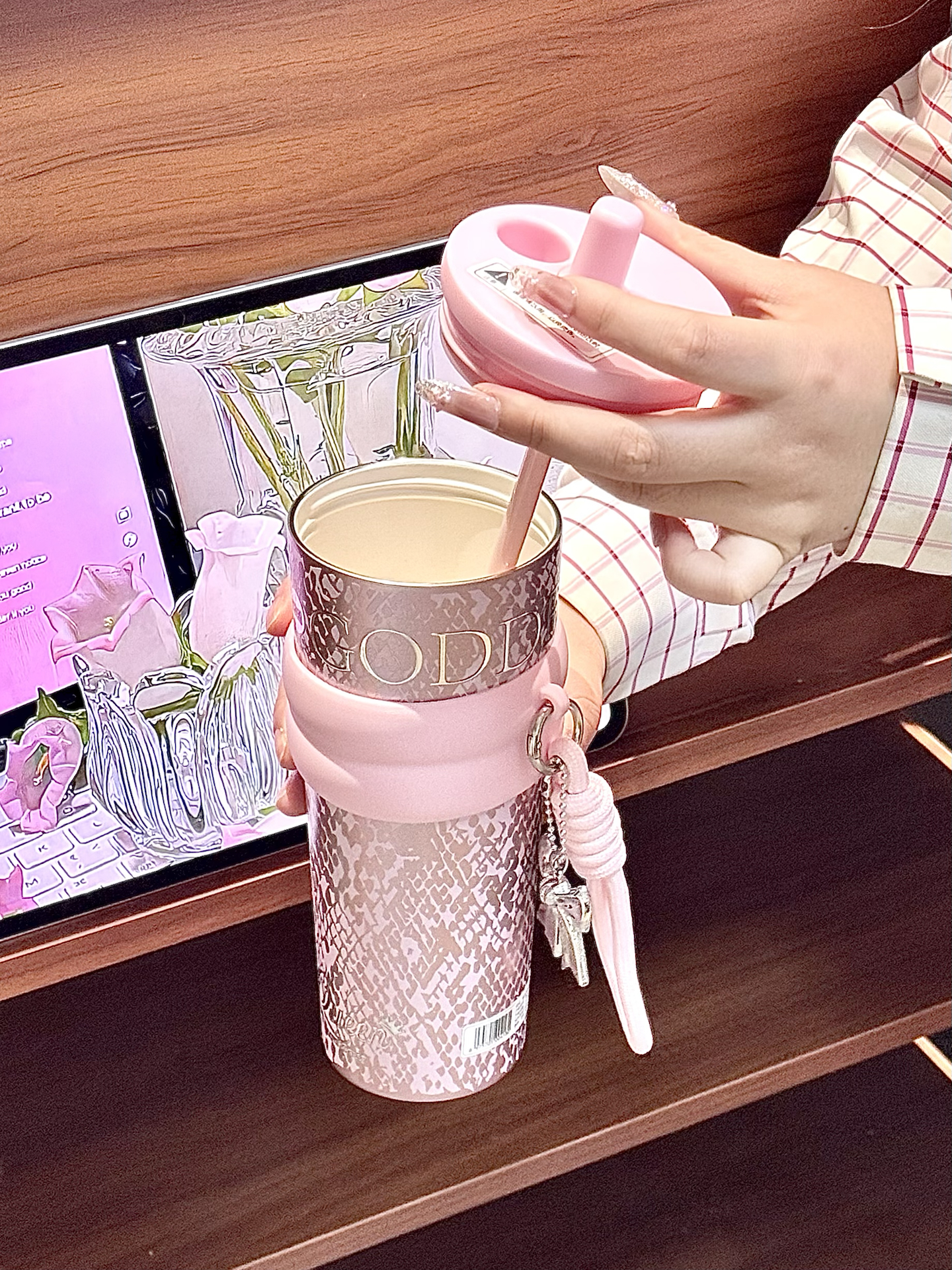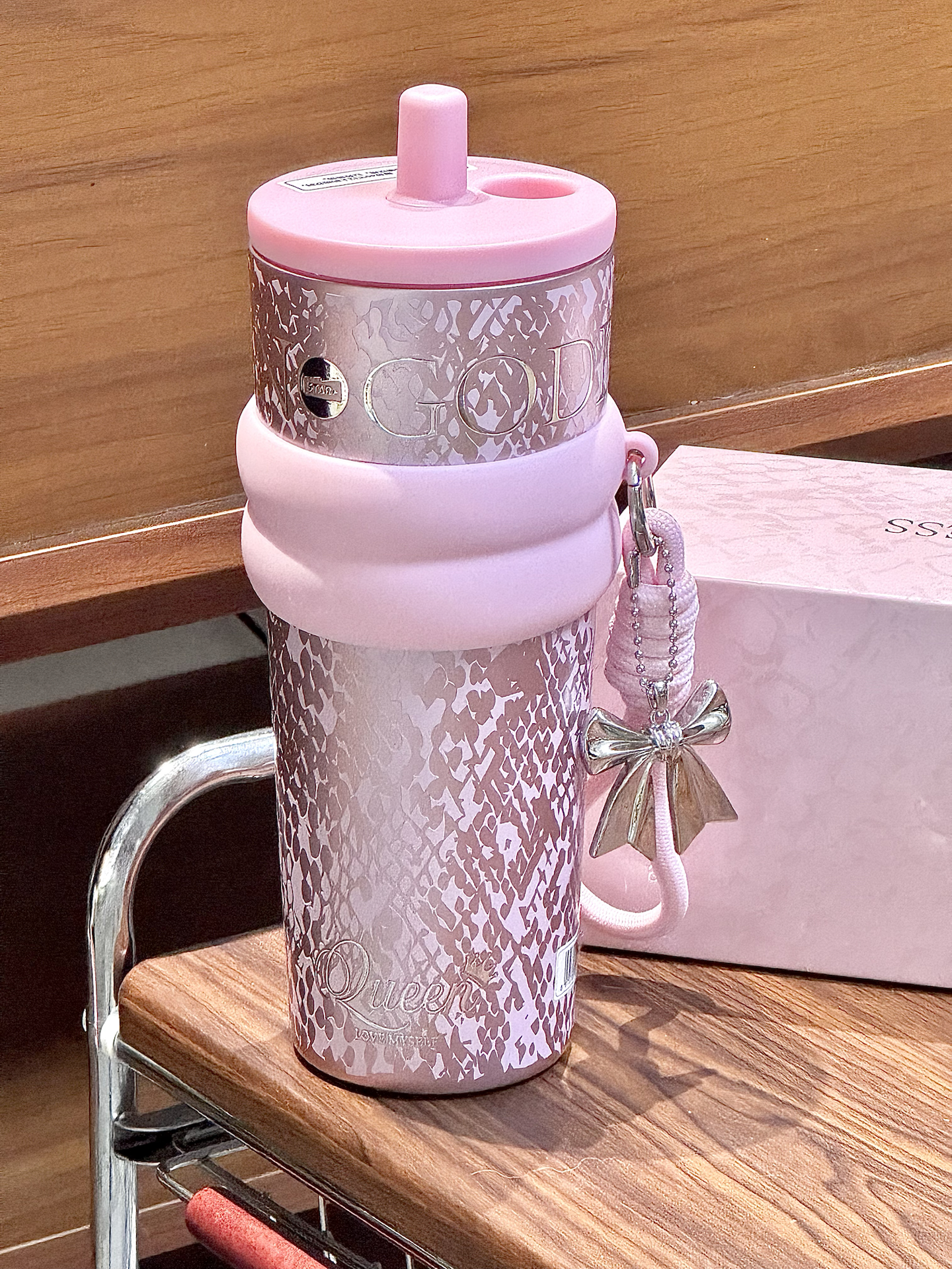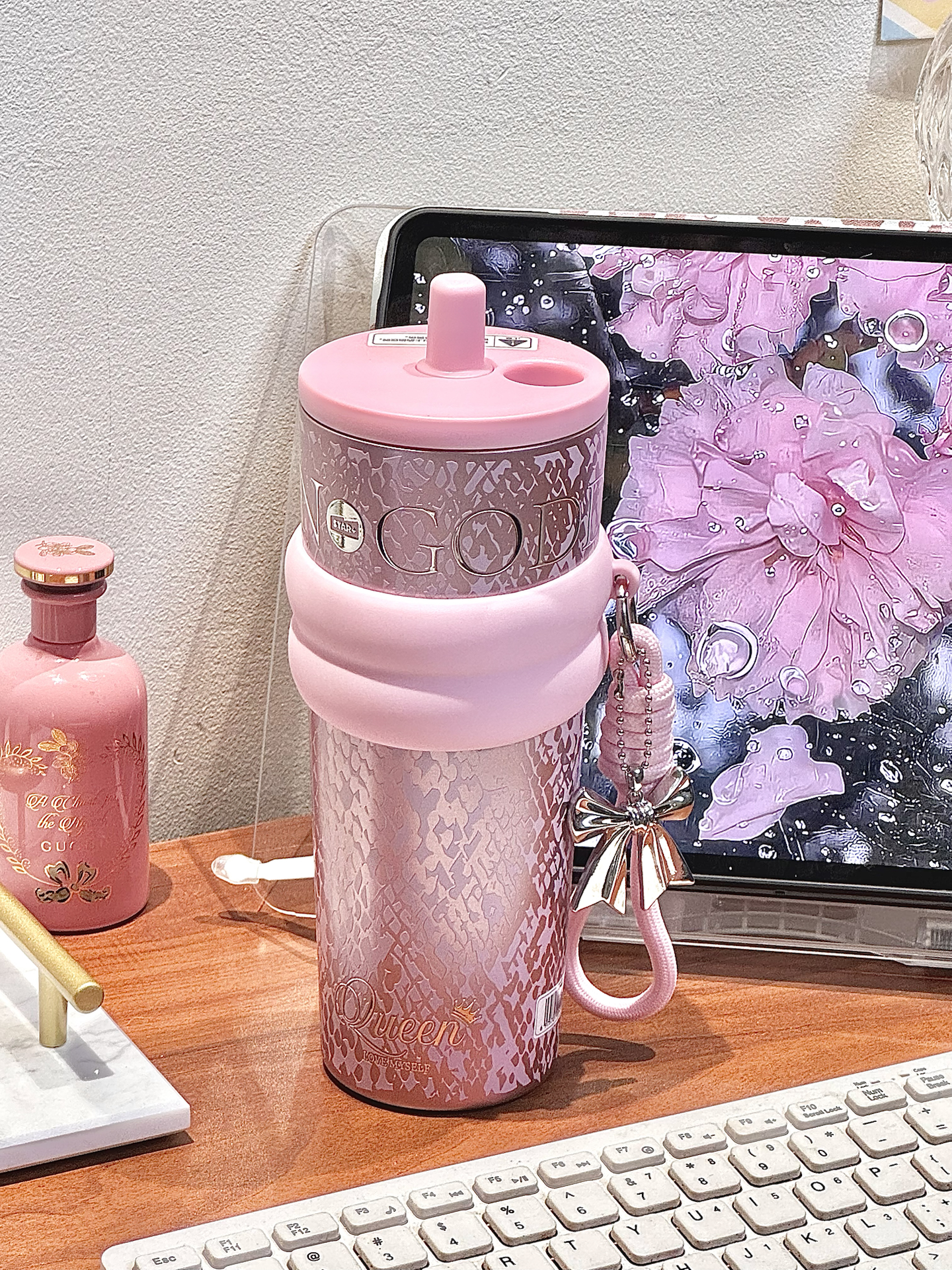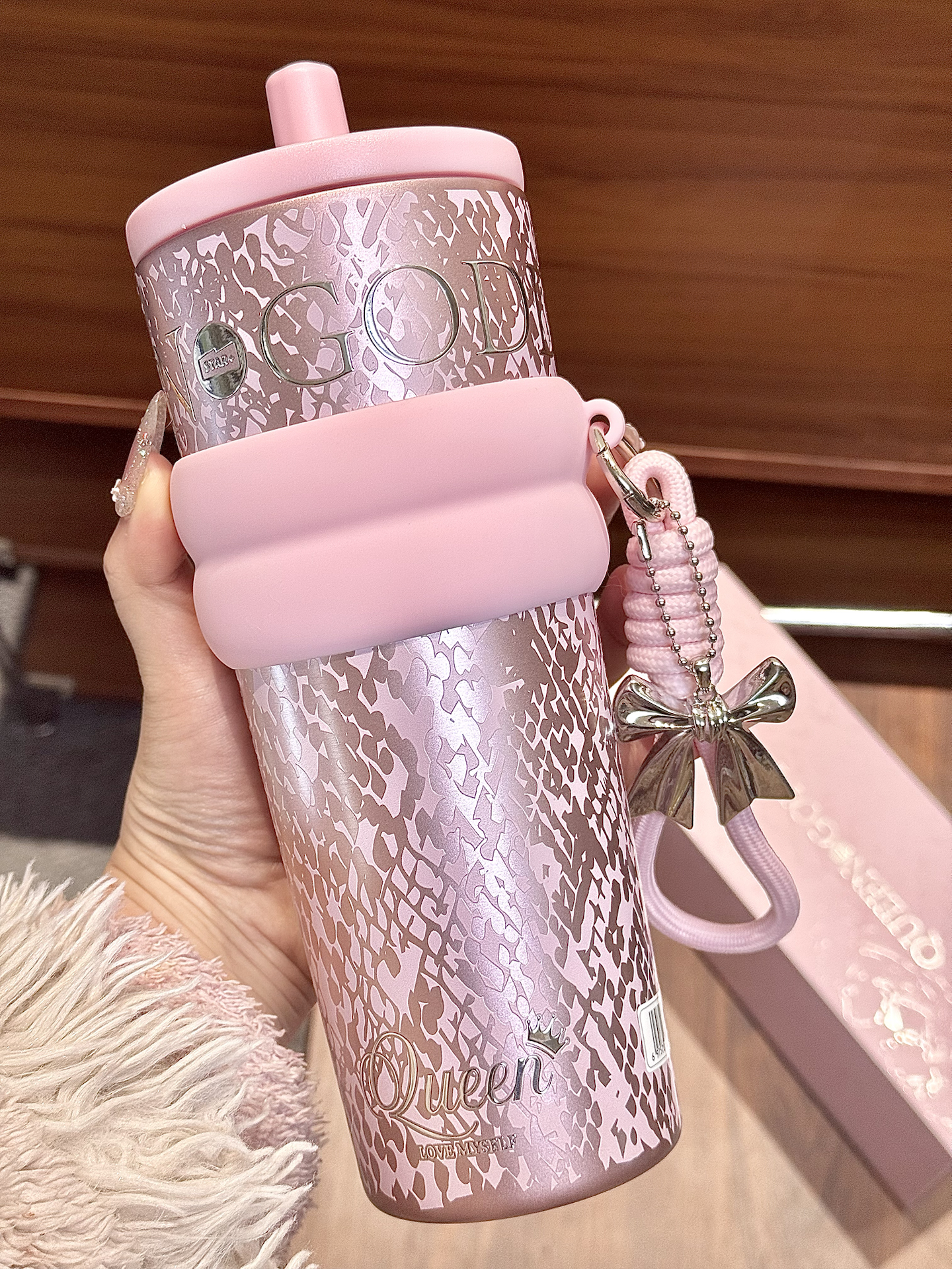 春天尊嘟和粉色吼配呀 来康康我滴喝水新搭子 系世大家的介个极光女神杯 搭配的蝴蝶结手拎绳配饰也挺点睛 710ml的大容量够我喝大半天的 还是覆陶瓷内胆的用着也安心 每天带出门也吼方便內 礼盒包装也hin精致,我感觉用来送人也敲不戳捏