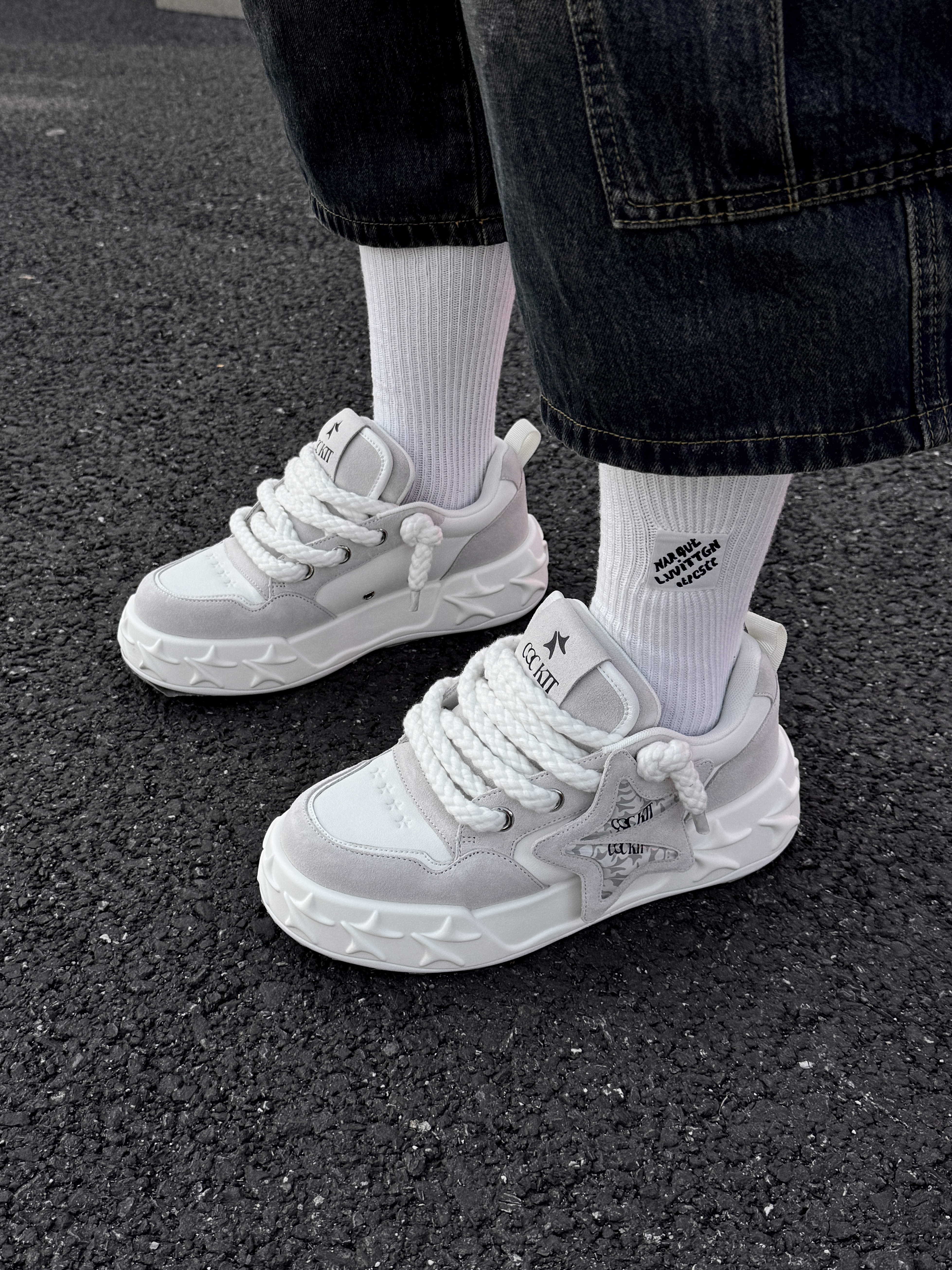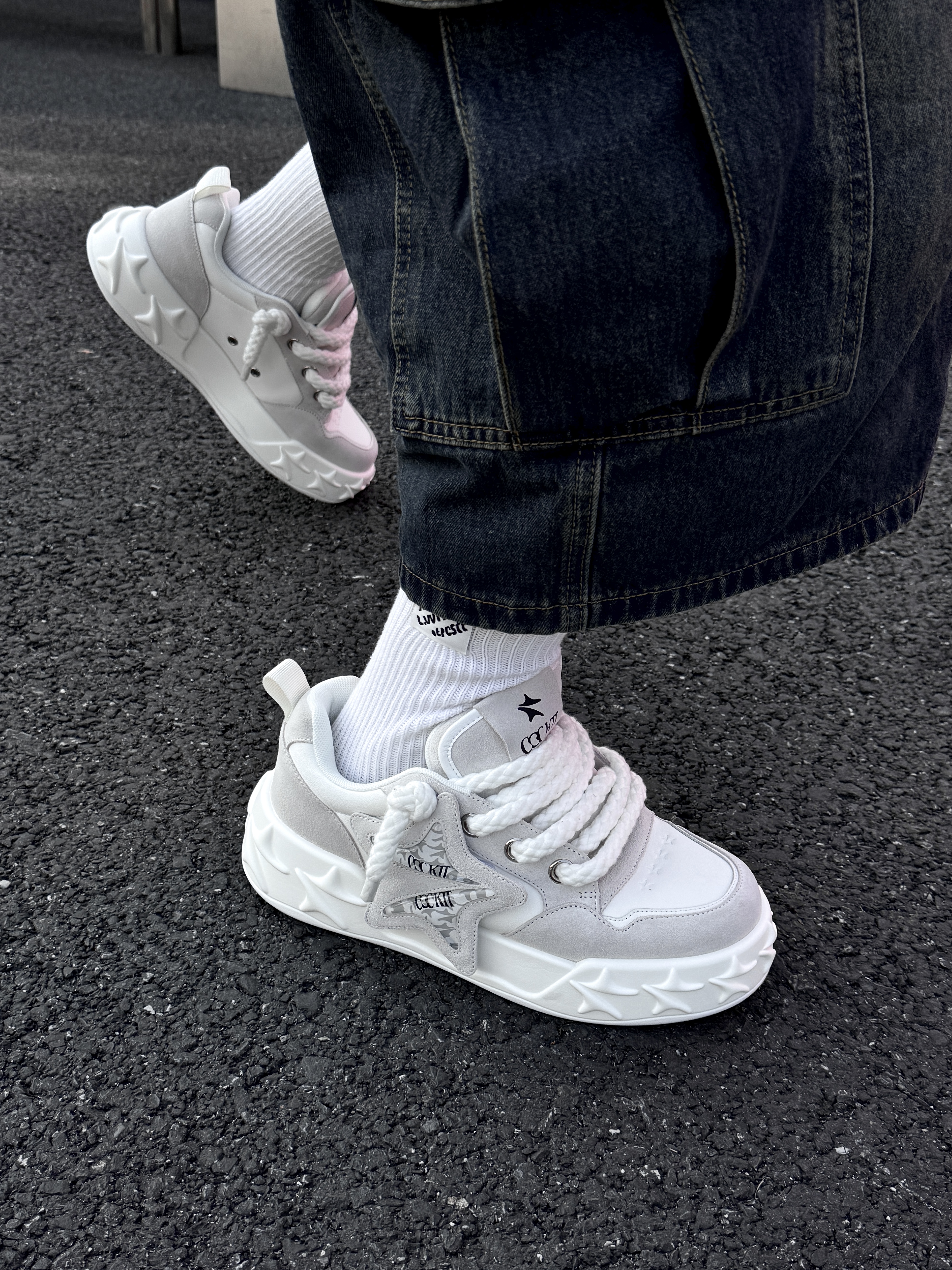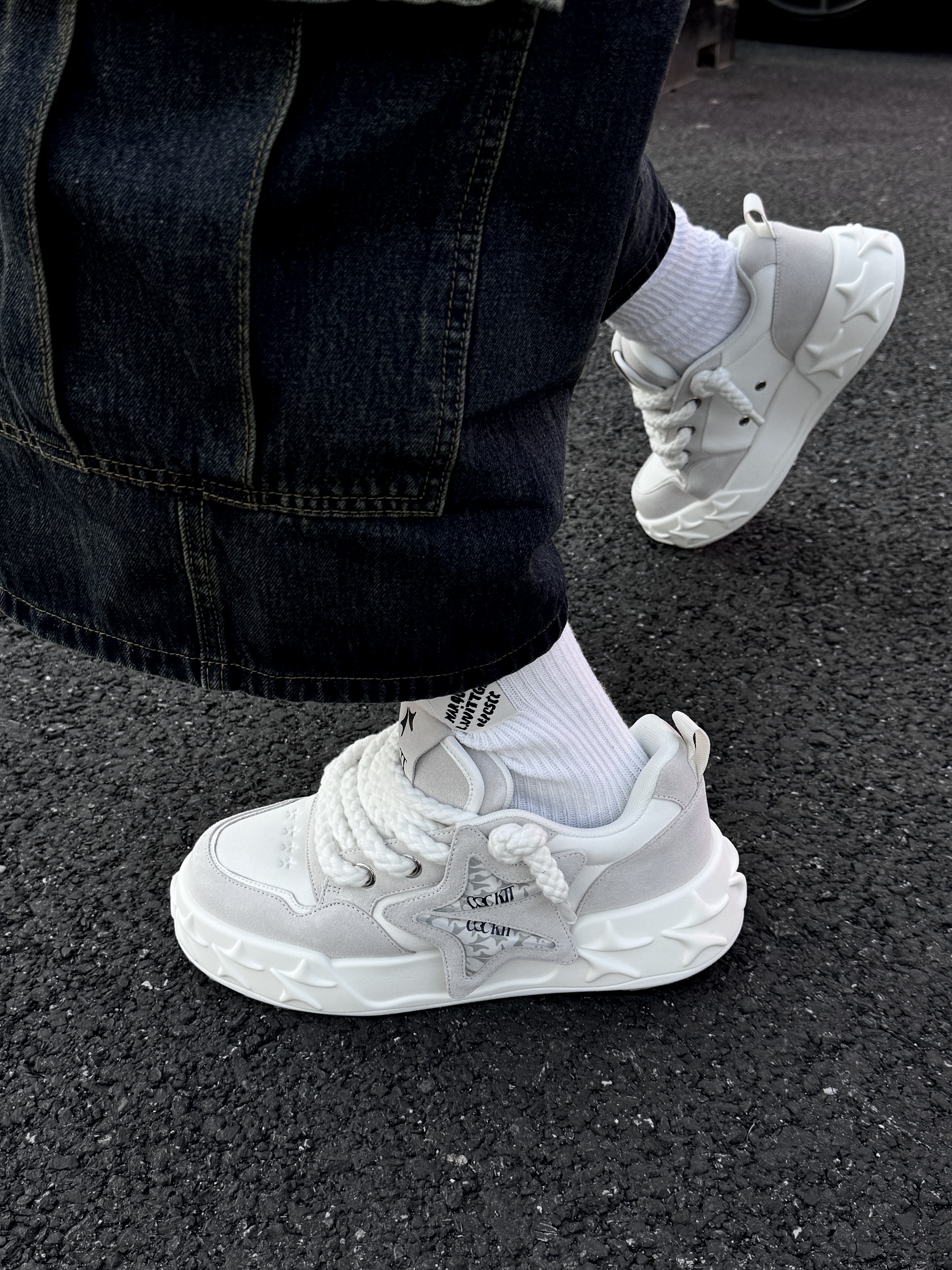~ 给大家分享一双 #COCKTT 厚底面包板鞋👟 白色➕灰色的颜色跟春夏穿搭的适配度很高 鞋带位置做了个星星吊坠挂件⭐⭐ 整双鞋看着胖乎乎的蛮q的 包裹感其实也还算ok 女生春夏穿一些短裤也整双鞋漏出来也很显穿搭 像我平常不知道怎么搭的时候就穿这双🤩 尺码小建议: 徐哥平常穿的40这双40的刚好合适💡 #单鞋拿捏春日氛围感 #就是个板鞋脑袋 #买双新鞋哄自己上学 #此人鞋商极高 #CO...