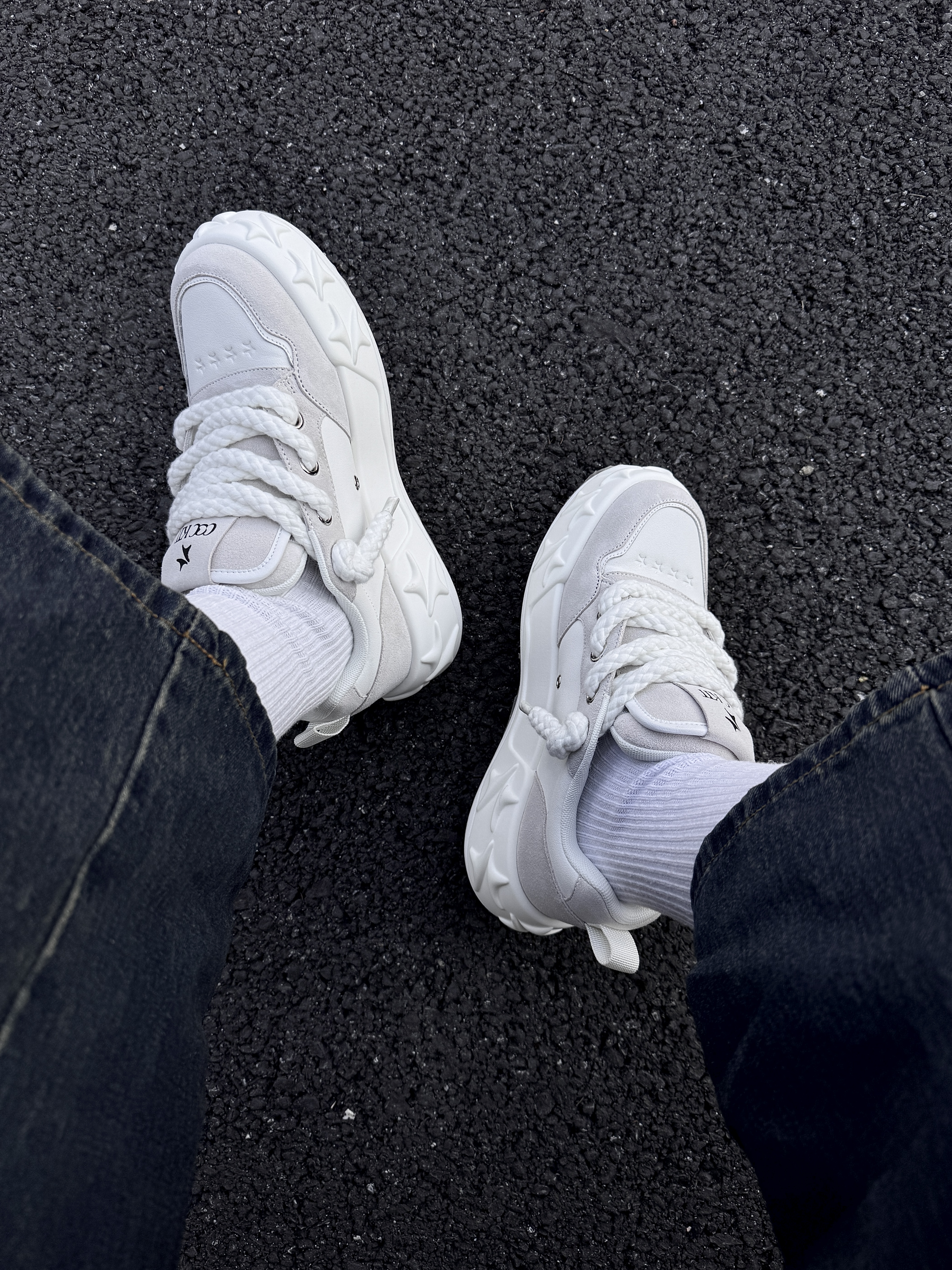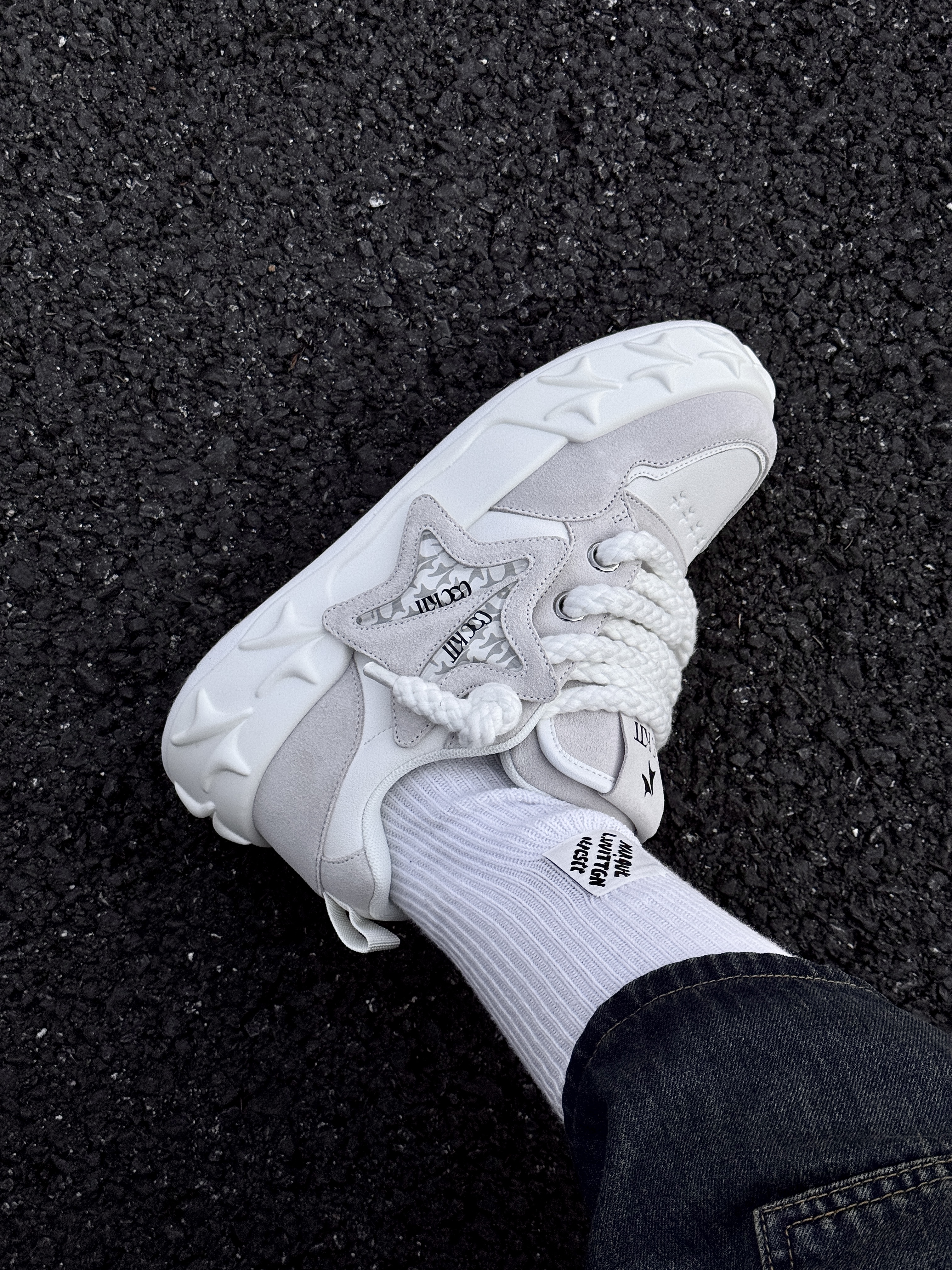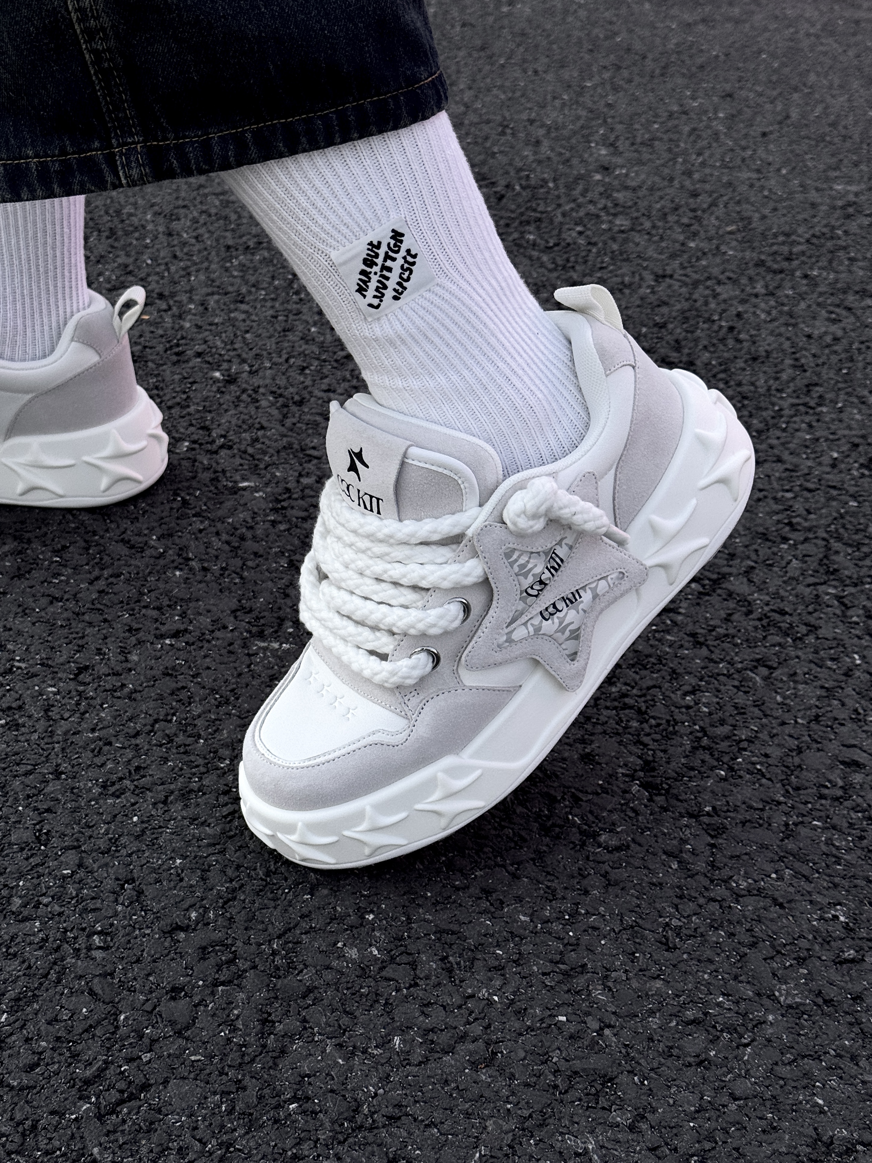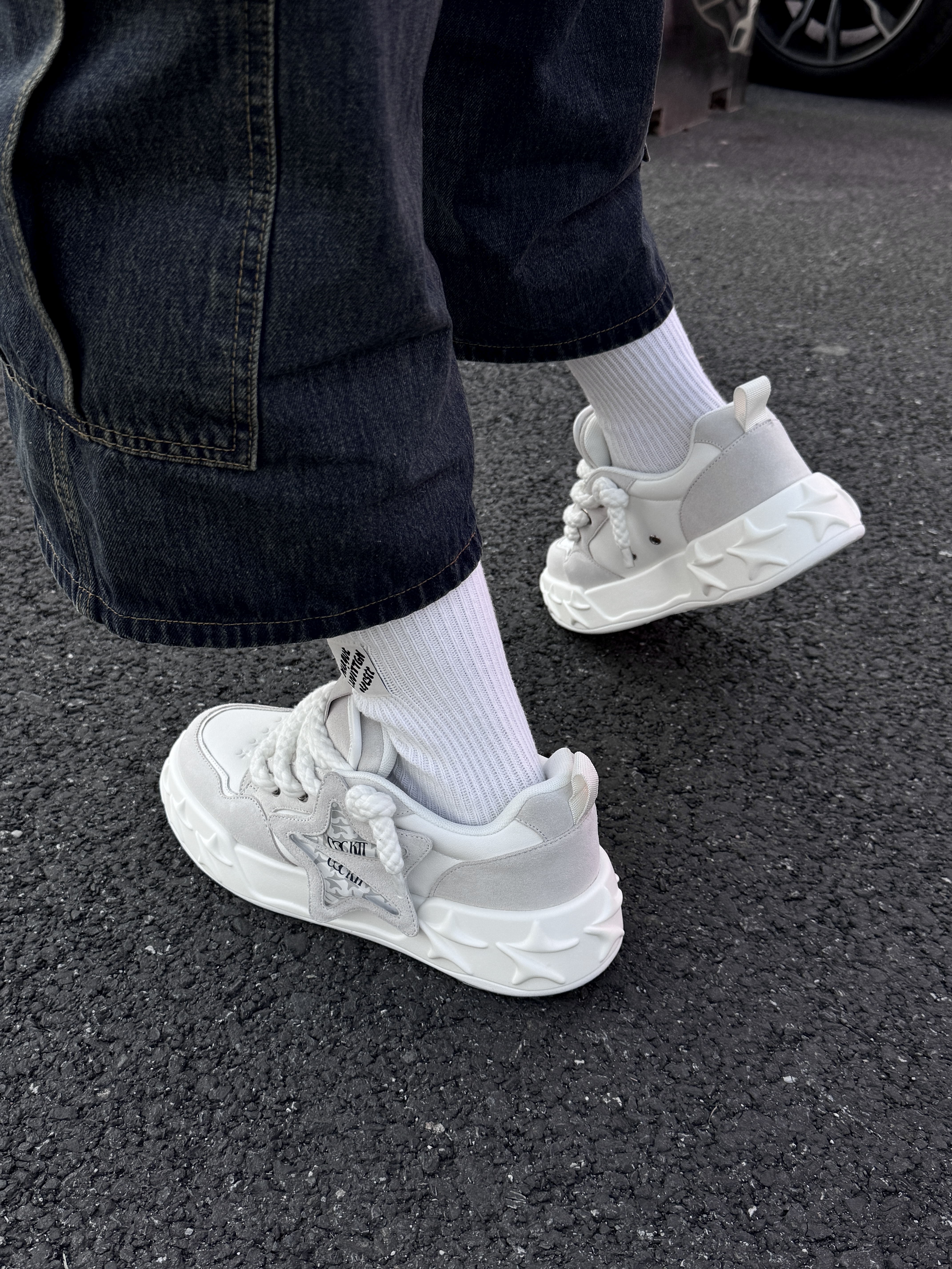 ~ 给大家分享一双 #COCKTT 厚底面包板鞋👟 白色➕灰色的颜色跟春夏穿搭的适配度很高 鞋带位置做了个星星吊坠挂件⭐⭐ 整双鞋看着胖乎乎的蛮q的 包裹感其实也还算ok 女生春夏穿一些短裤也整双鞋漏出来也很显穿搭 像我平常不知道怎么搭的时候就穿这双🤩 尺码小建议: 徐哥平常穿的40这双40的刚好合适💡 #单鞋拿捏春日氛围感 #就是个板鞋脑袋 #买双新鞋哄自己上学 #此人鞋商极高 #CO...