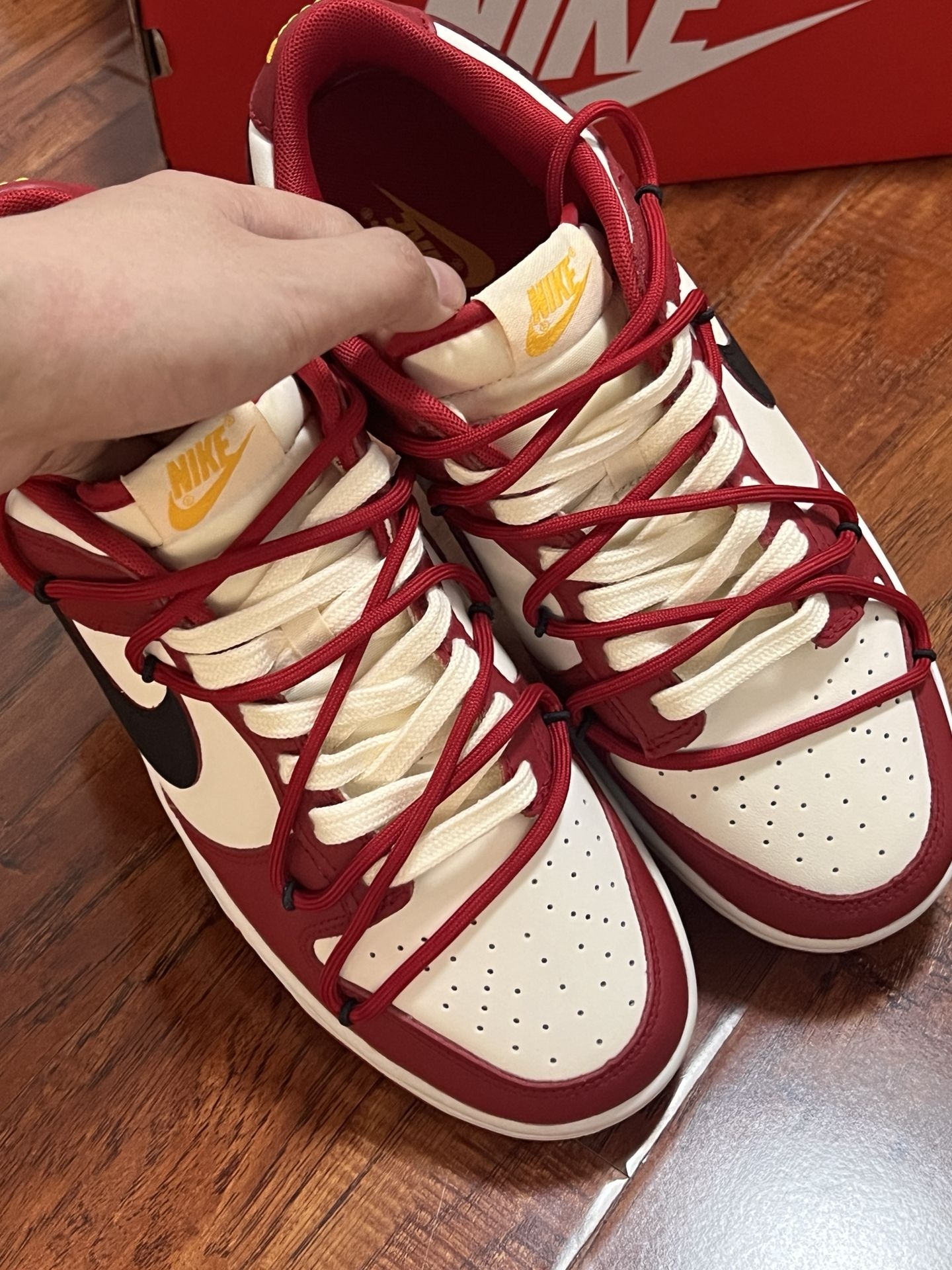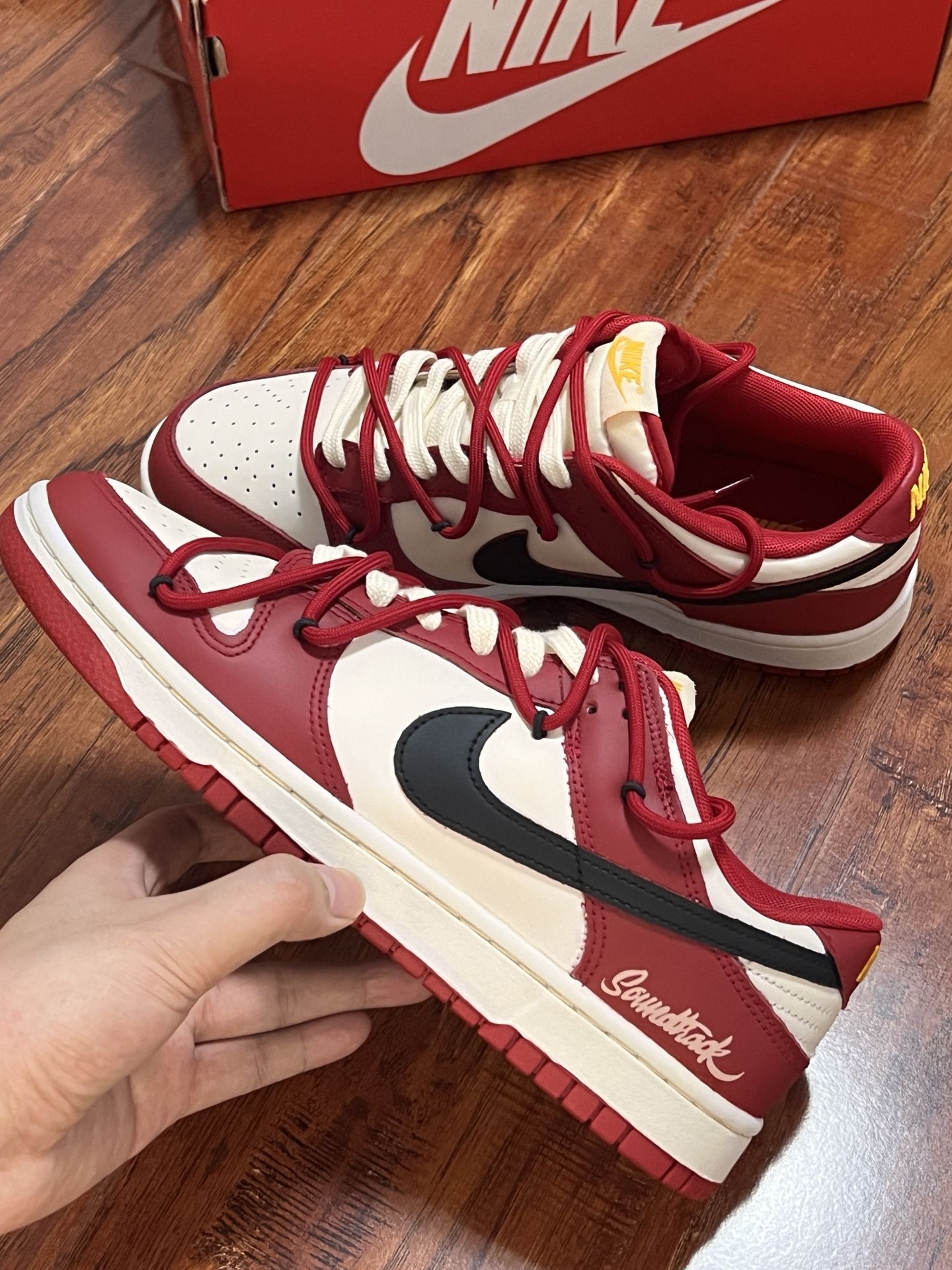 还得是芝加哥dunk❗|||最近入手的一款芝加哥配色dunk,收到货后很惊喜,实物比主图显示的好看,没有那么黄,是米黄色搭配深红色,这个配色看起来很舒服。码数标准,我按平常的码数拍,穿的正正好。#dunk开箱 #dunk芝加哥红白 #实物比图片好看 #人手一双芝加哥 #Nike酒红dunk