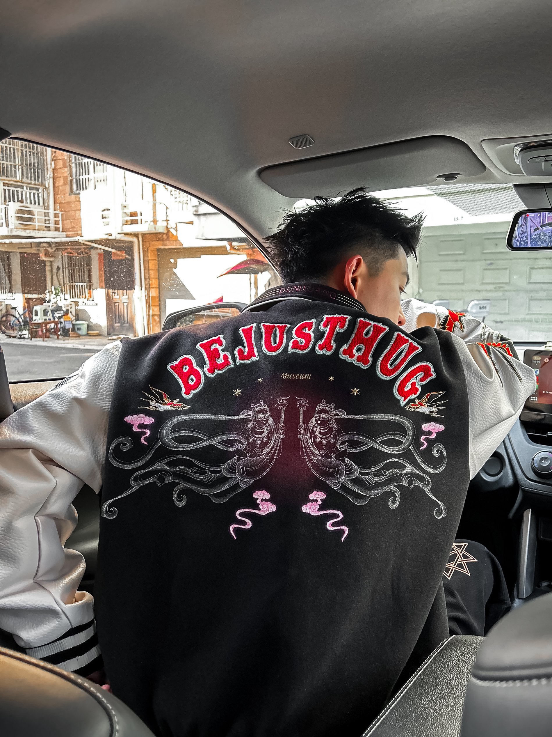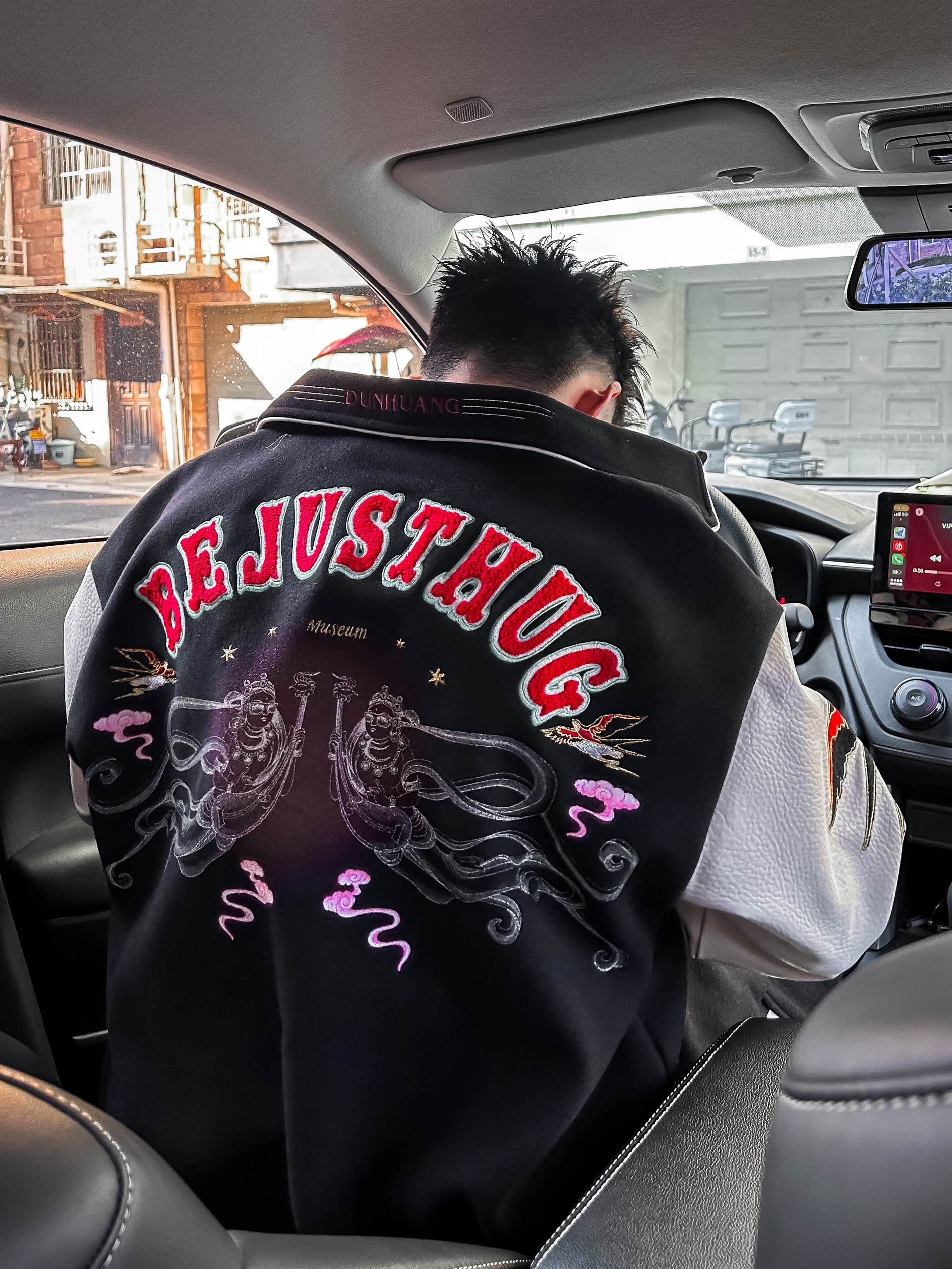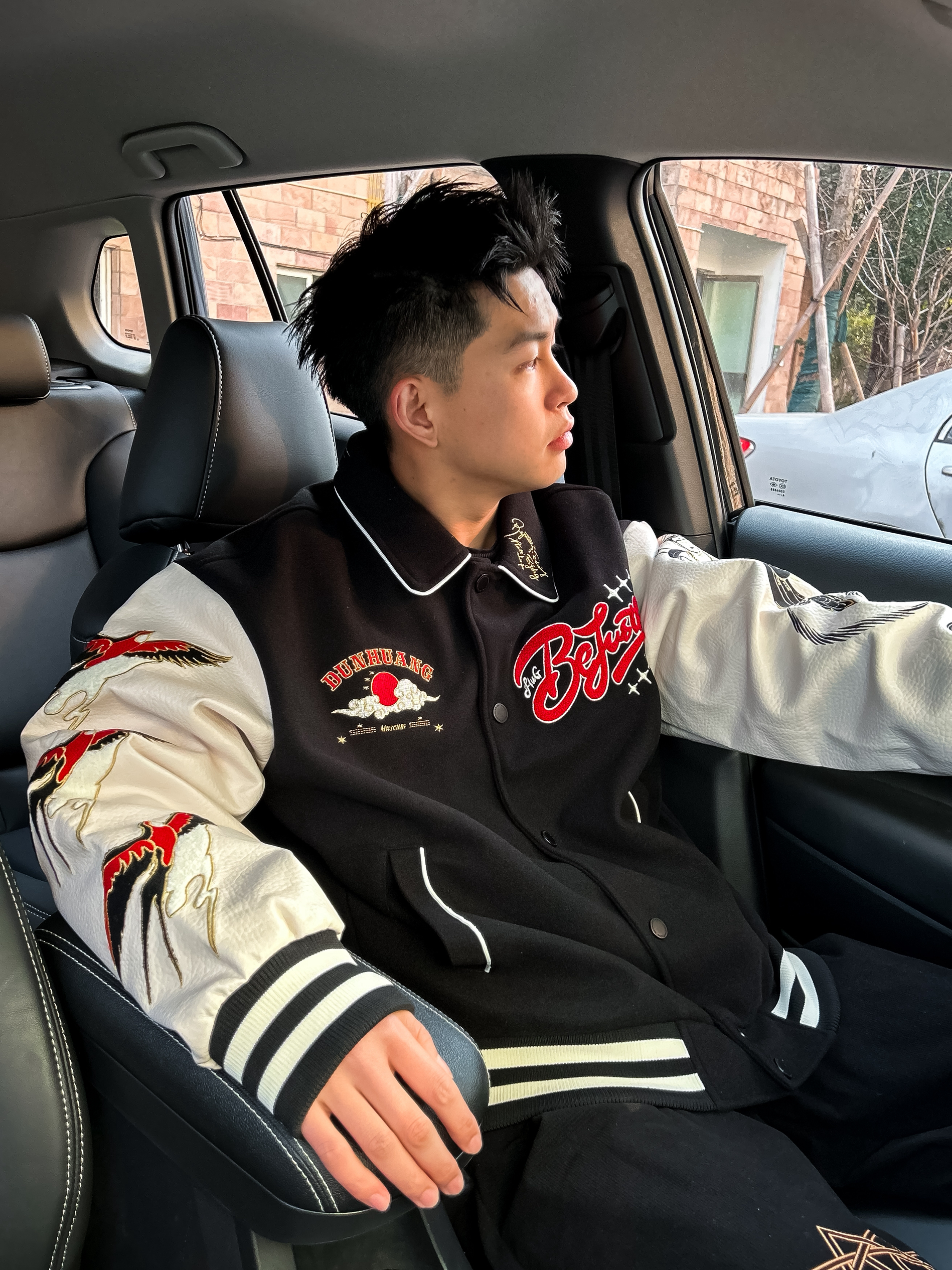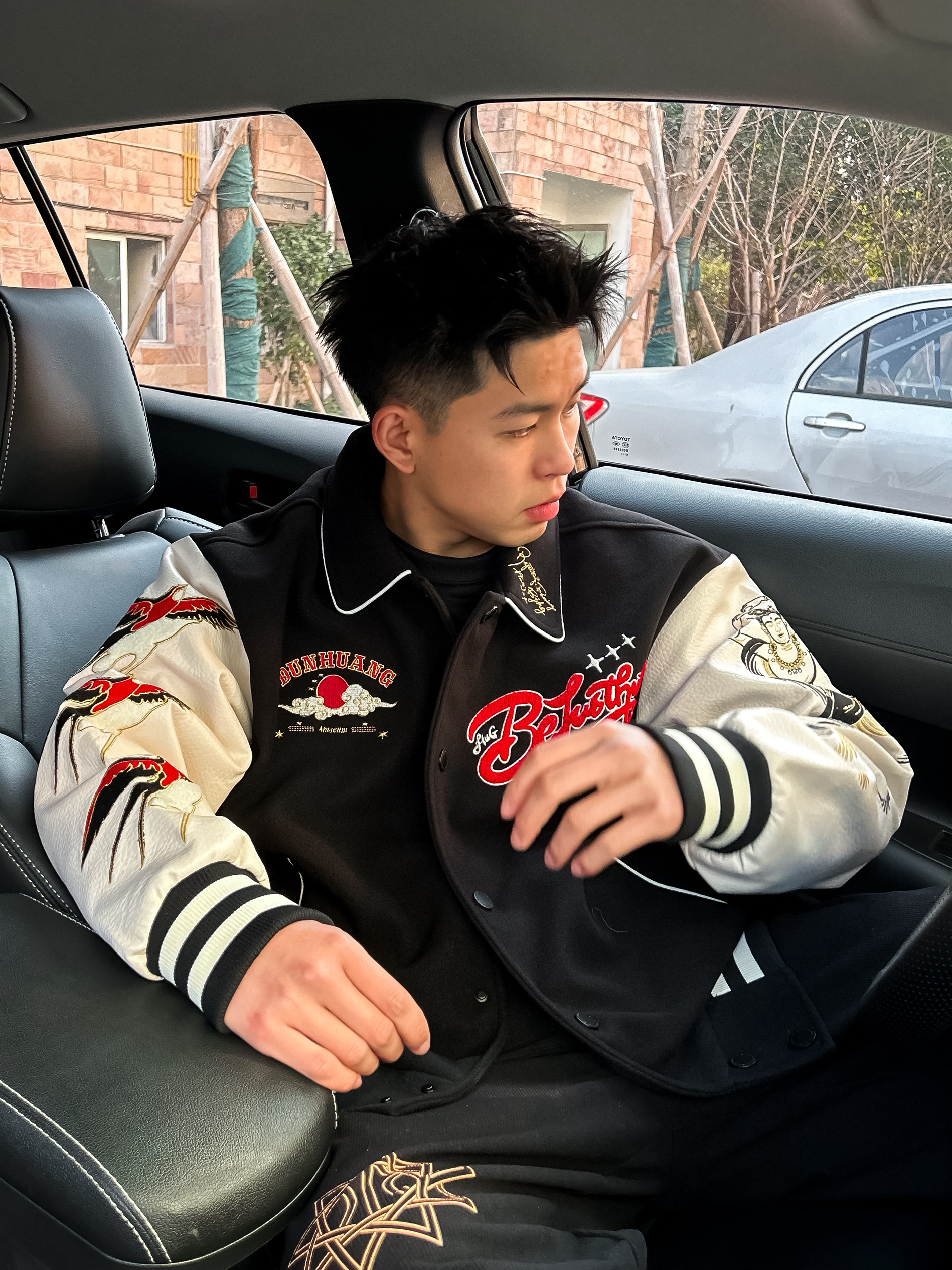 哈咯,这里是卢_SG 国潮风棒球服才是新年战袍的正确打开方式✨ 今日OOTD 上衣选择 BJHG 敦煌主题刺绣棒球服 背后的敦煌飞天刺绣和两个袖子也有重磅刺绣 把传统纹样和美式棒球服版型结合 既有东方古韵的飘逸线条,又有街头潮流的视觉冲击 衣身采用重磅毛呢面料,保暖性拉满 袖子是柔软的肌理感面料,活动起来没有束缚感 宽松版型,微胖也能不显肉! 日常出门穿回头率很高!!! 裤子搭配一条黑色...