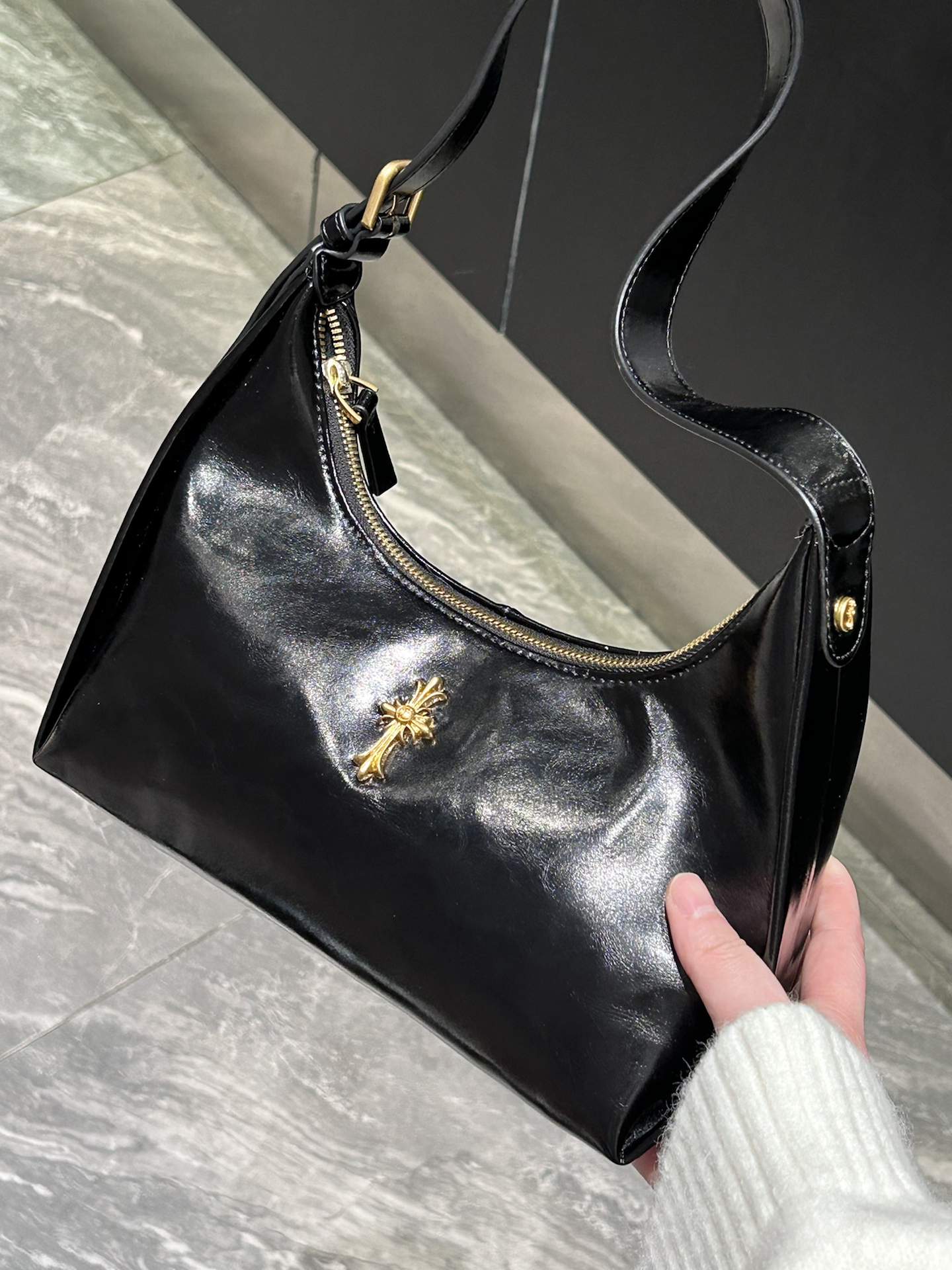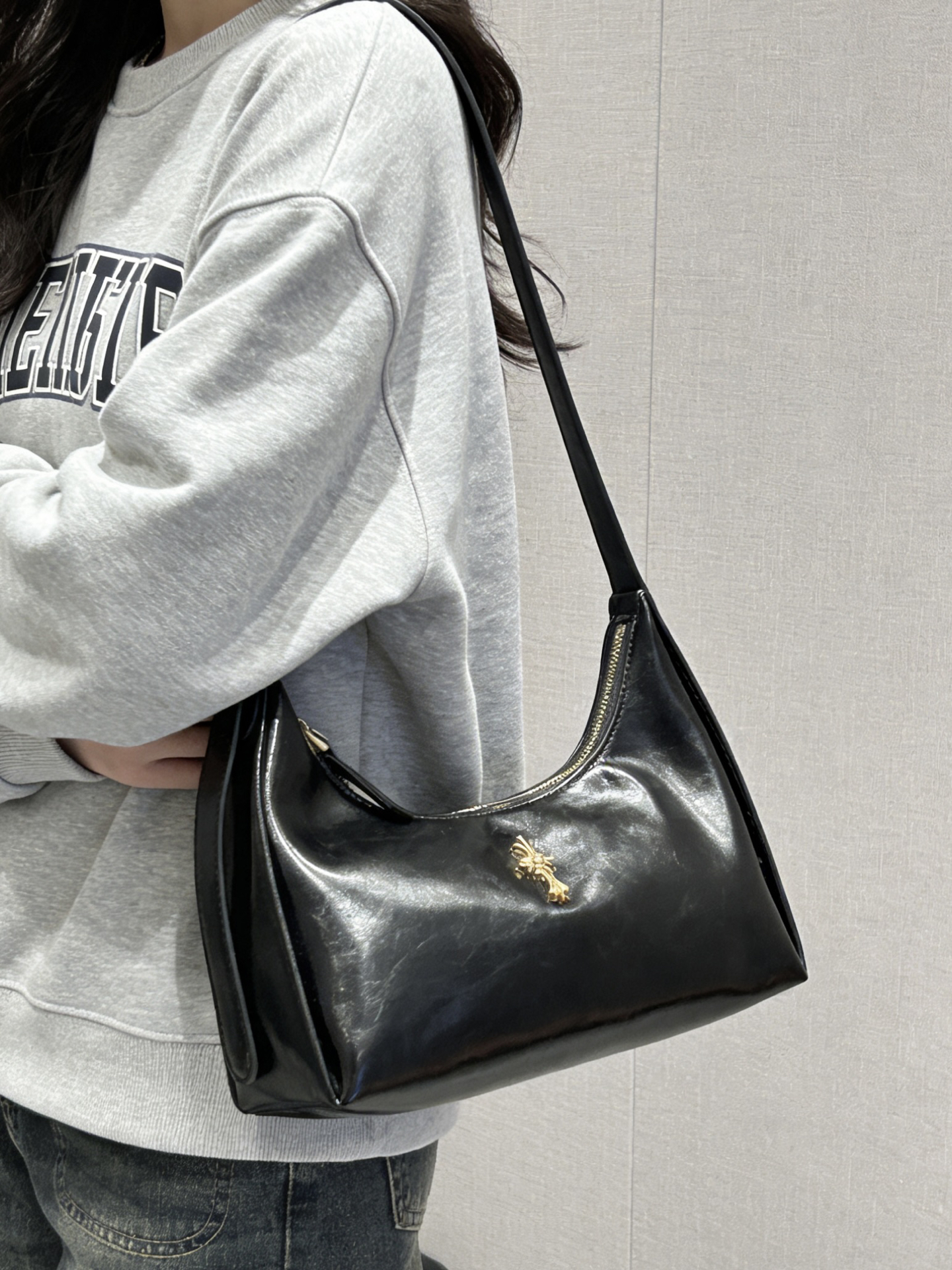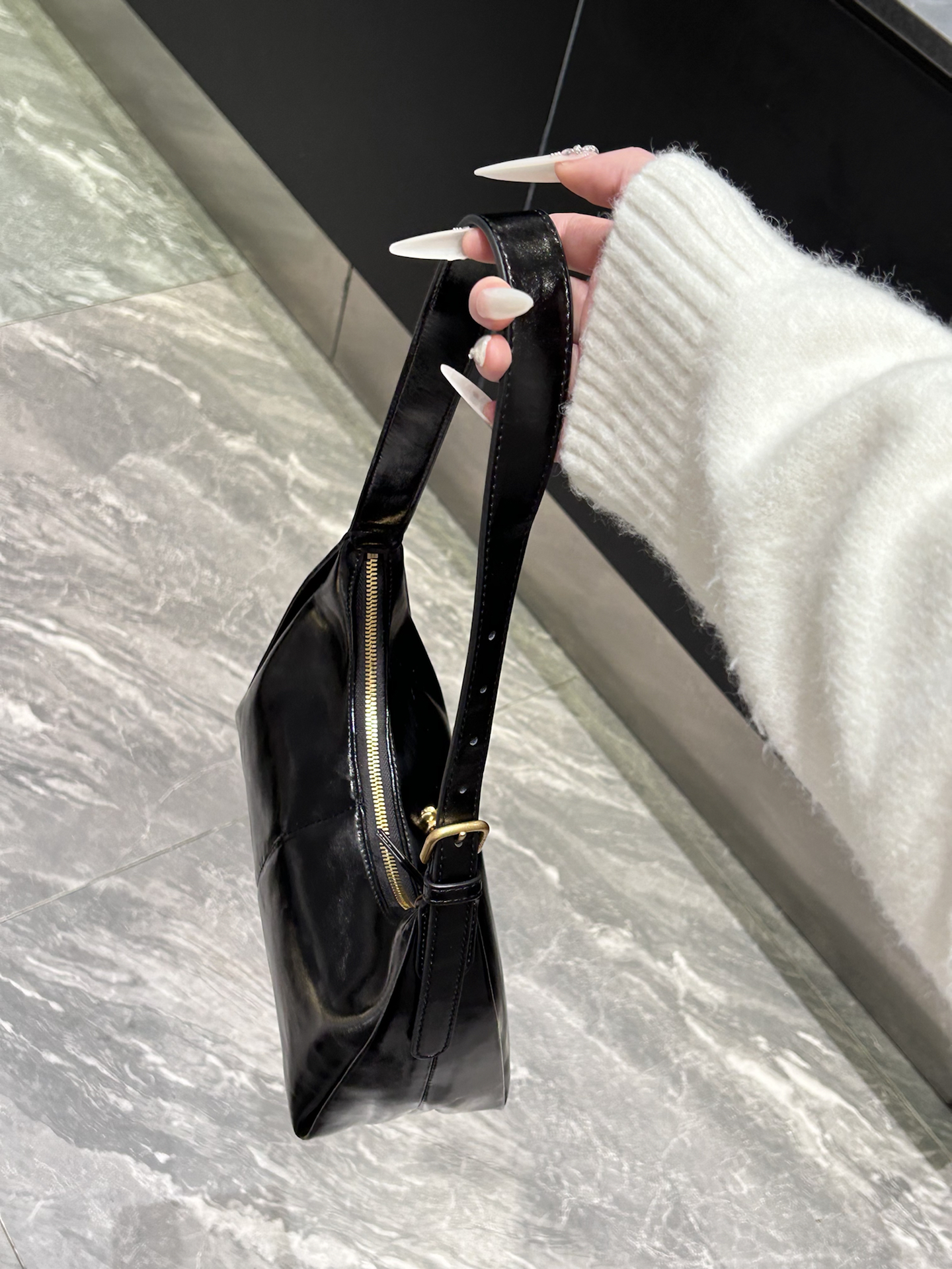 我又挖到了一只好耐看的包包! 就是介个质感在线的黑色亮面腋下包 漆皮的材质,hin高级 容量上挺够用的,通勤装物刚刚好 我比较喜欢腋下挎 我感觉可有氛围感啦 也可以手提、单肩,怎么搭配都蛮好看滴 平时通勤约会背都好适合 #EDHARDY女包 #EdHardy箱包 #我的百搭神包分享 #38节送她这个被夸爆 #人类高质量包包我也拥有了