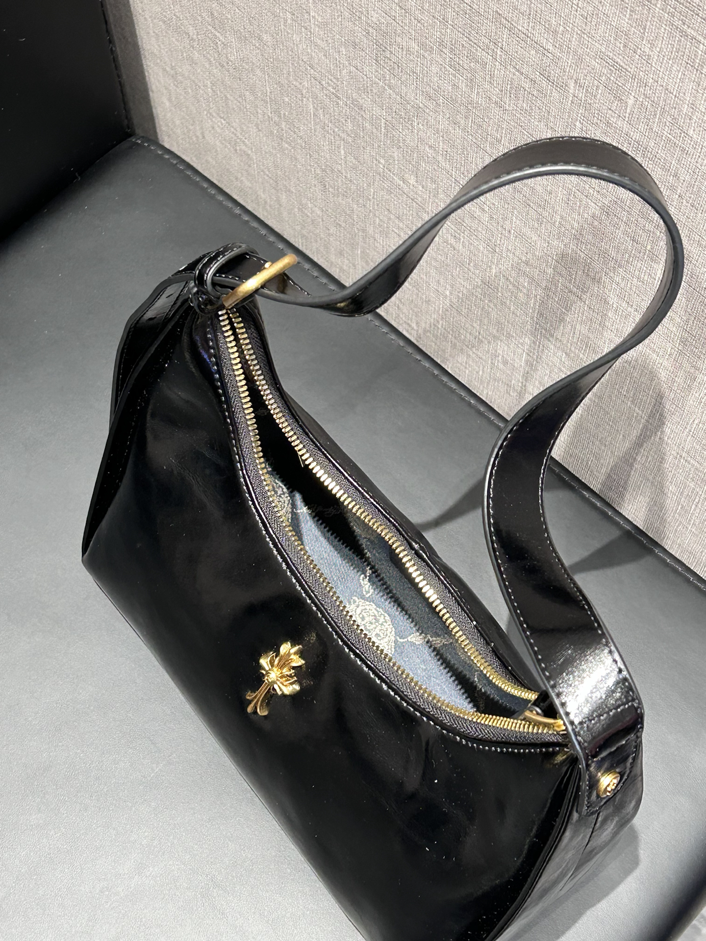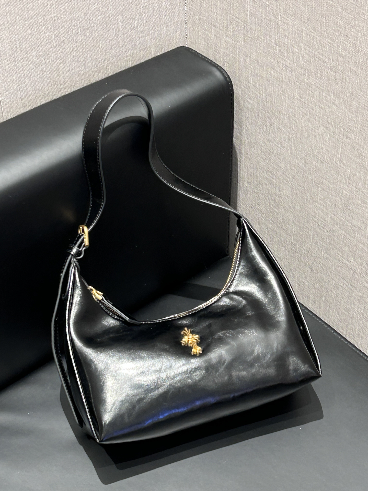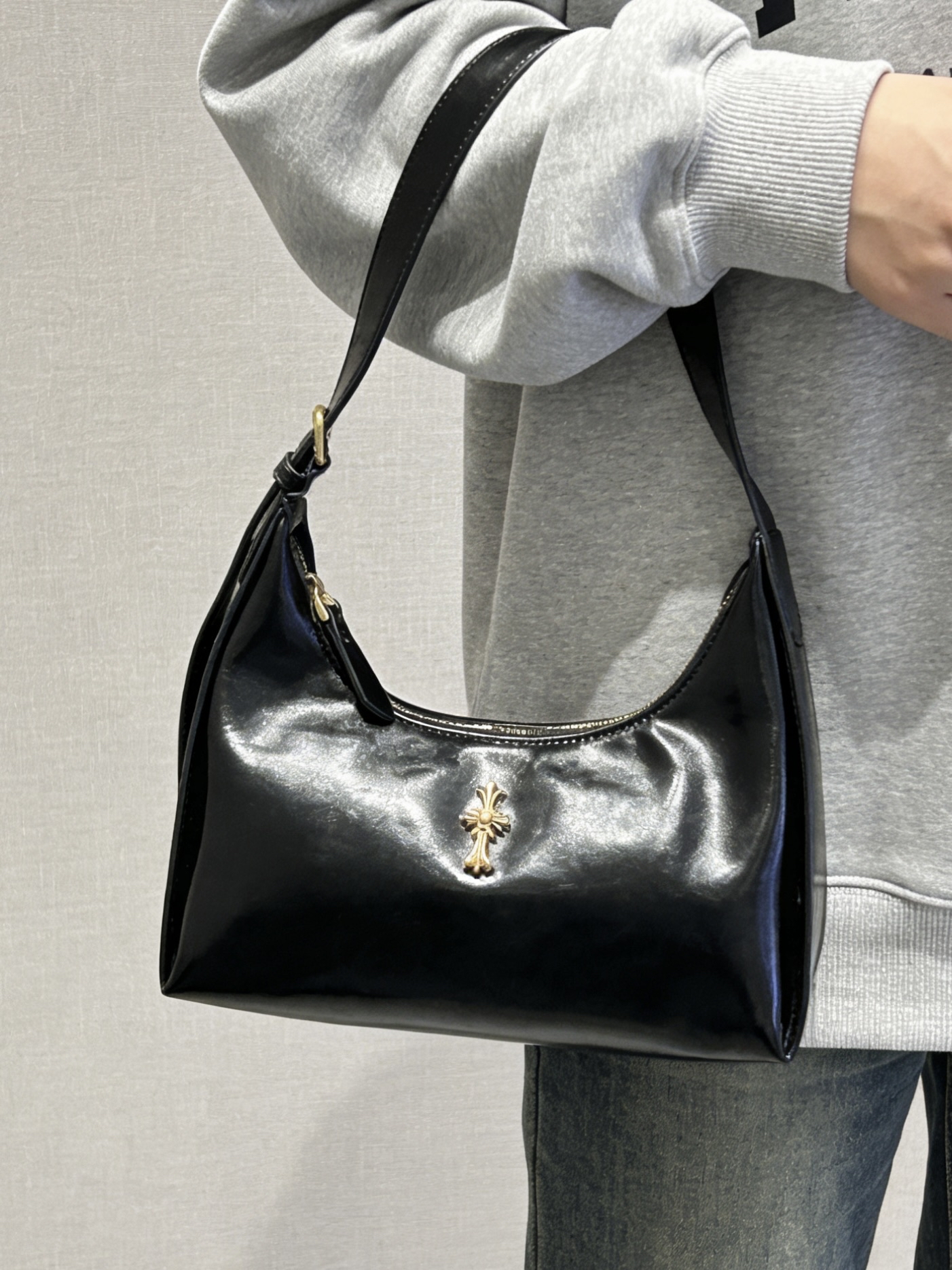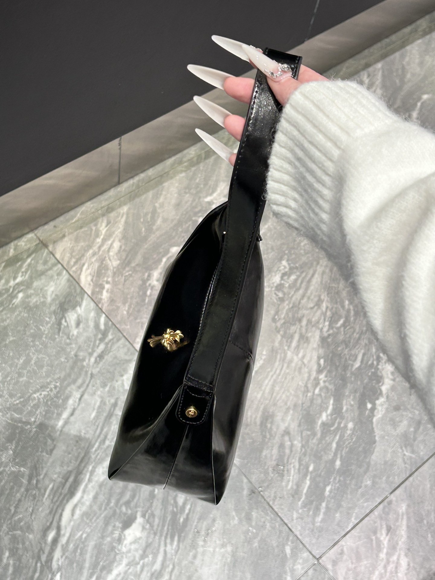 我又挖到了一只好耐看的包包! 就是介个质感在线的黑色亮面腋下包 漆皮的材质,hin高级 容量上挺够用的,通勤装物刚刚好 我比较喜欢腋下挎 我感觉可有氛围感啦 也可以手提、单肩,怎么搭配都蛮好看滴 平时通勤约会背都好适合 #EDHARDY女包 #EdHardy箱包 #我的百搭神包分享 #38节送她这个被夸爆 #人类高质量包包我也拥有了
