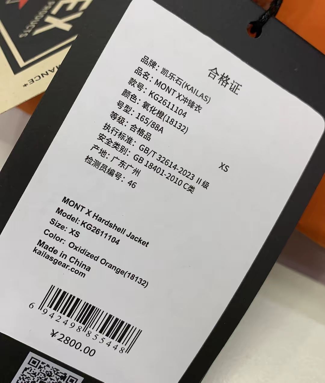本篇笔记关联了Kailas/凯乐石 MONT X 高海拔轻量硬壳防暴雨防风透气防紫外线全天候登山服单冲冲锋衣 KG2331117/KG2311102/KG2331111/KG2241122 KG2441147 氧化橙/单冲等商品,为用户提供真实的使用体验和购买参考。
