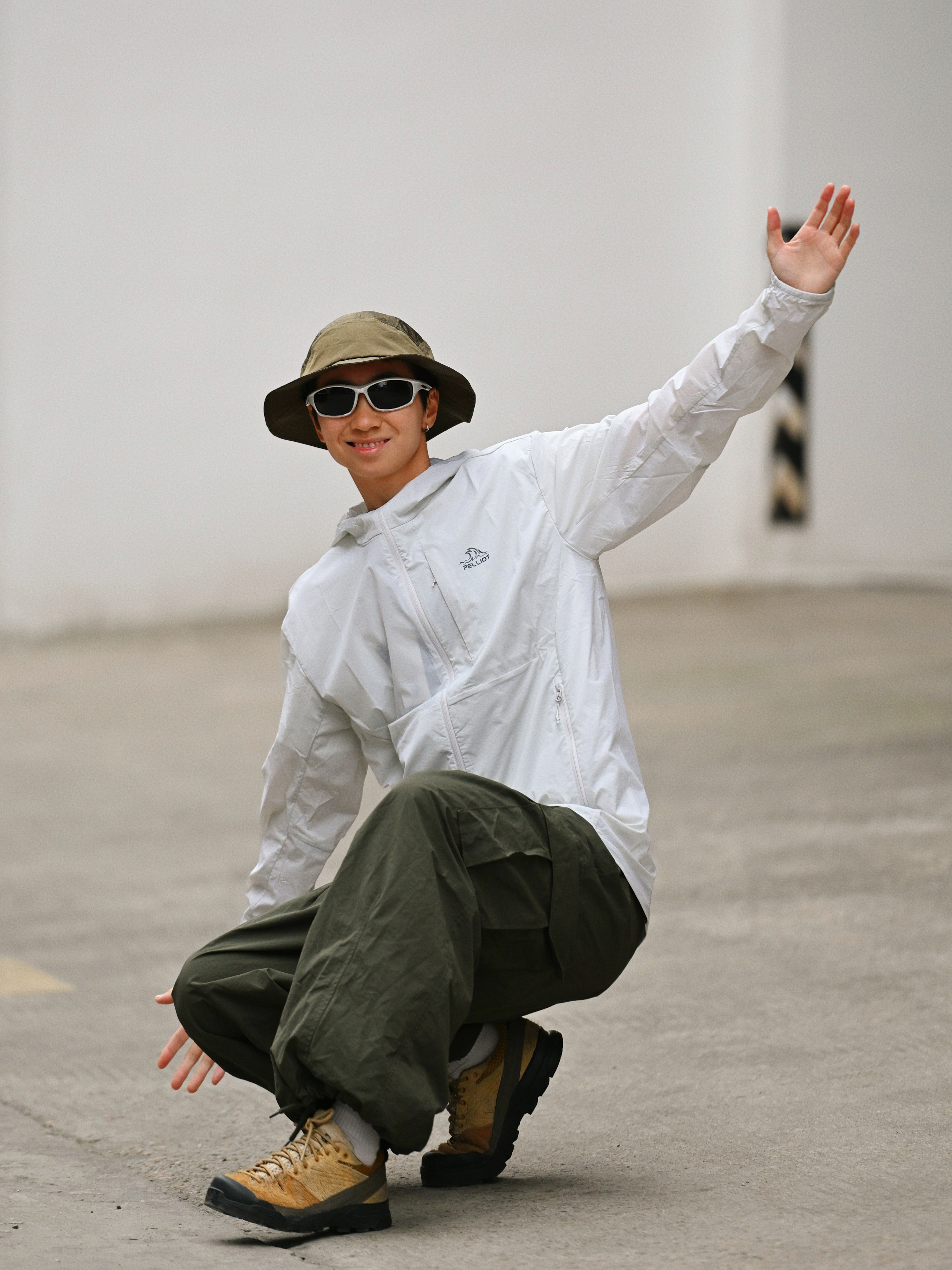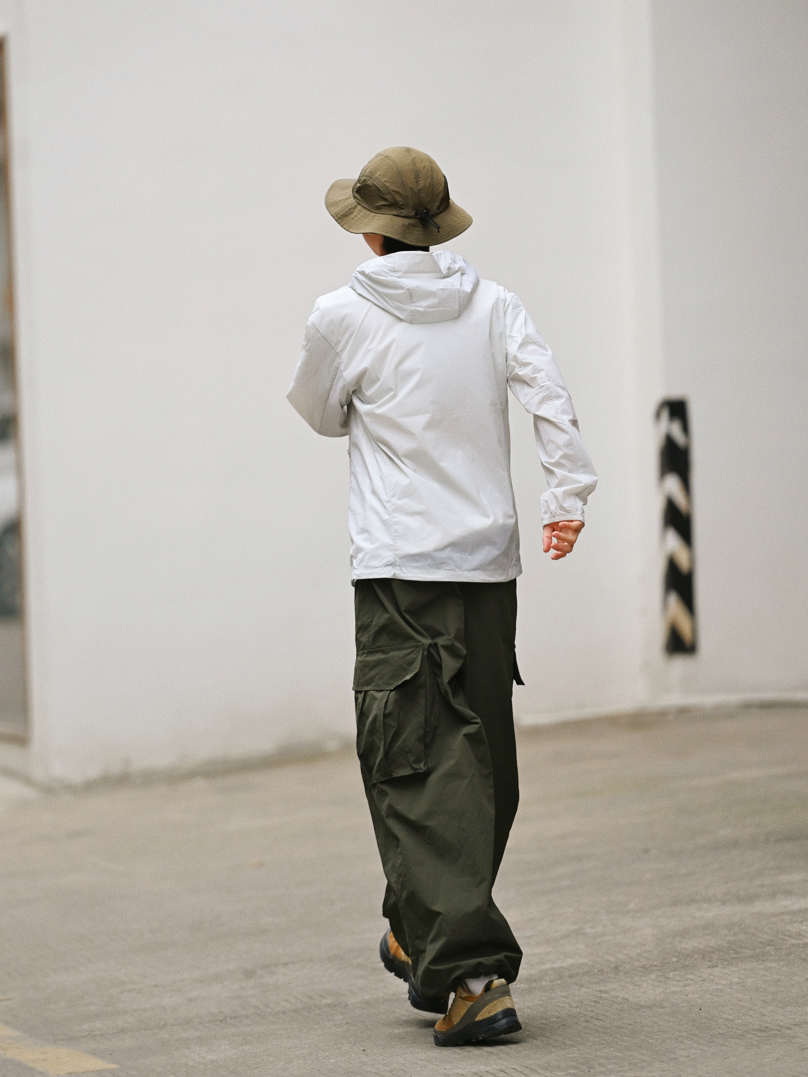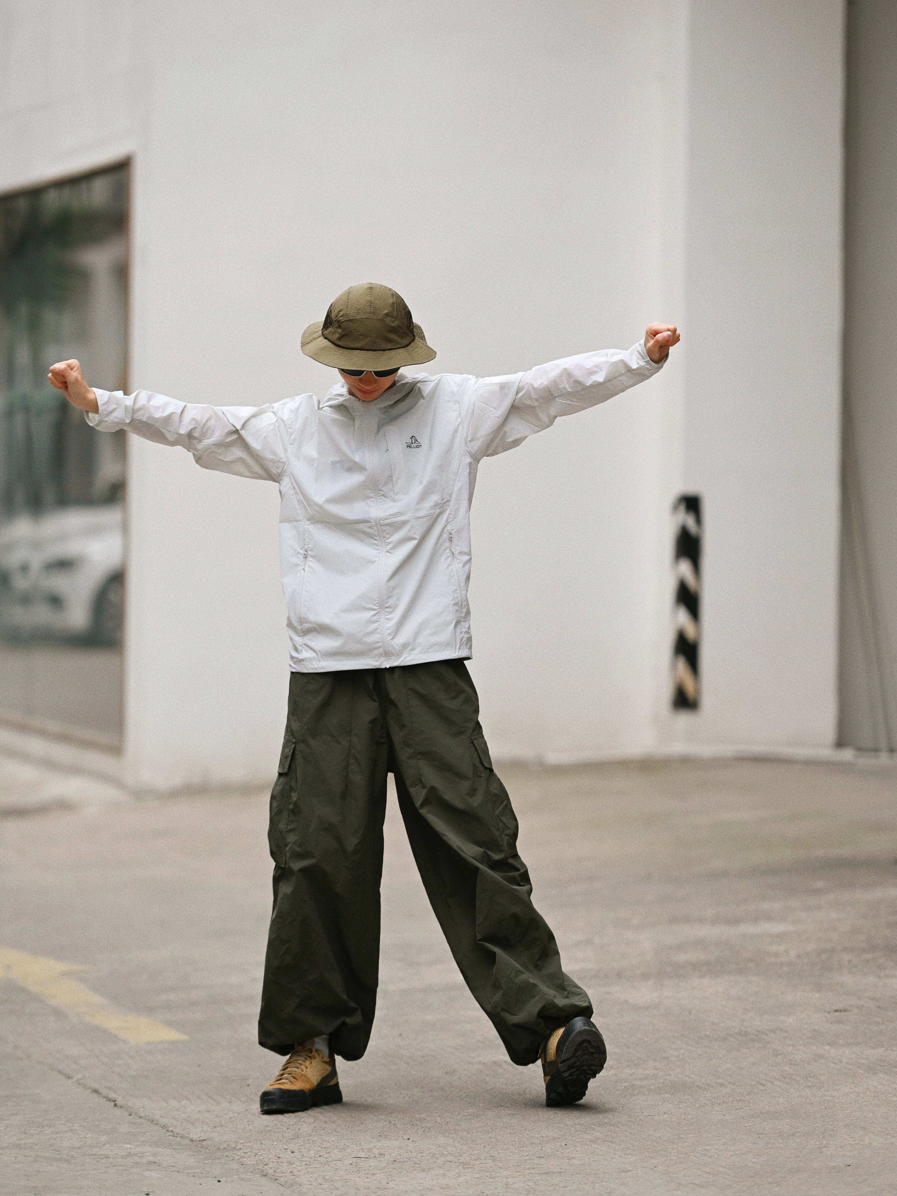 172CM|55KG 👔:m👖:m|👟:39码 春夏街头户外感穿搭来咯~ 上身伯希和防晒服太懂平衡感了! 轻薄透气的面料,防晒和体感自由都拿捏 白色连帽版型干净利落 搭配军绿阔腿工装裤 随性中带着户外机能感 卡其渔夫帽+复古运动鞋 墨镜一戴,街头酷感和户外实用性无缝衔接。